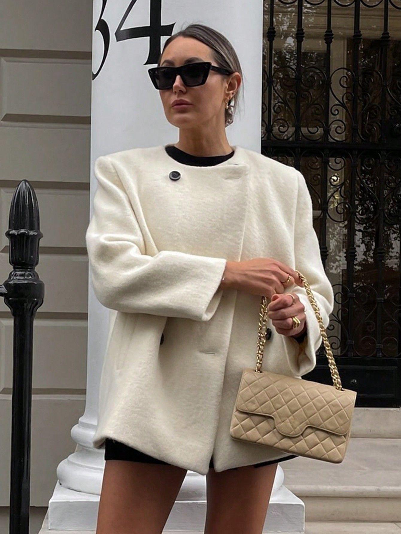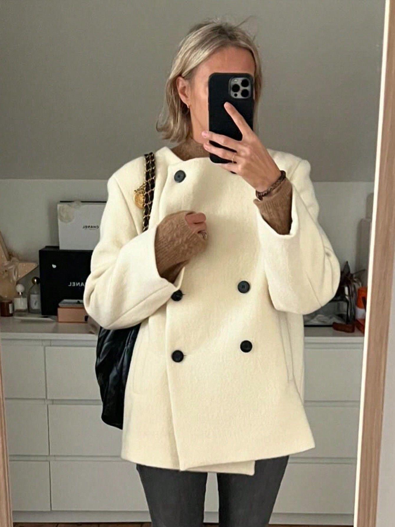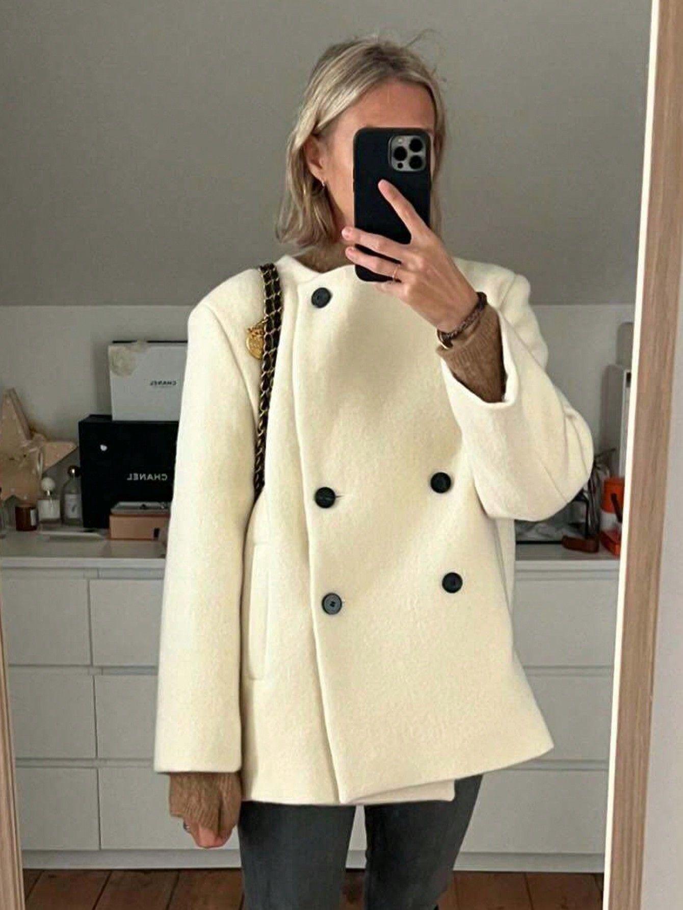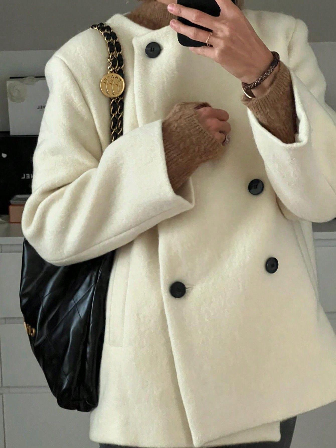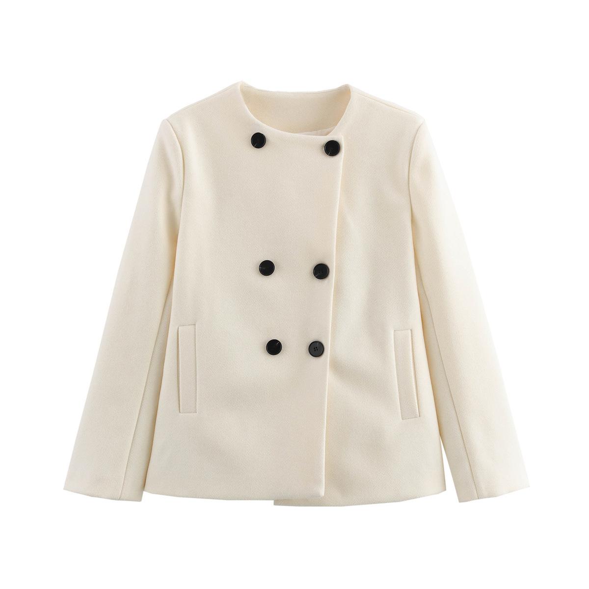 Moda Transfronteriza Europea y Americana Aliexpress Popular Primavera y Otoño Nuevo Estilo Moderno Versátil Abrigo de Lana Cruzado
