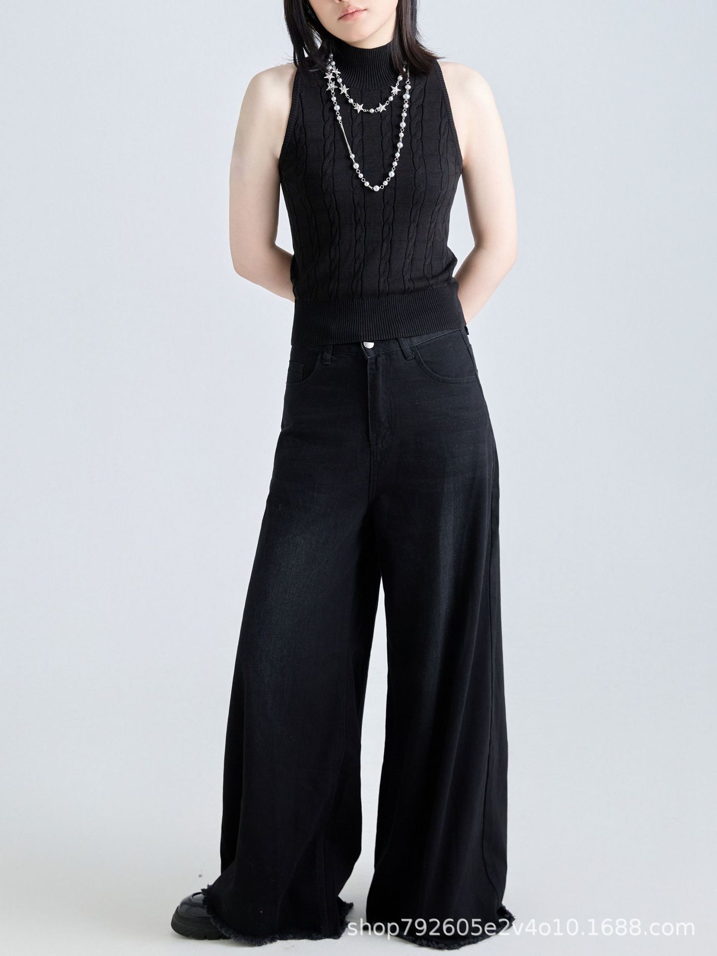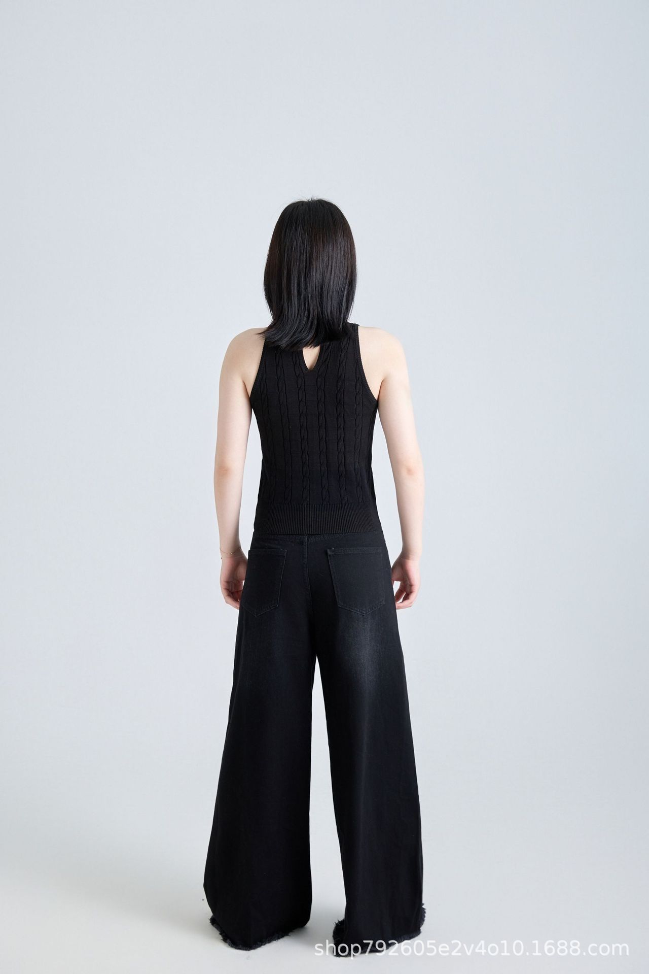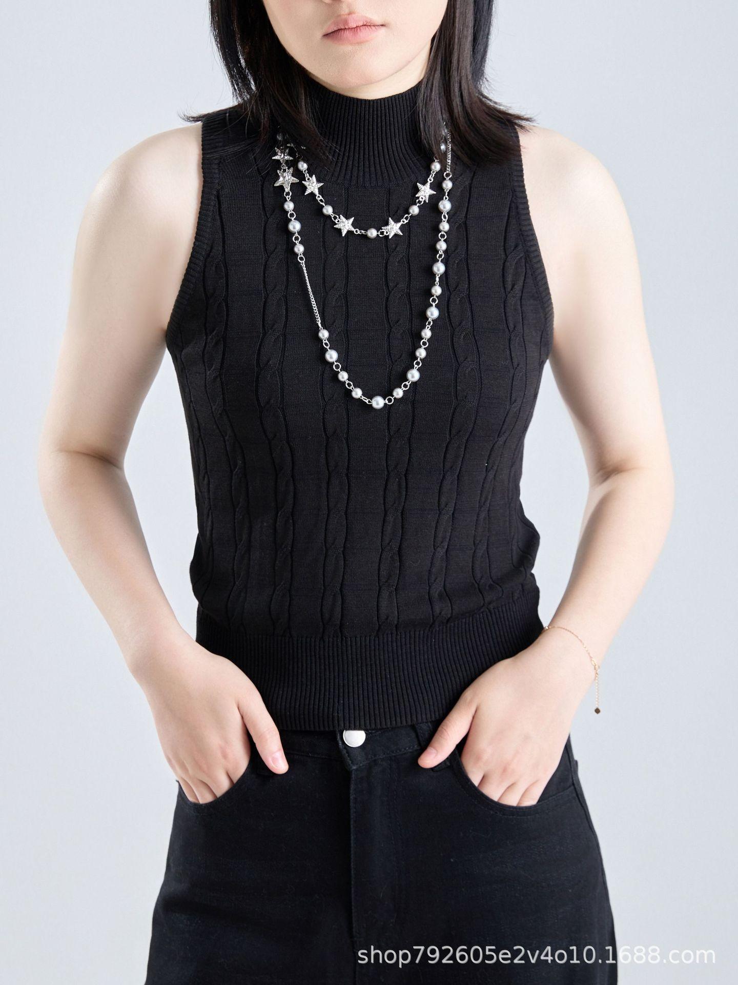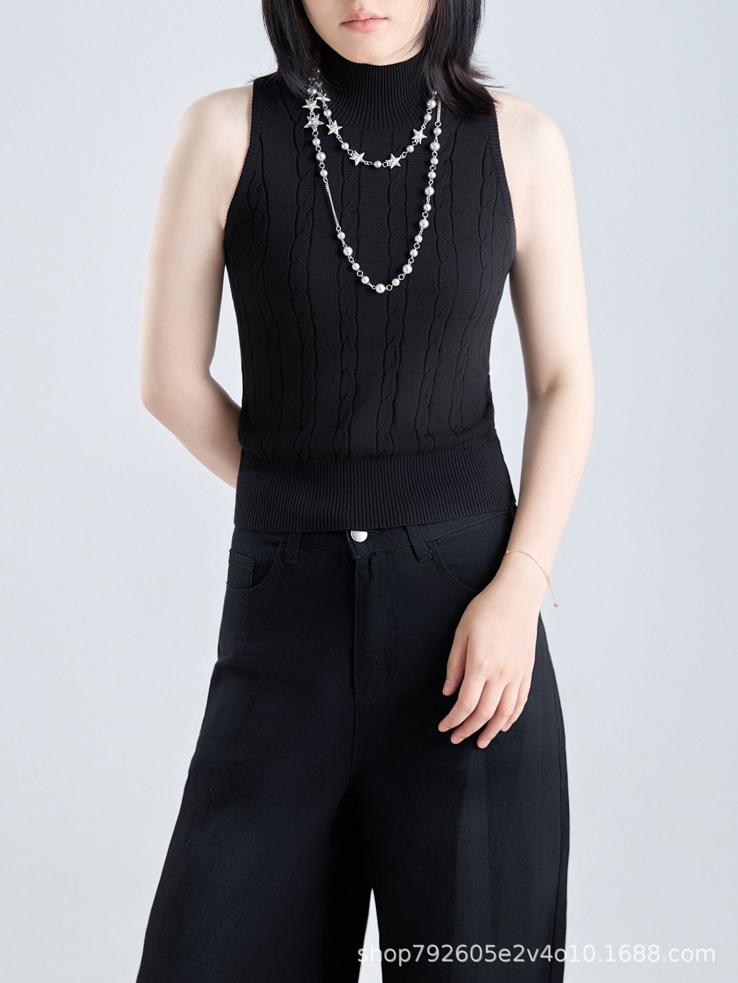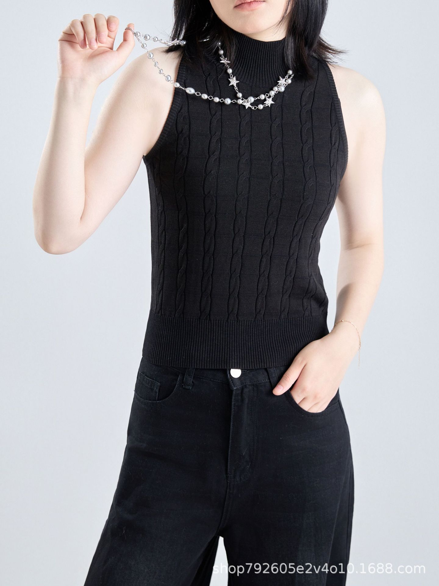 Chaleco Tejido de Punto Trenzado Delgado sin Mangas con Medio Cuello a la Moda Personalizado Mezcla de Lana