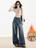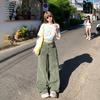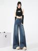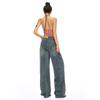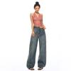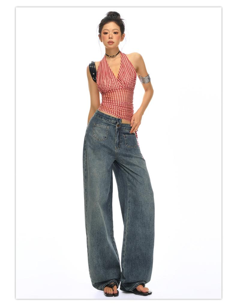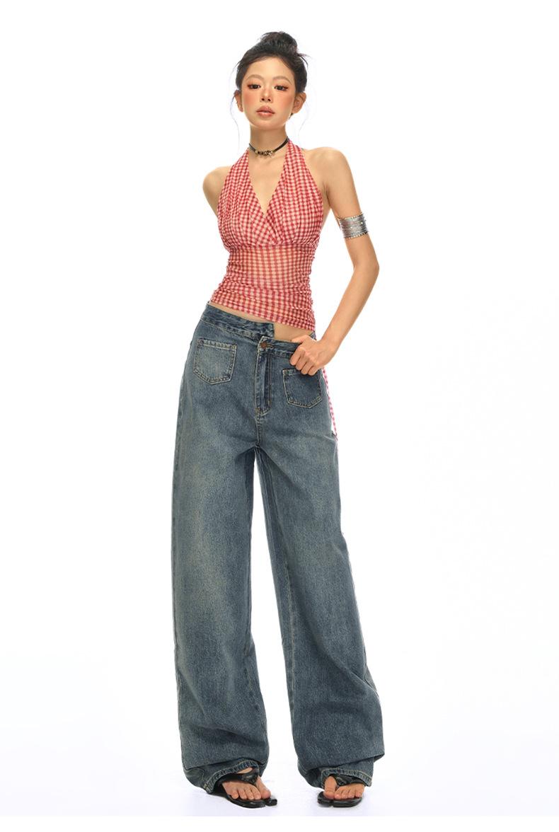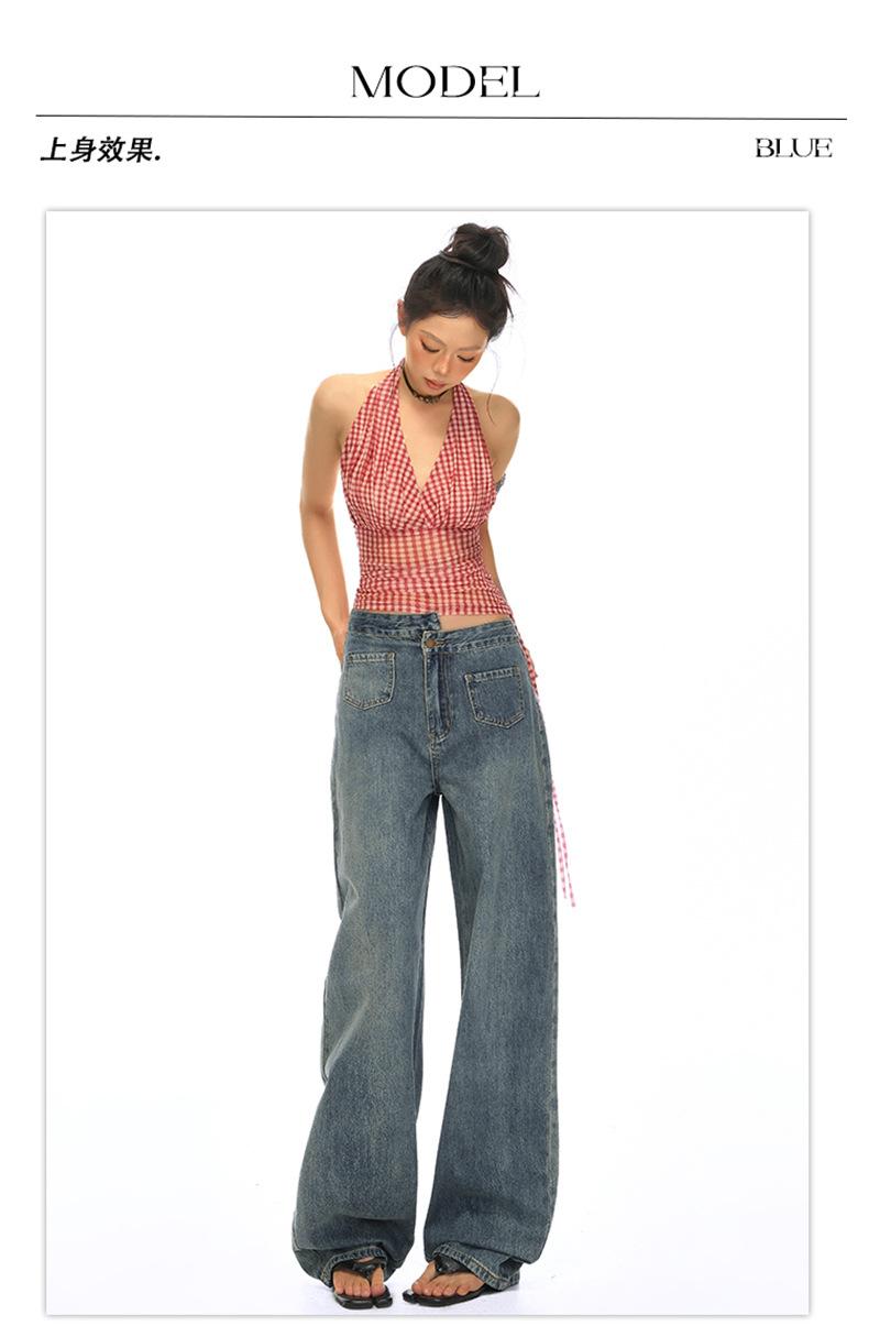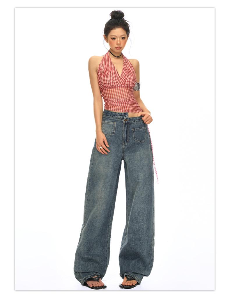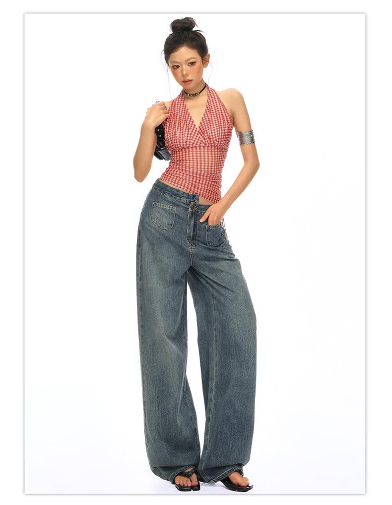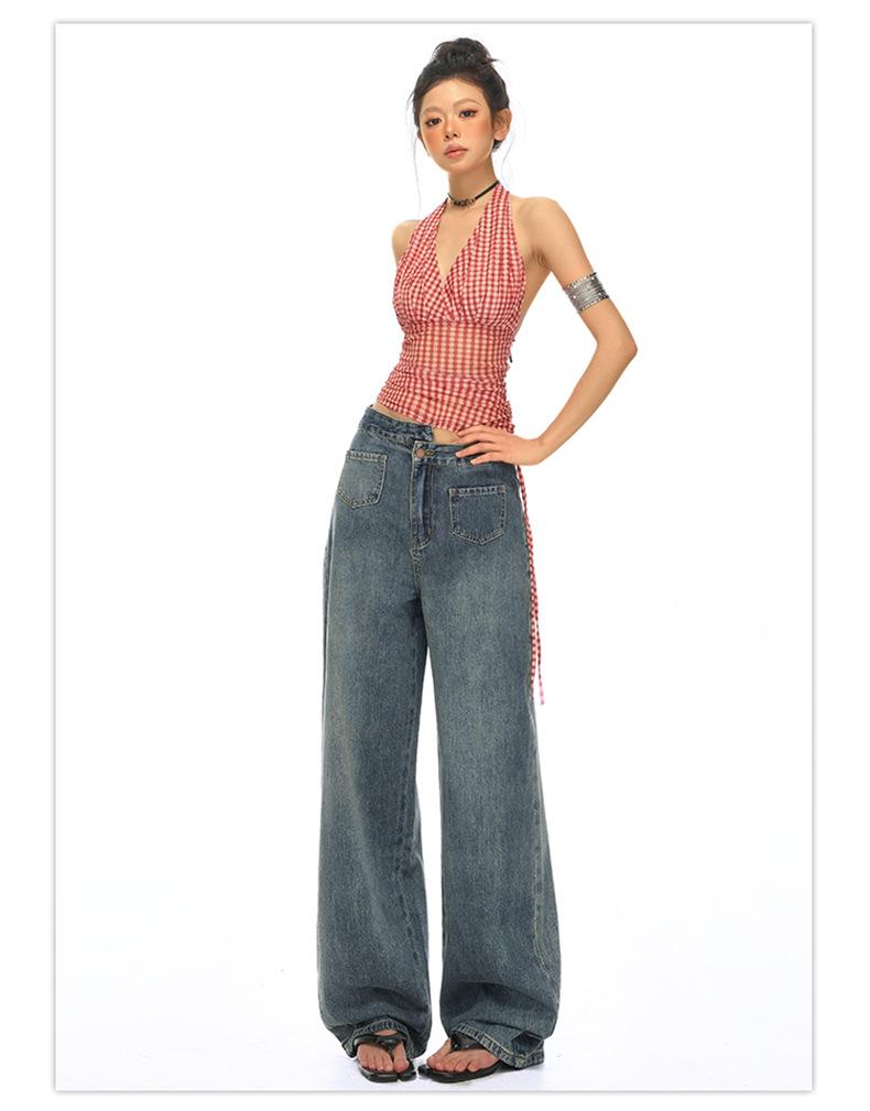 Ropa de Mujer de Seda Naranja # Jeans Vintage Azules de Cintura Alta y Pierna Recta para Mujer Verano Nuevo Diseño Asimétrico Pantalones Anchos de Pierna Suelta