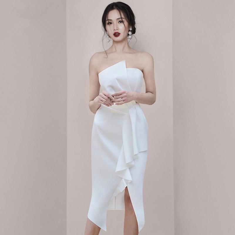 2020 Verano Nuevo Maduro Ligero Elegante Elegante Sexy Sin Tirantes Sin Tirantes Con Volantes Ajustado Adelgazante Vestido de Banquete