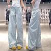 Pantalones Cargo Americanos de Cintura Alta para Mujer Primavera y Verano 2025 Nuevos Sueltos Rectos Casual de Secado Rápido Petite Pierna Ancha