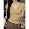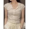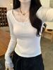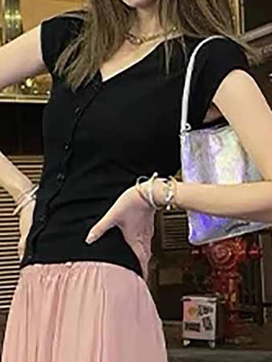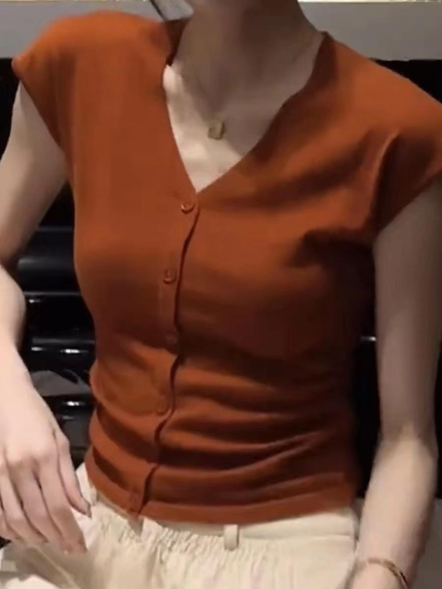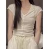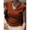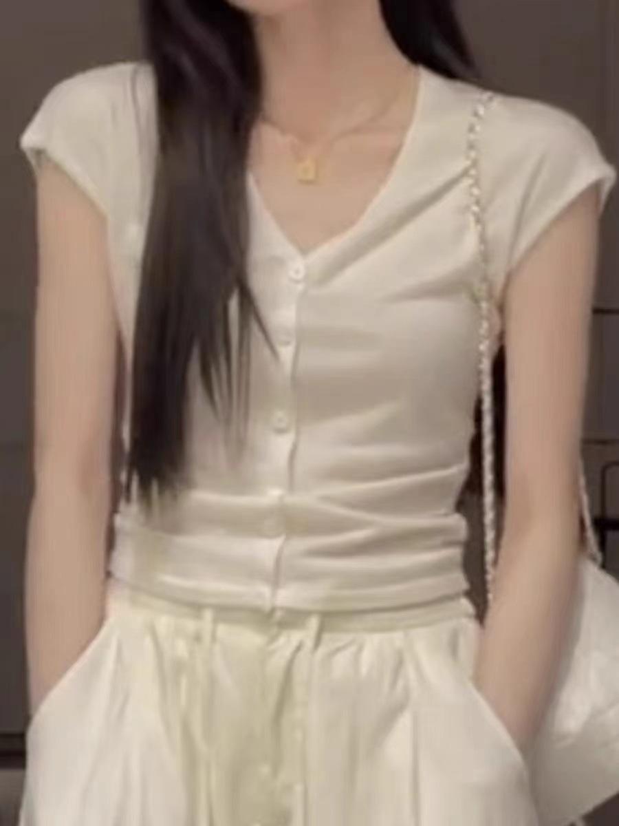 2024 Verano Nuevo Maduro Ligero Casual Clavícula Tejido Camiseta de Manga Corta Verano Nuevo Ajustado Adelgazante