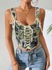 Nuevo Corsé de Tirantes Estampados Retro Francés Transfronterizo Sexy Top Chaleco Camisola Europea y Americana Floral de Hombro Ancho