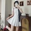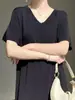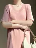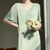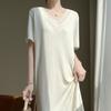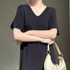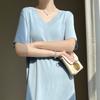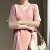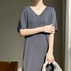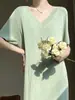 Vestido de manga corta elegante versátil estilo japonés-coreano fresco y dulce primavera/verano vestido sencillo de largo medio con cuello en V