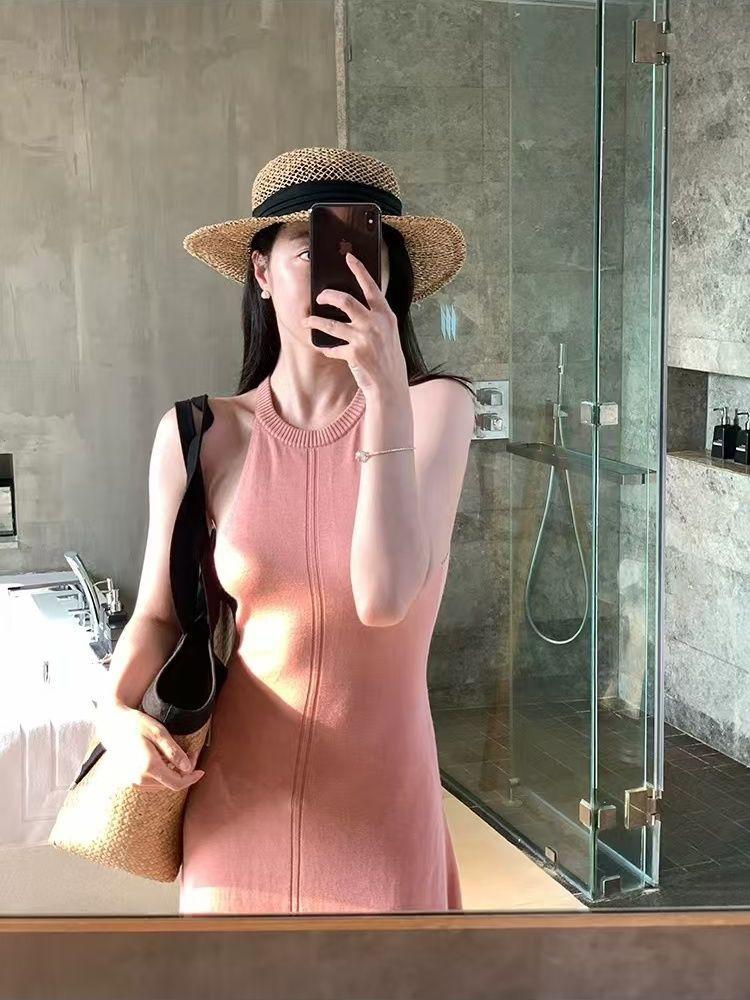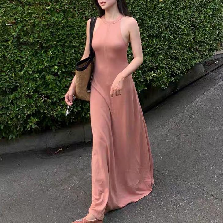 Vestido Elegante de Verano con Tirantes 2025 Nuevo Vacaciones Cintura Falda Larga Ajustada Falda Chaleco Ajustada