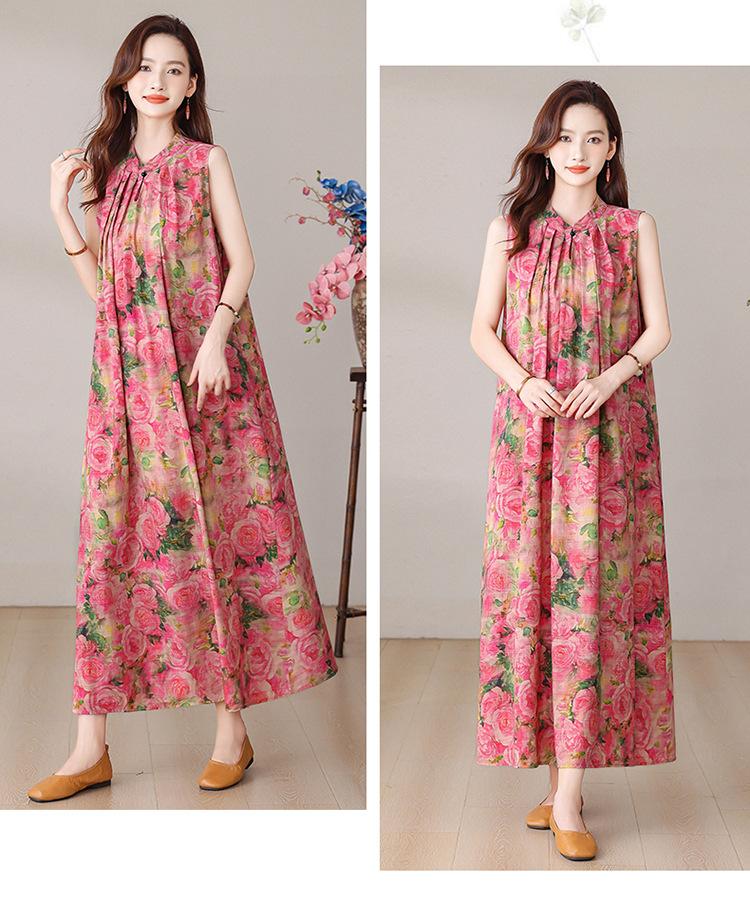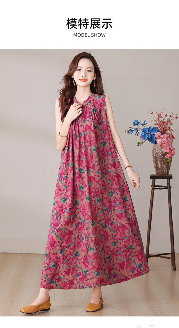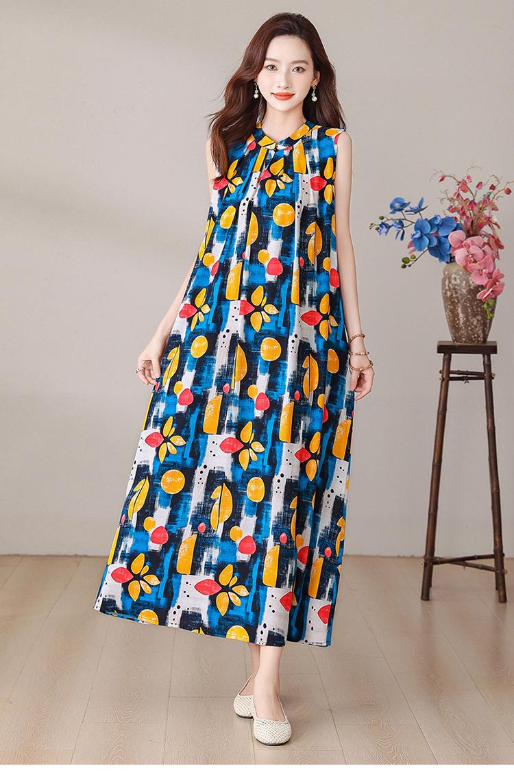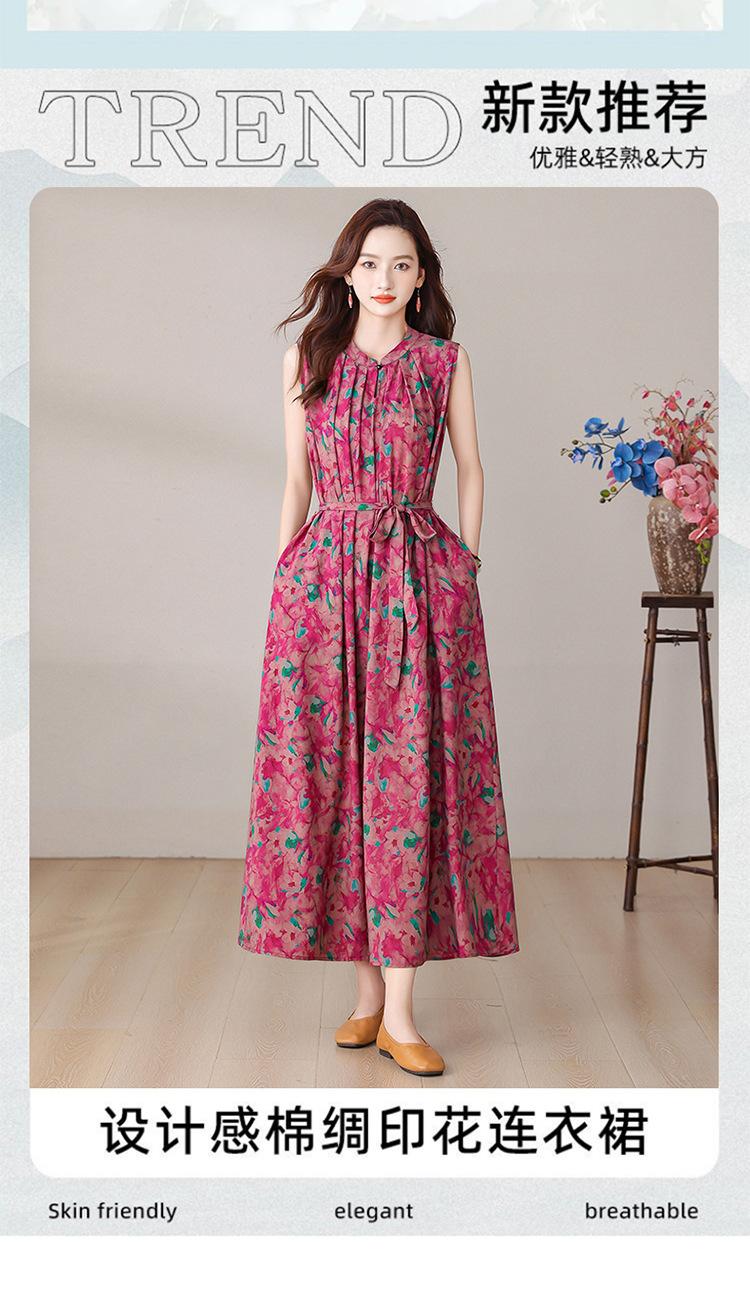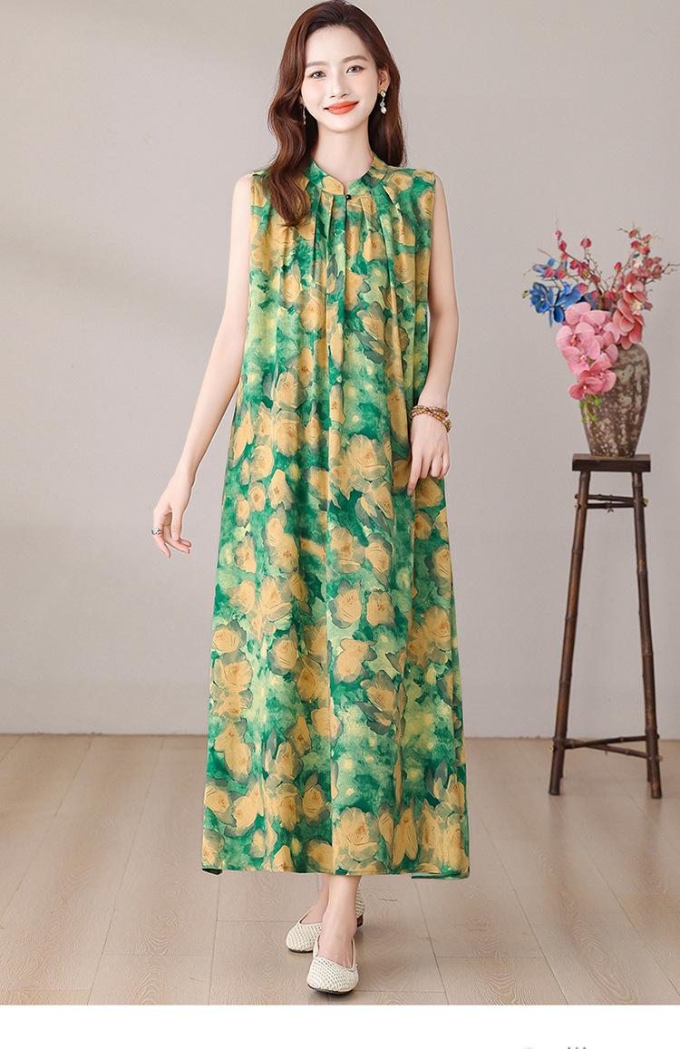 Vestido de Verano para Madre de Mediana Edad 2025 Nuevo Floral de Mediana Edad y Anciana Algodón Seda Falda Larga Dignificado y Elegante Ropa Exterior