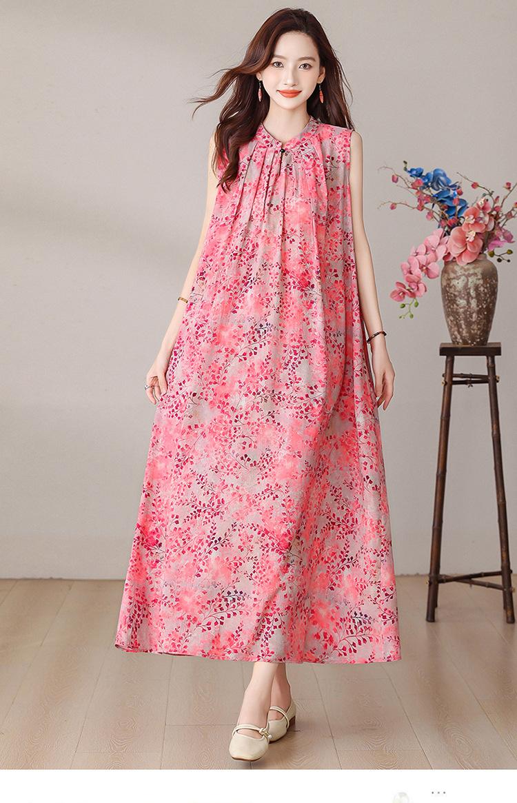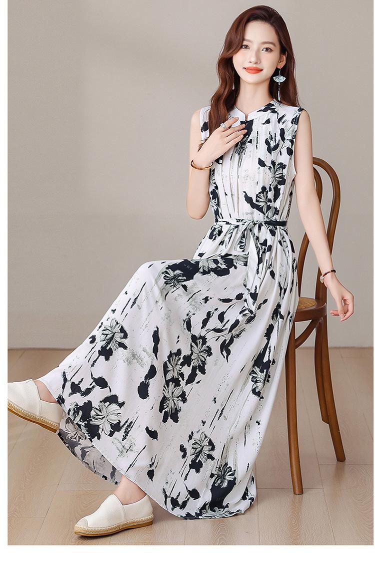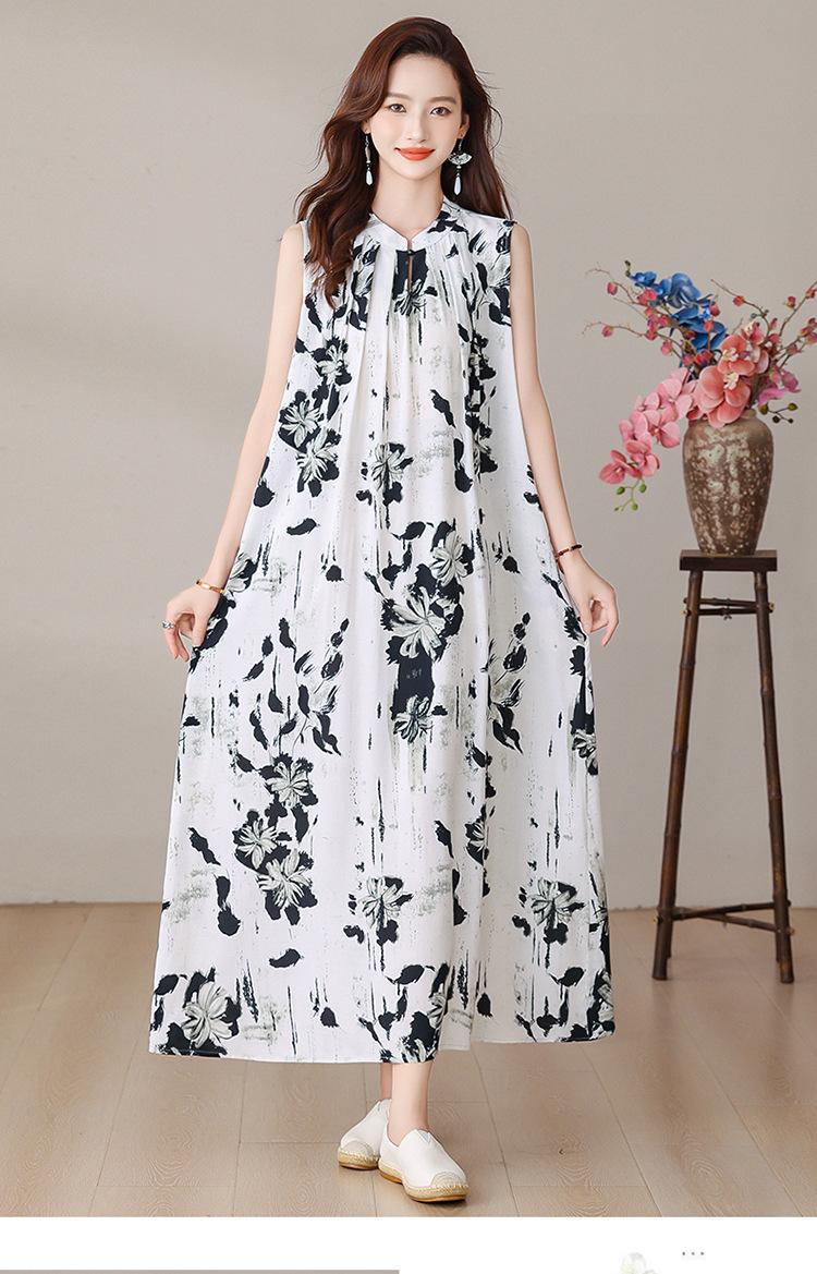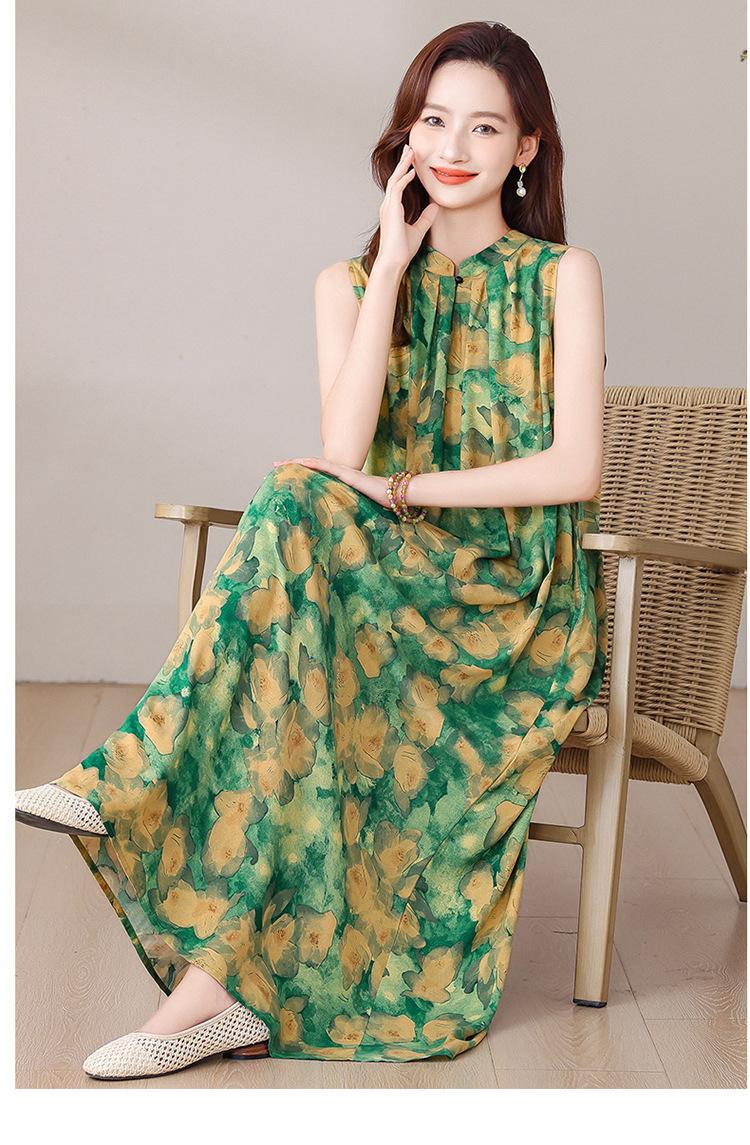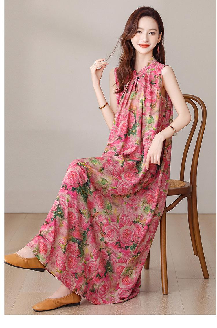 Vestido de Verano para Madre de Mediana Edad 2025 Nuevo Floral de Mediana Edad y Anciana Algodón Seda Falda Larga Dignificado y Elegante Ropa Exterior