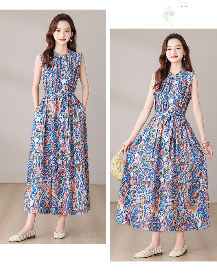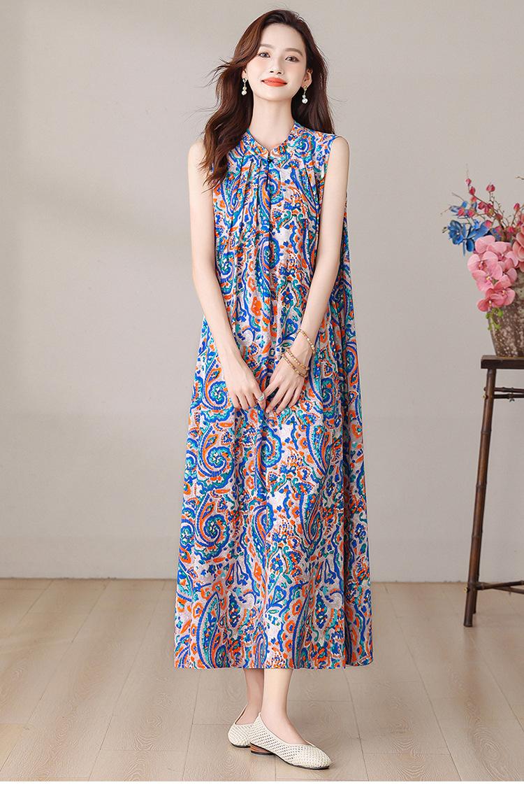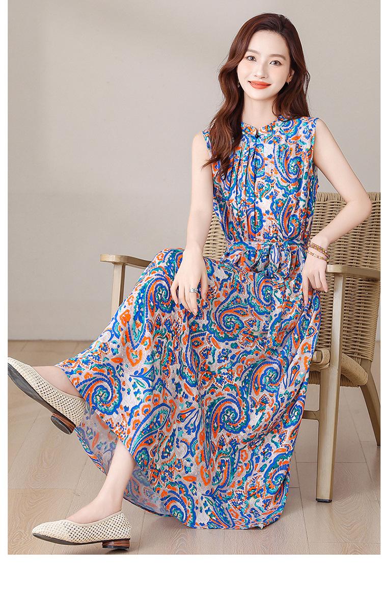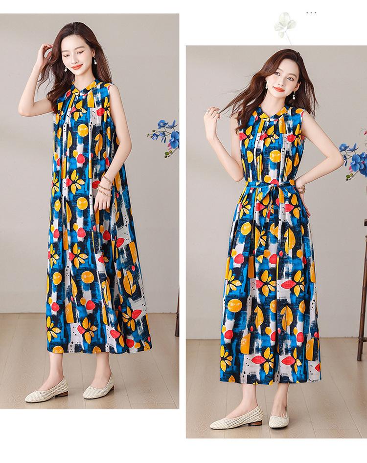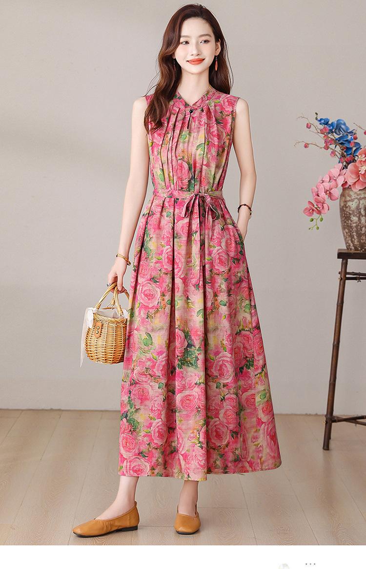 Vestido de Verano para Madre de Mediana Edad 2025 Nuevo Floral de Mediana Edad y Anciana Algodón Seda Falda Larga Dignificado y Elegante Ropa Exterior