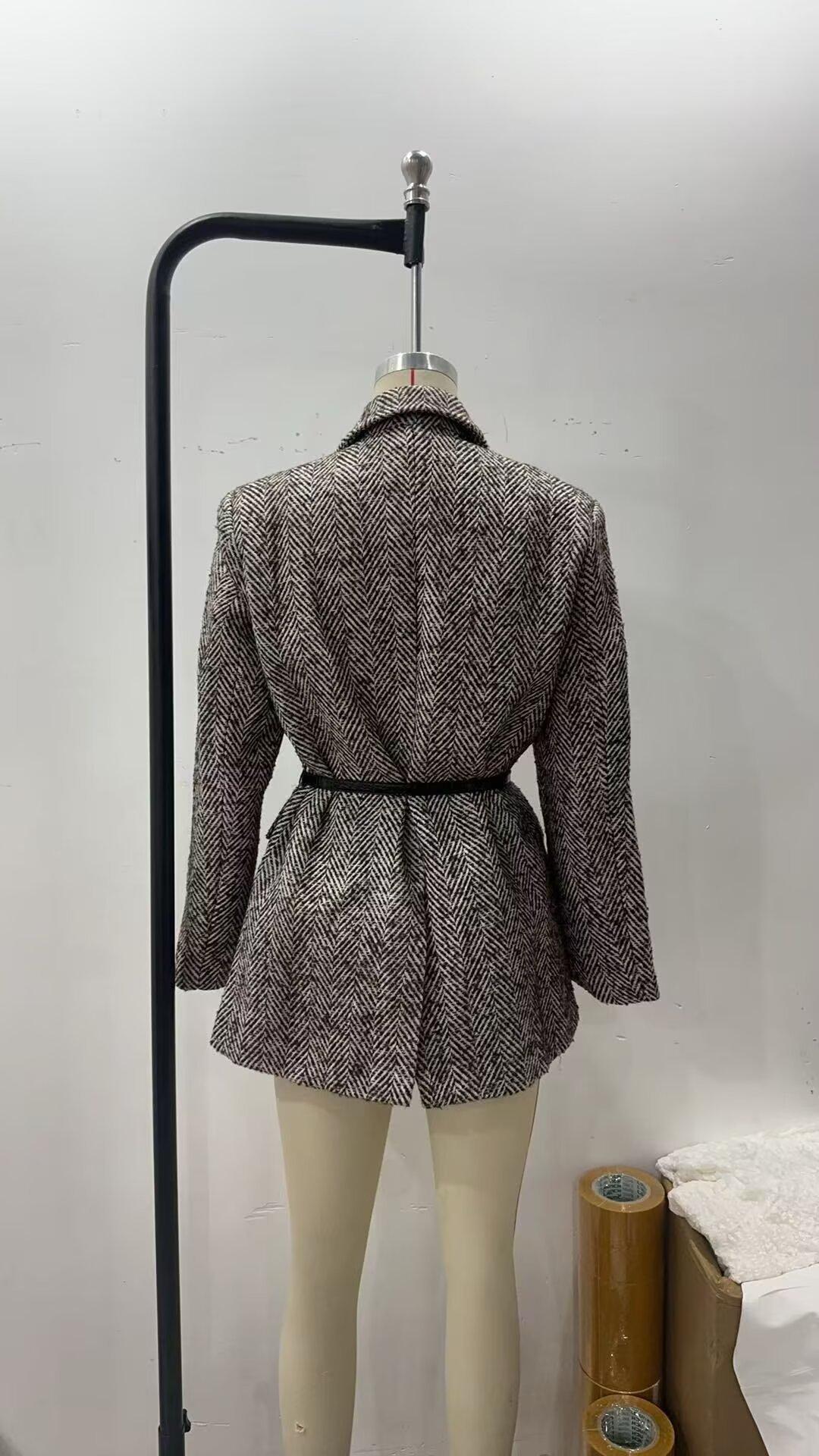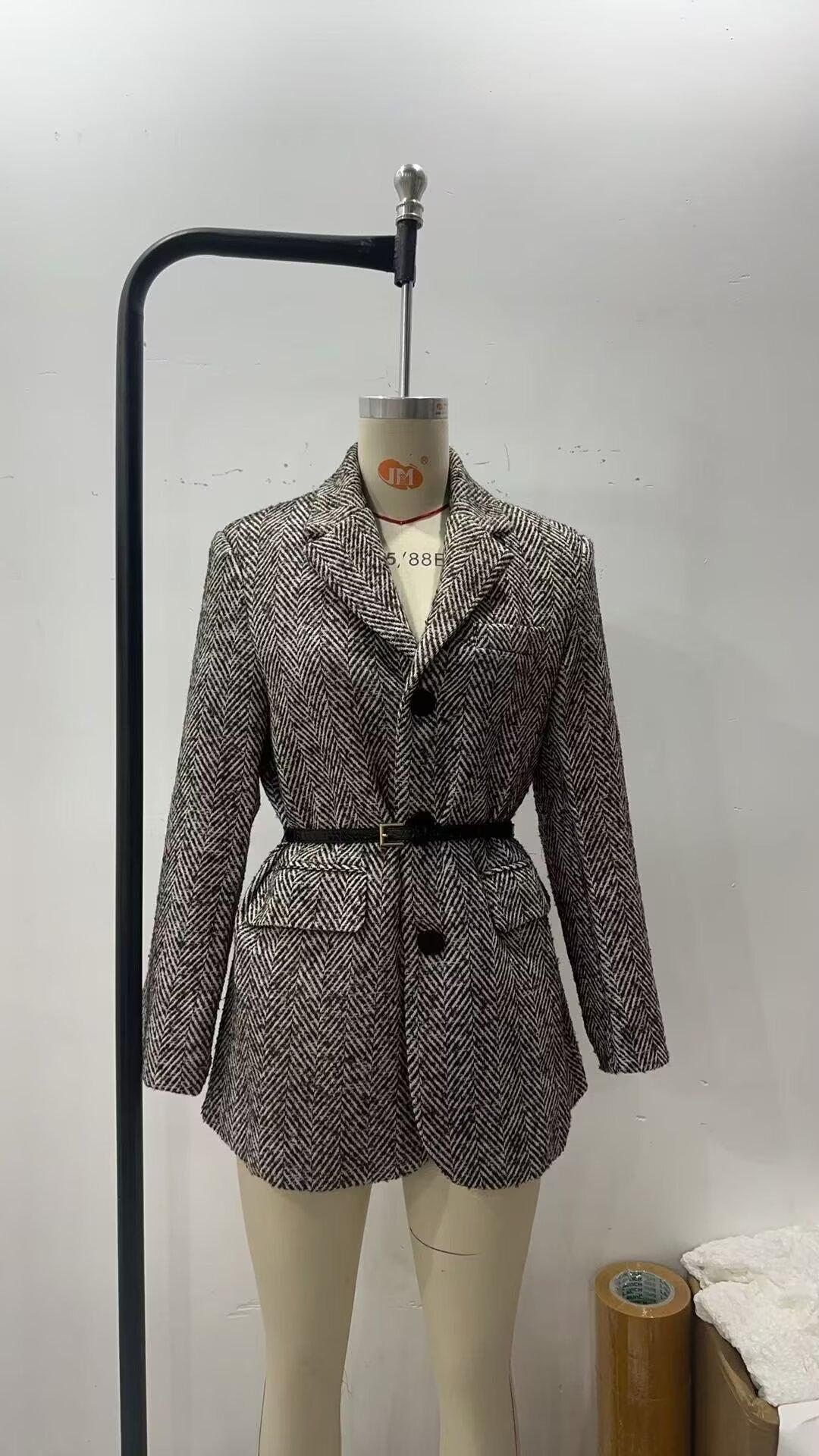 Aliexpress Ropa Transfronteriza Europea y Americana al por Mayor 2025 Nuevo Versátil Look Adelgazante Cintura con Cordones Chaqueta de Traje Gris