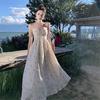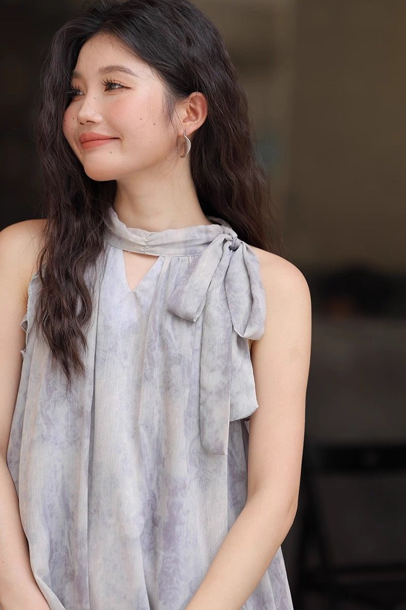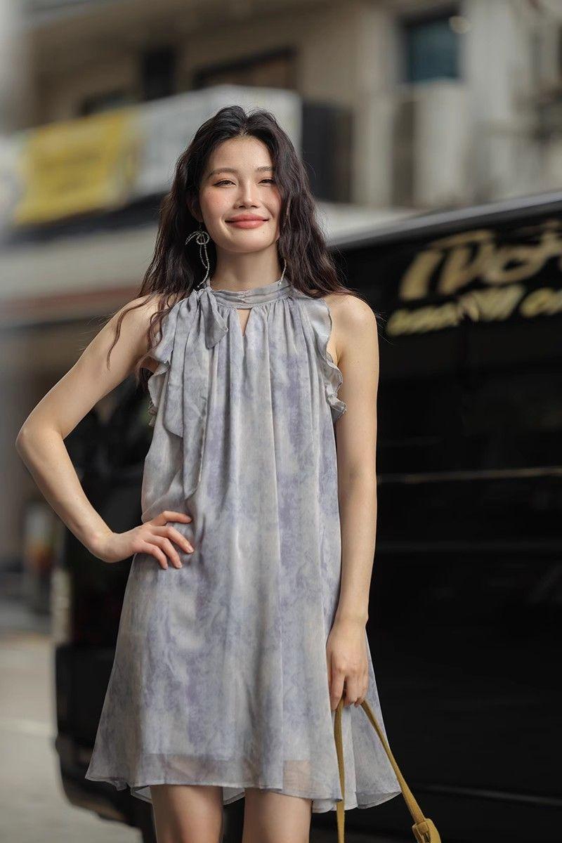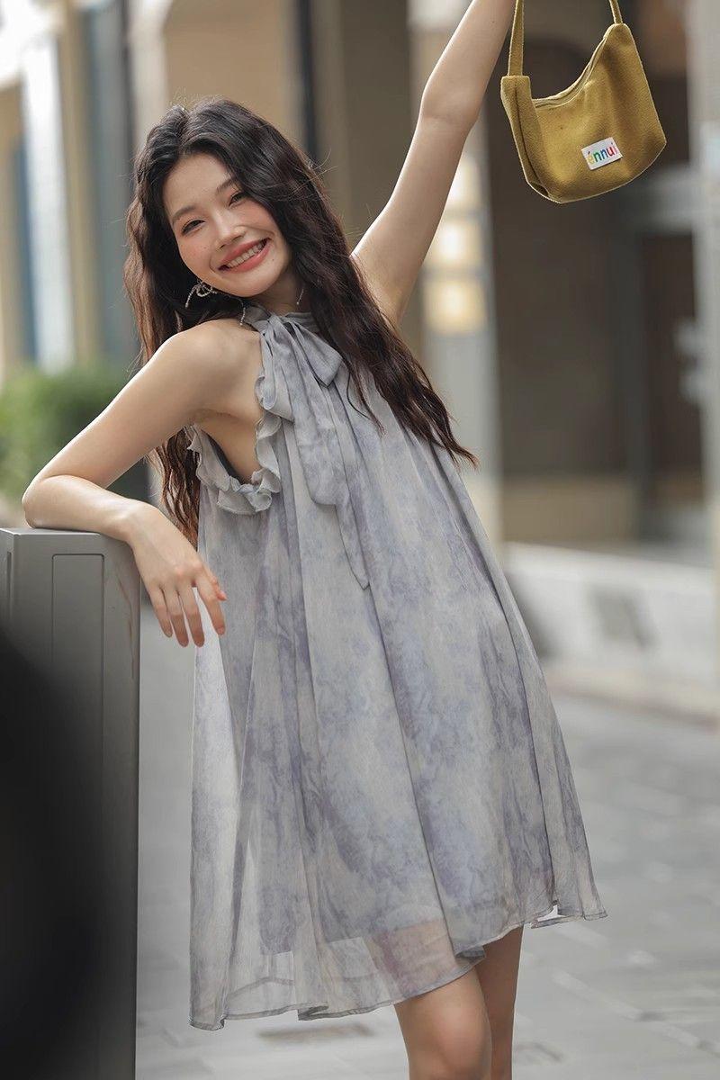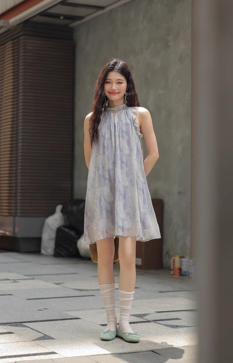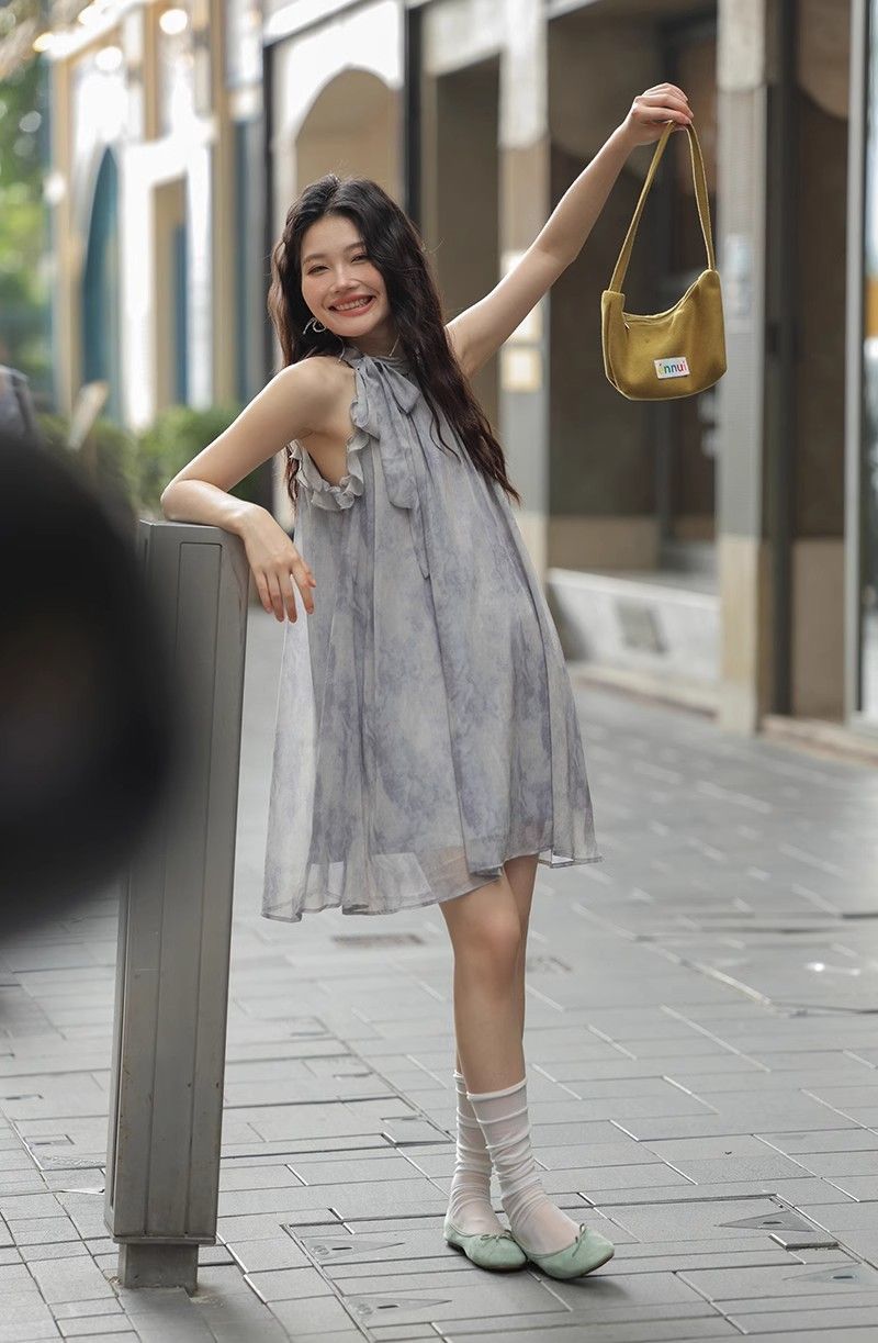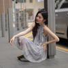 Nuevo Vestido Chino Estilo Halter con Tirantes 2025 Versión Coreana Nuevo Diseño Petite Tie-Dye Elegante Vestido Corto