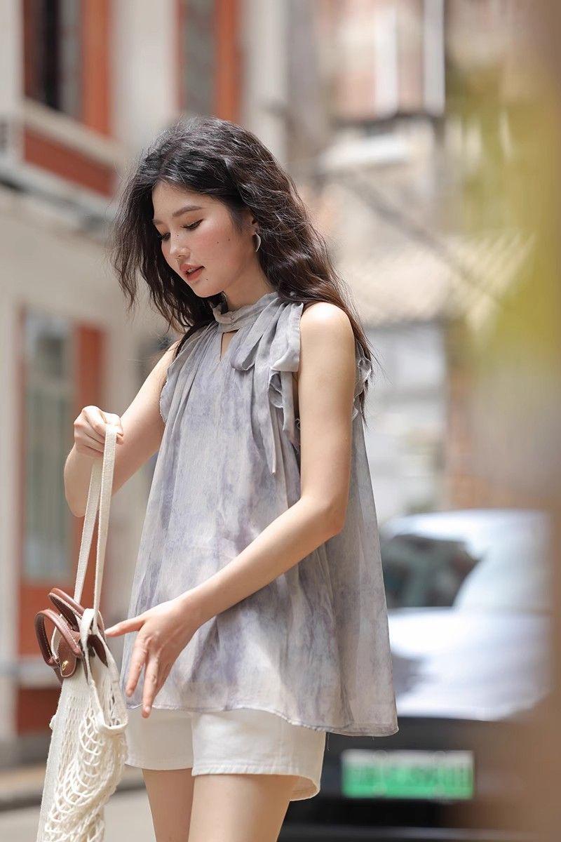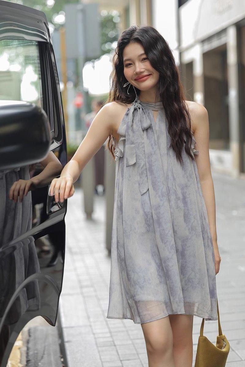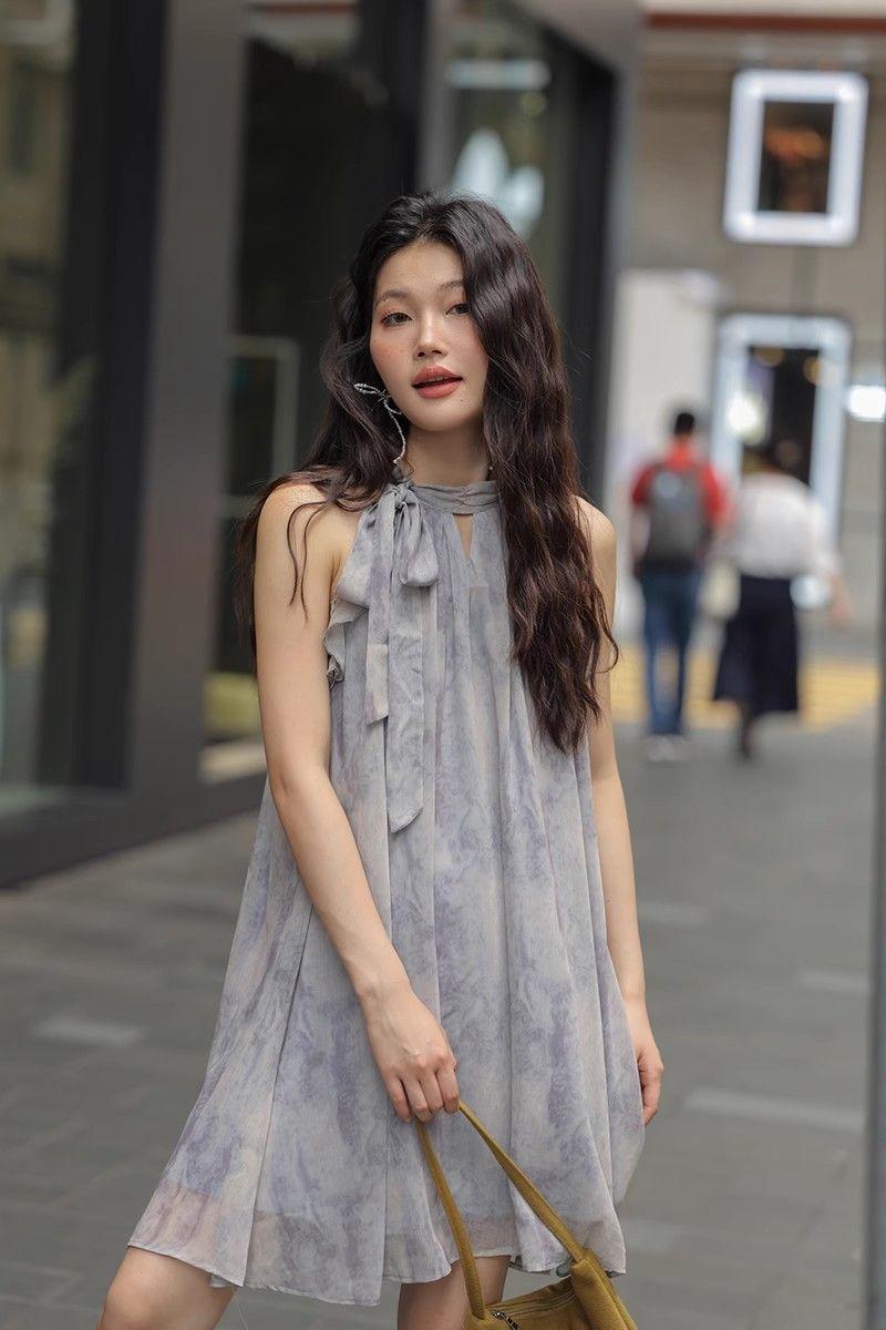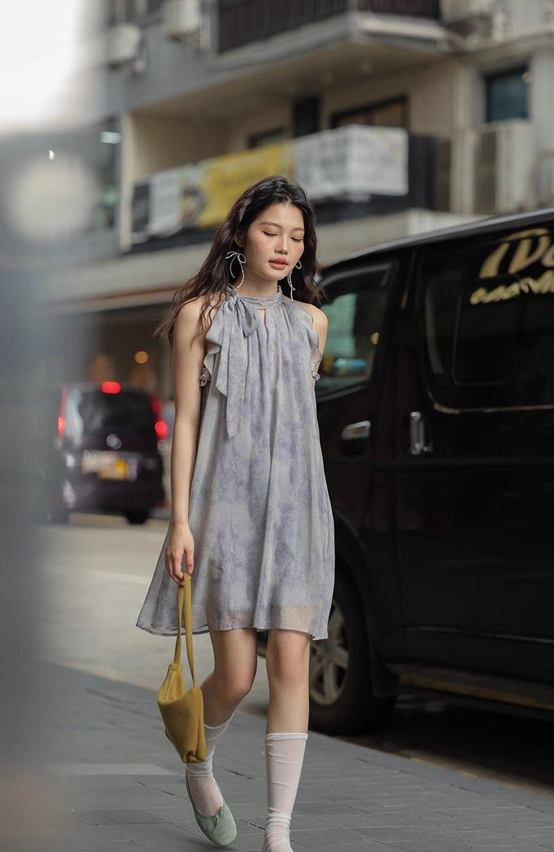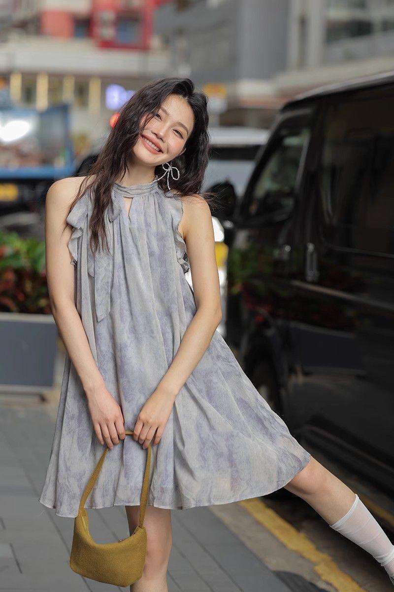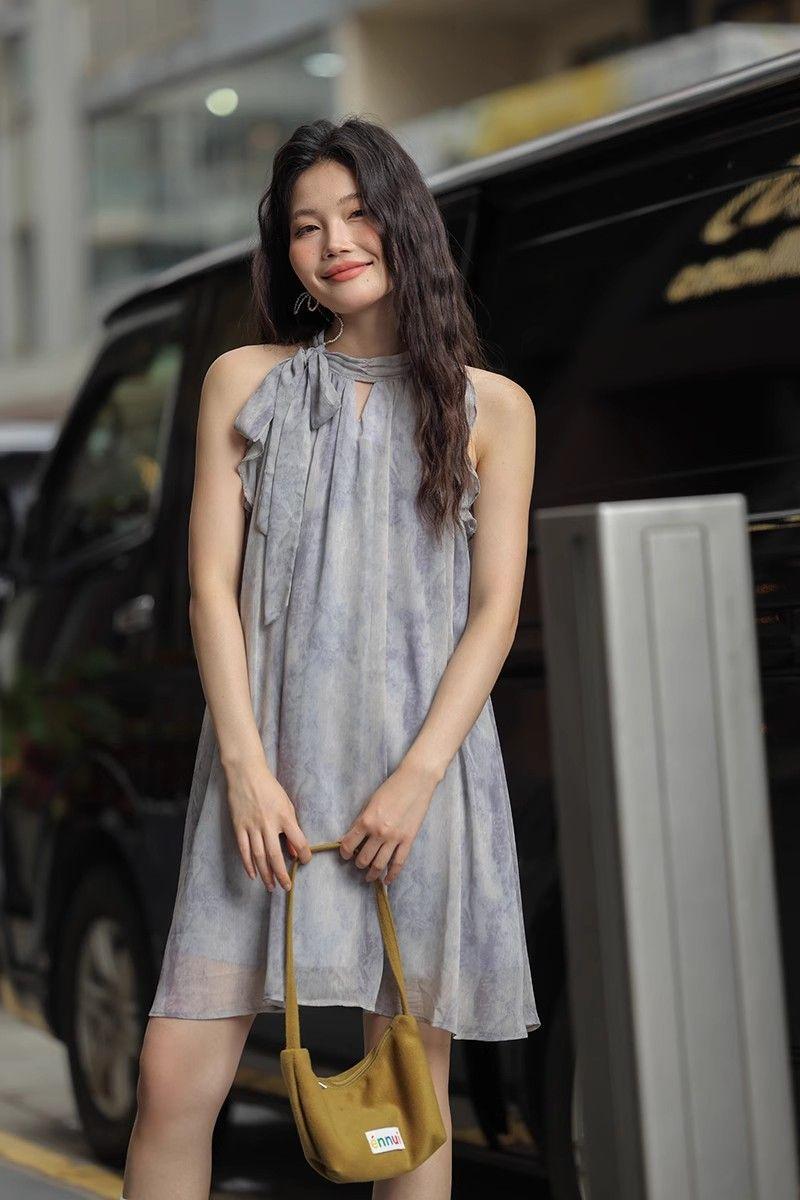 Nuevo Vestido Chino Estilo Halter con Tirantes 2025 Versión Coreana Nuevo Diseño Petite Tie-Dye Elegante Vestido Corto