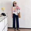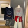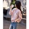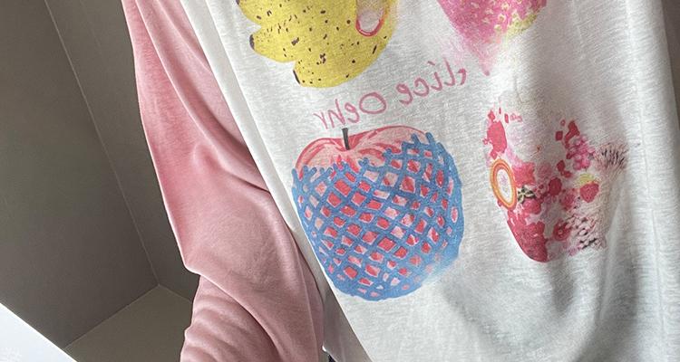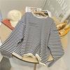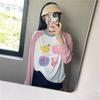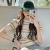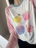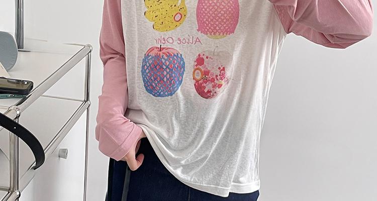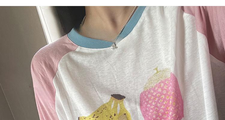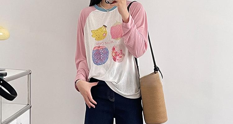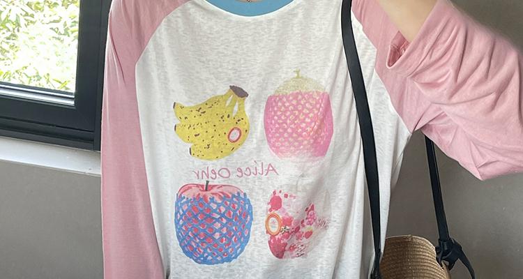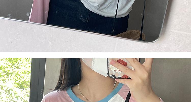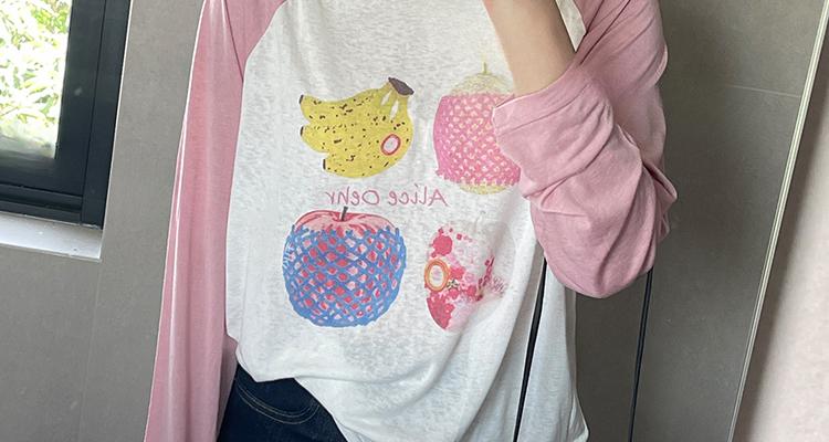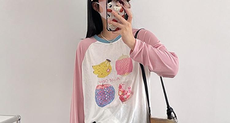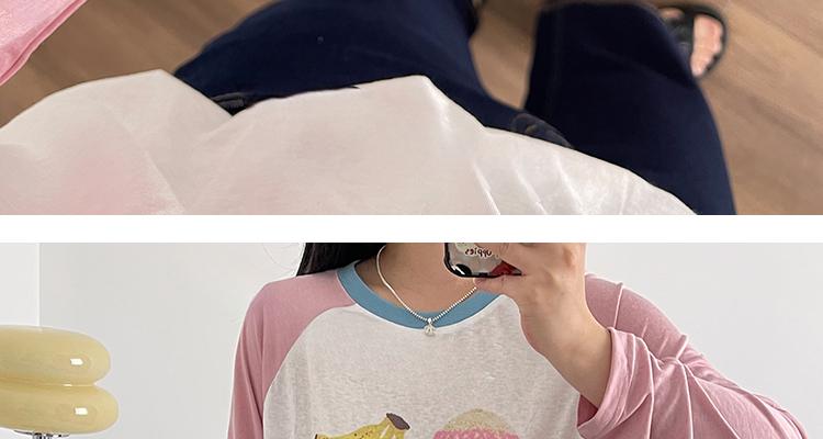 Blusa Coreana Dopamina con Protección Solar para Mujer 2025 Verano Nueva Color Contrastante Raglán Reductora de Edad Estampada Delgada Camiseta de Manga Larga