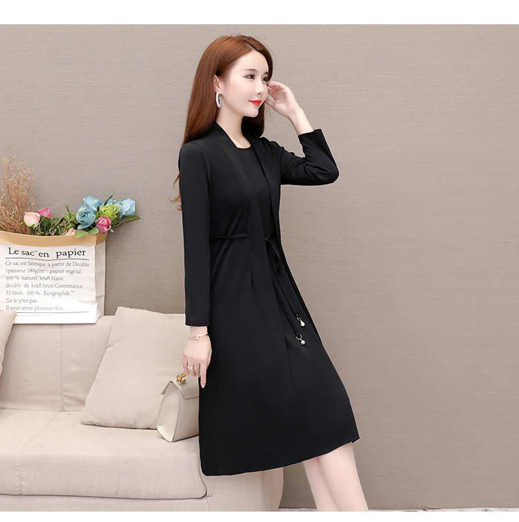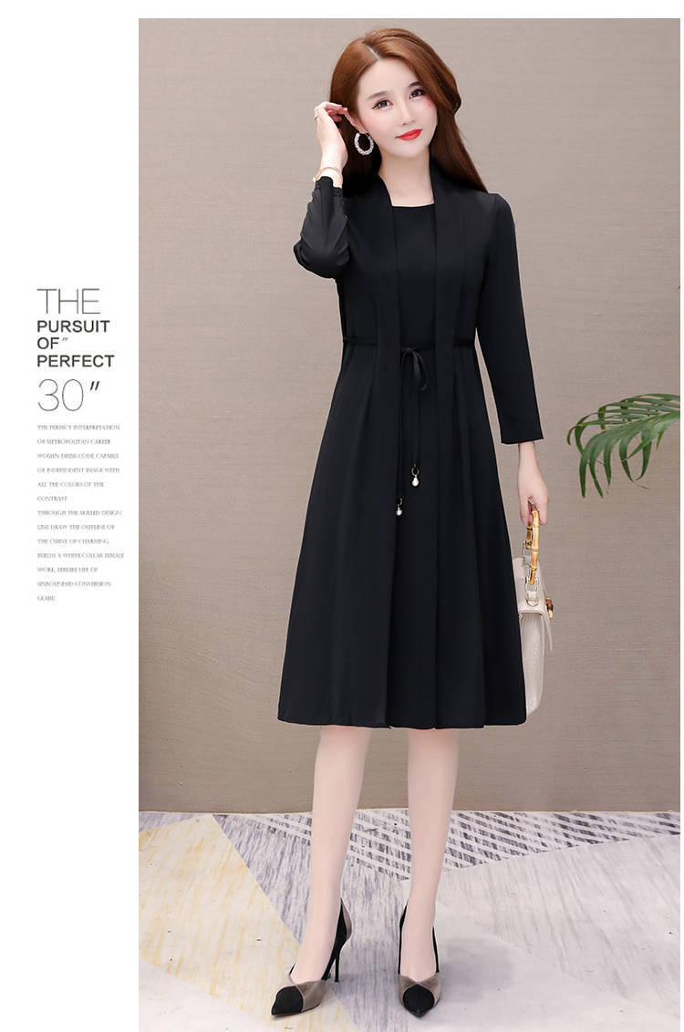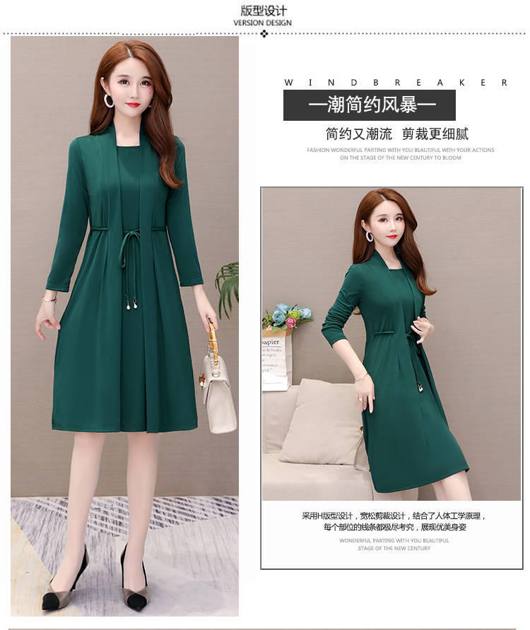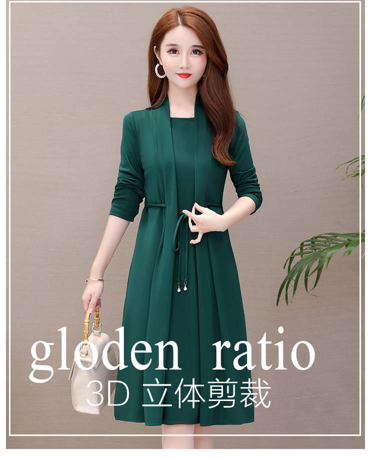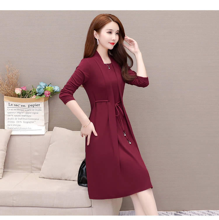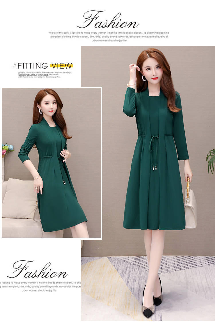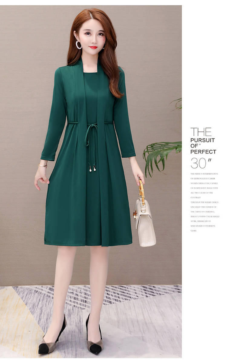 Vestido de Dos Piezas de Vacaciones de Primavera y Otoño 2025 para Mujer Adelgazante Manga Larga Señora Señora Moda Temperamento Edad Media Mamá