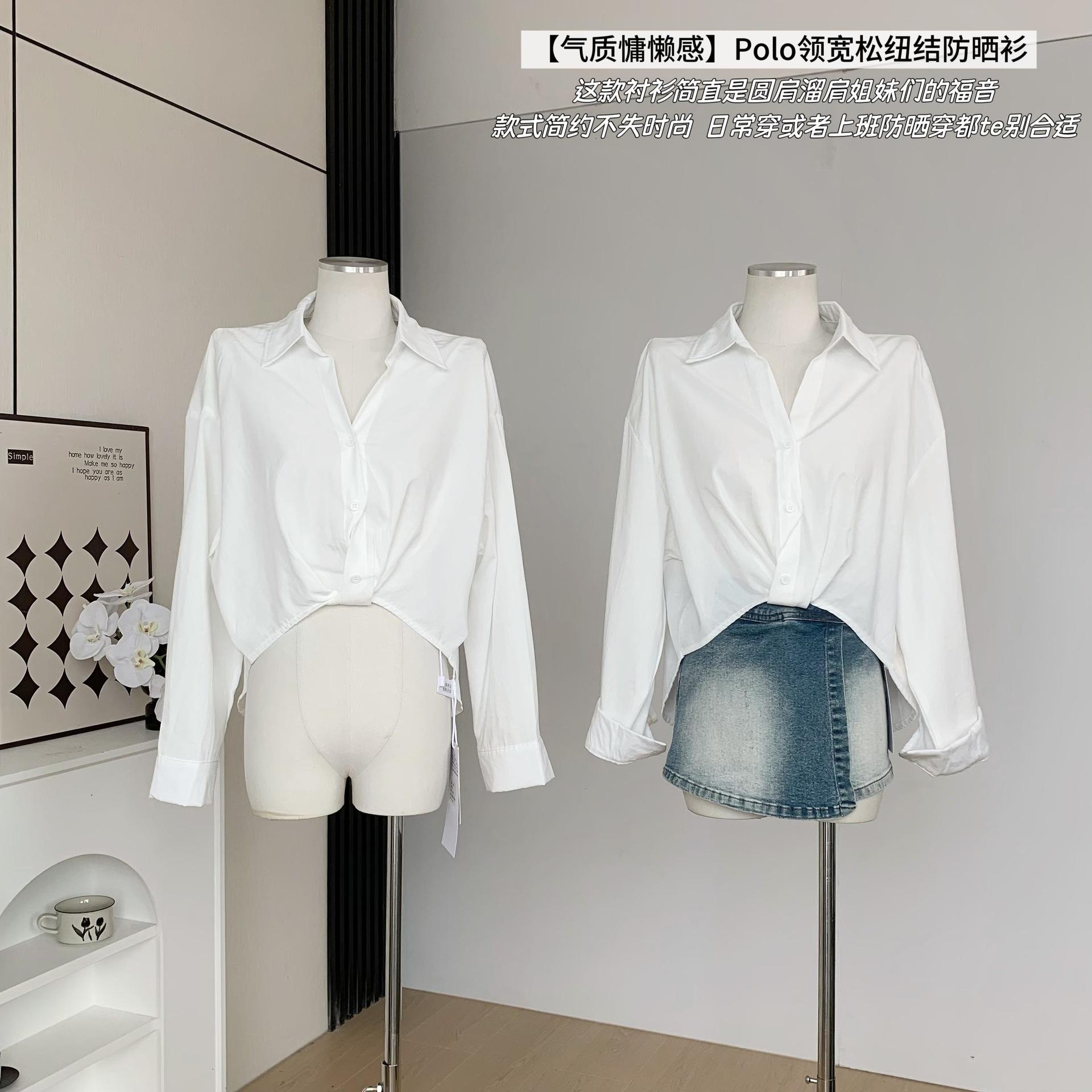 Camisa Tencel Twist con Protección Solar para Mujer Verano Polo Diseño Holgado Manga Larga Top Perezoso