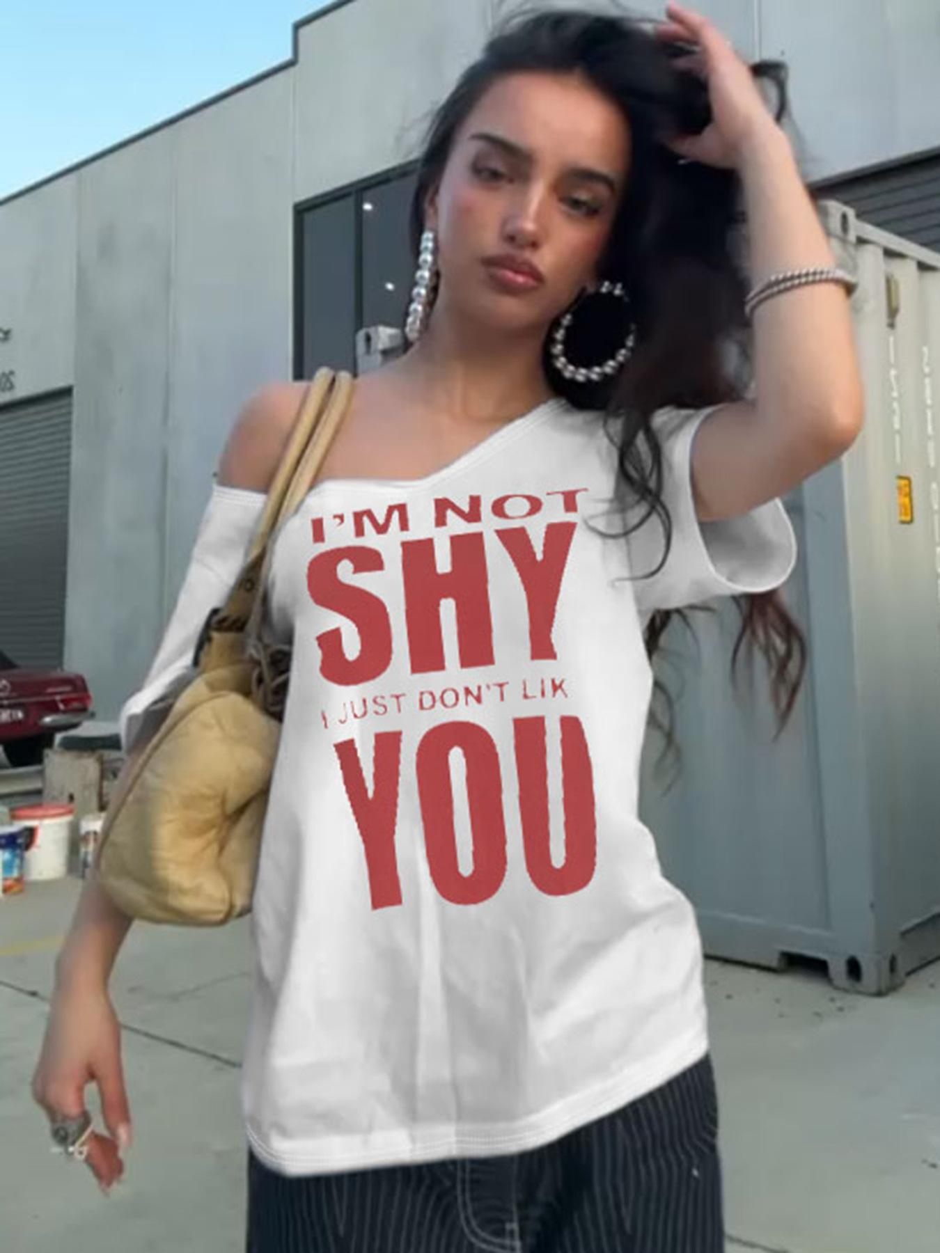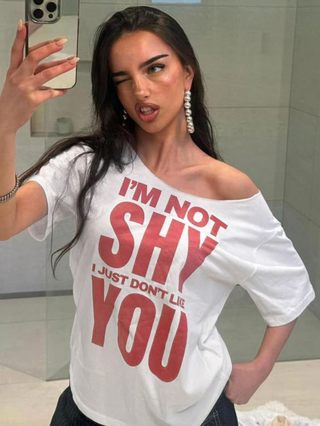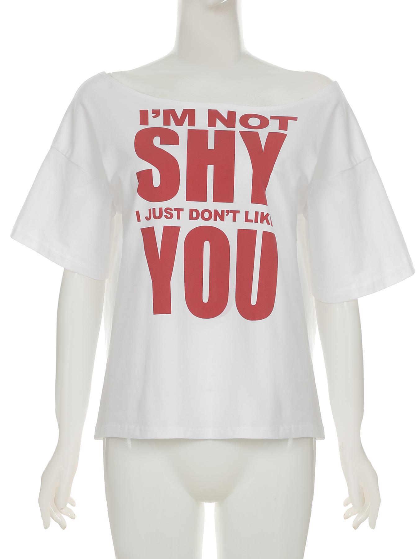 Estilo Americano Estilo Chica Caliente Holgada Cuello Redondo Grande Manga Corta Camiseta Diseño Estampado de Letras Moda Casual Verano para Mujer Nuevo
