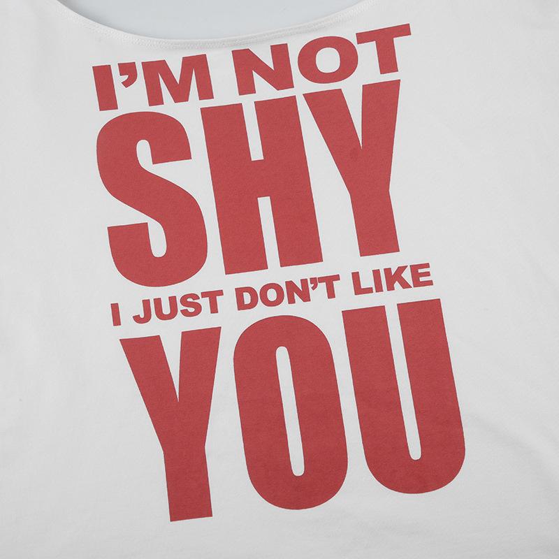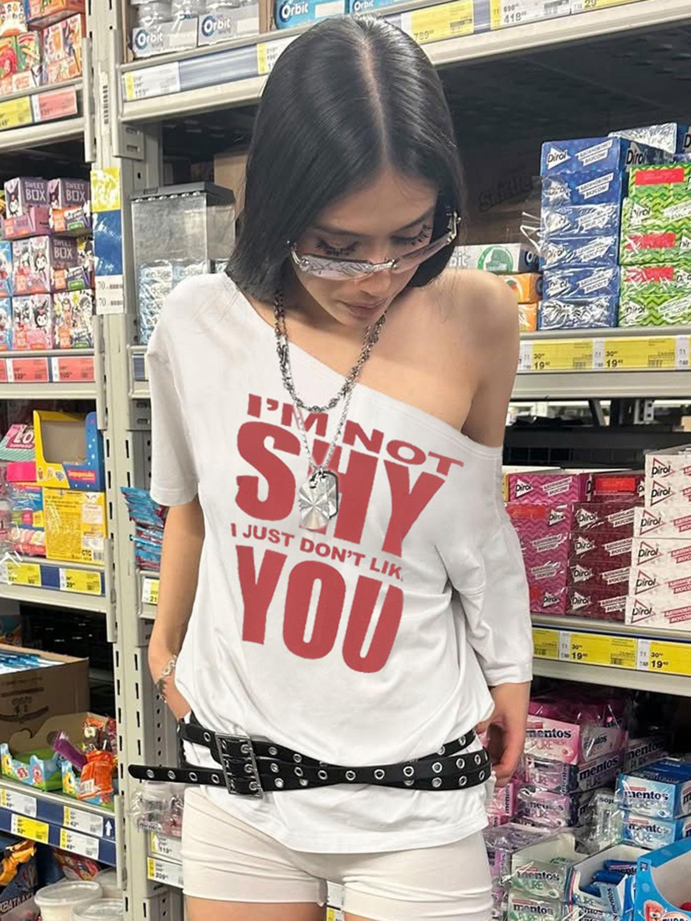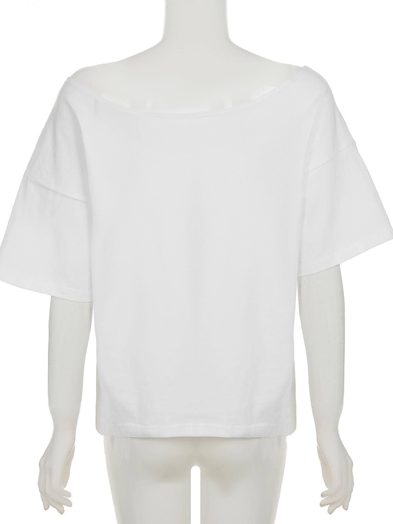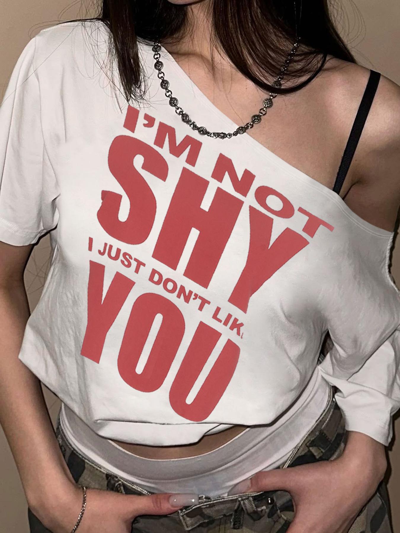 Estilo Americano Estilo Chica Caliente Holgada Cuello Redondo Grande Manga Corta Camiseta Diseño Estampado de Letras Moda Casual Verano para Mujer Nuevo