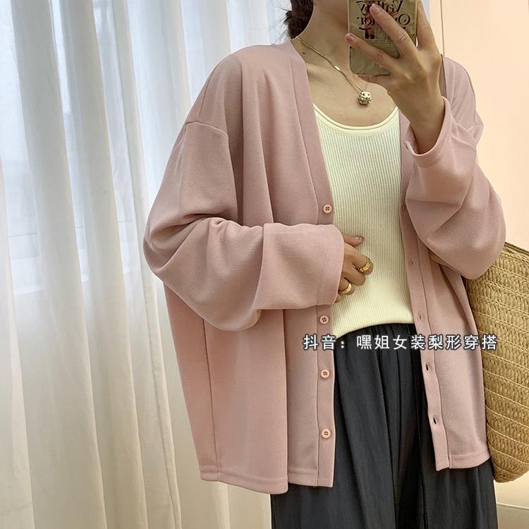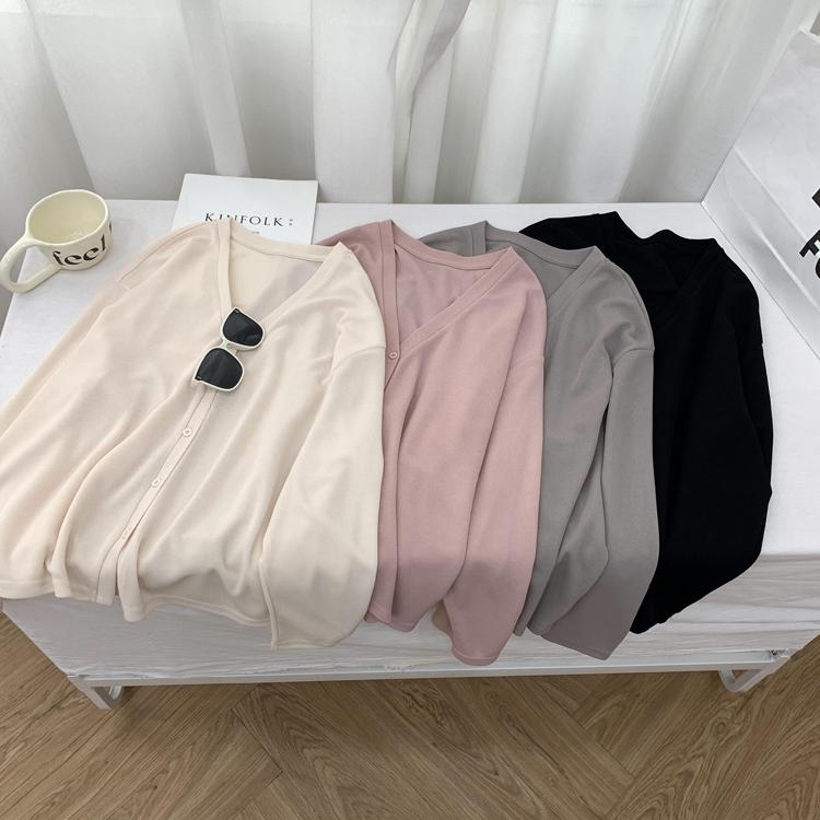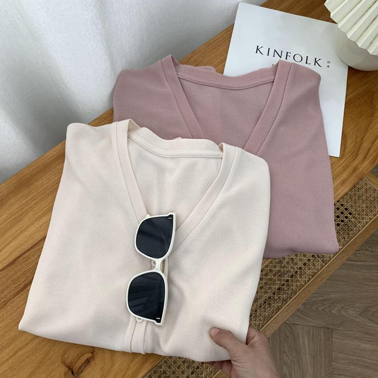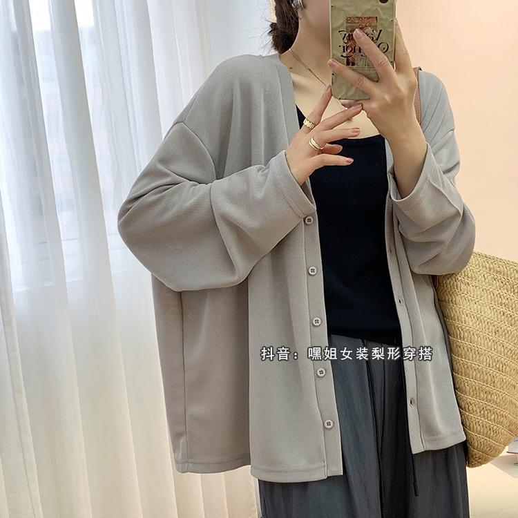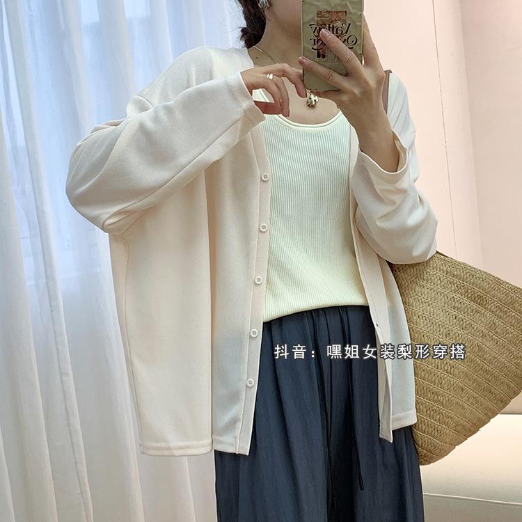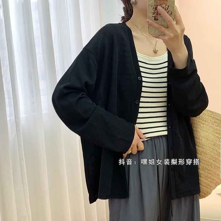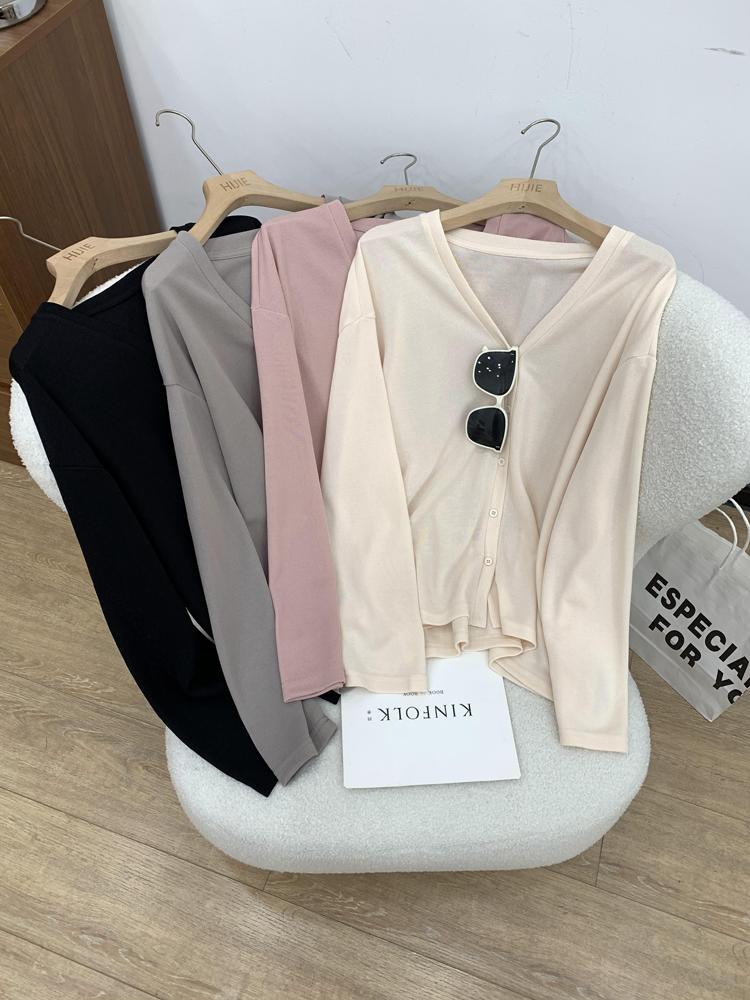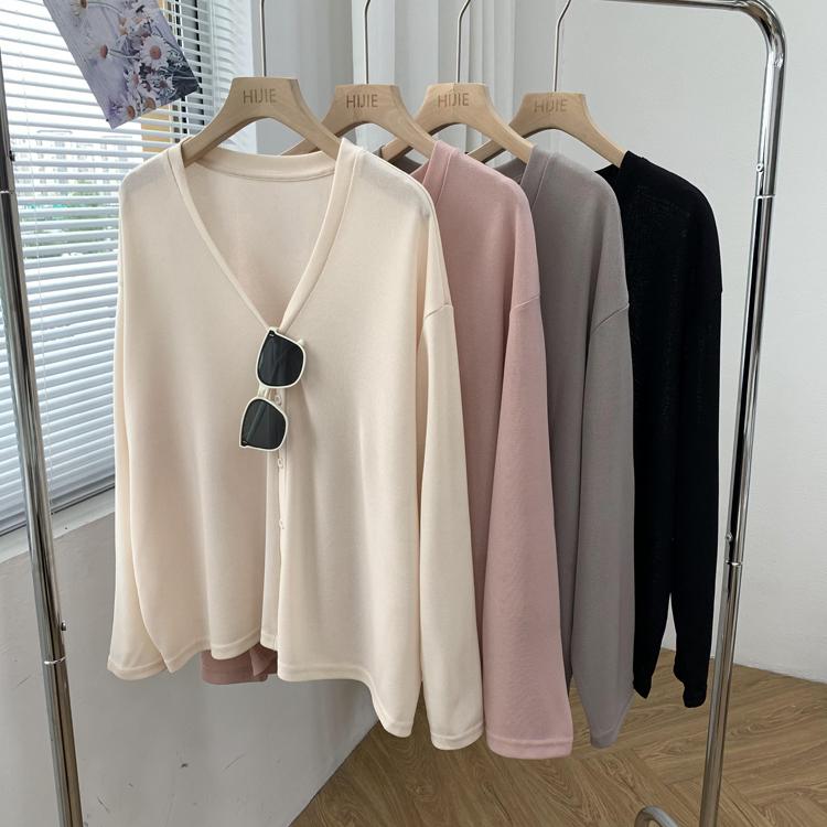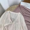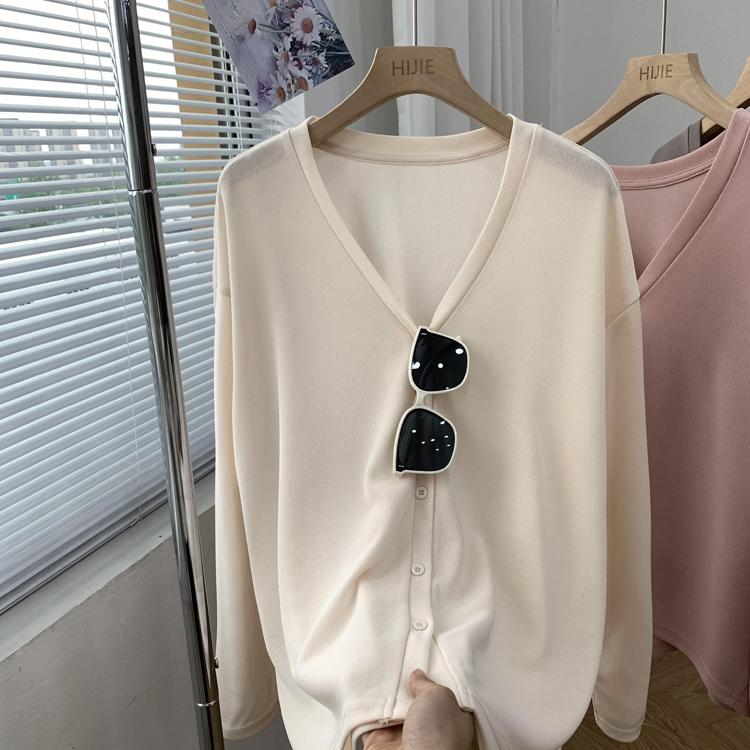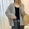 Cárdigan de Punto Fino de Seda Helada con Cuello en V para Mujer, Estilo Verano, Adelgazante, Holgazán, Versátil, Suelto con Botones de Manga Larga, Chaqueta de Color Sólido