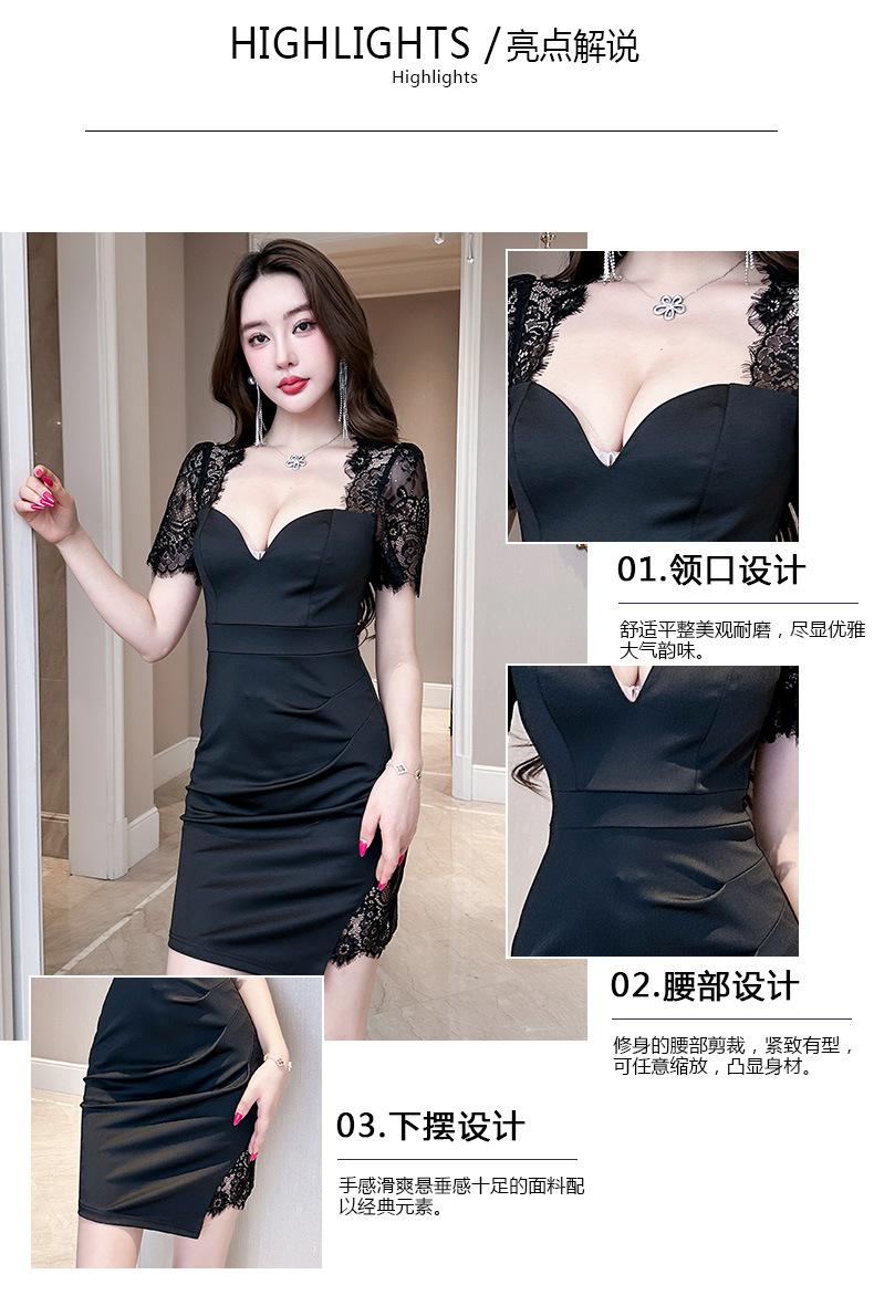 Vestido de Club Nocturno, Escotado, Ajustado, Falda que Abraza las Caderas, Cremallera, Ropa de Trabajo Elegante, Ropa de Trabajo para Bar Club Nocturno