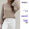 Suéter de punto europeo y americano retro con trenzas retorcidas, manga acampanada torcida y solapa para mujer, holgado, cálido, elegante, para otoño e invierno