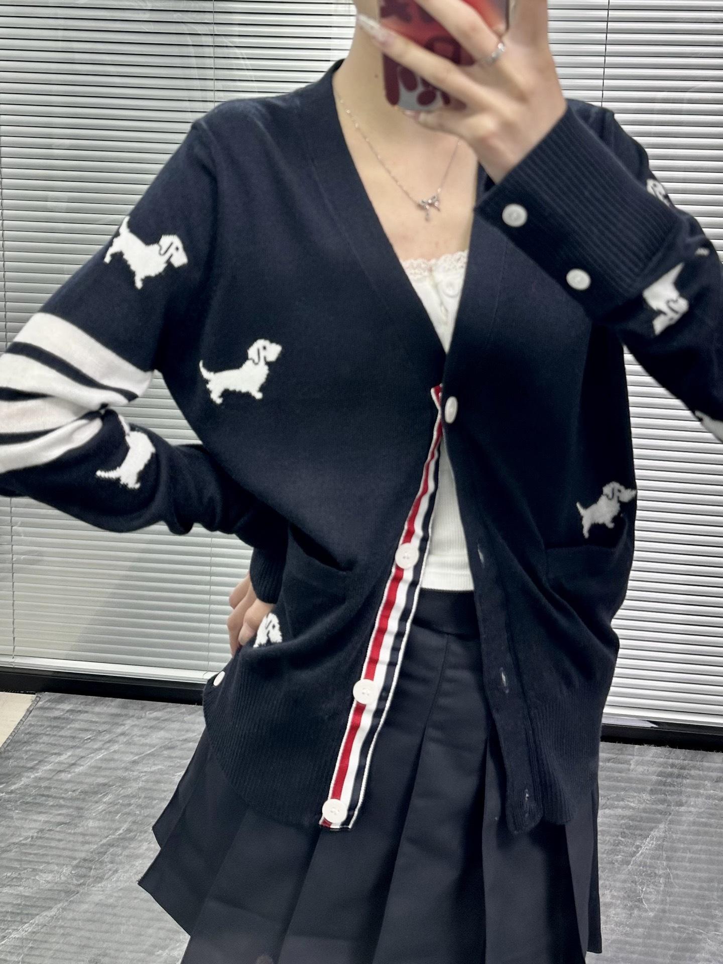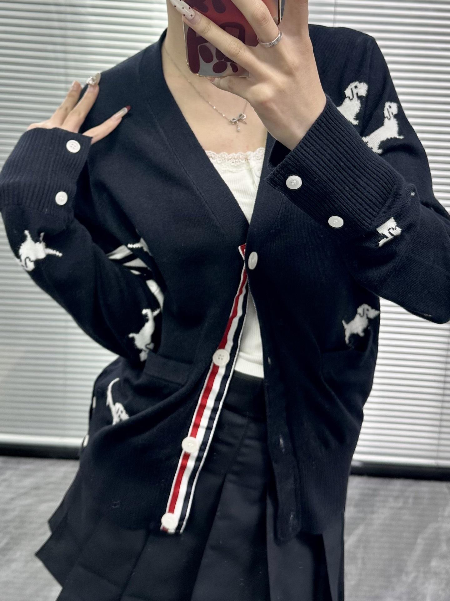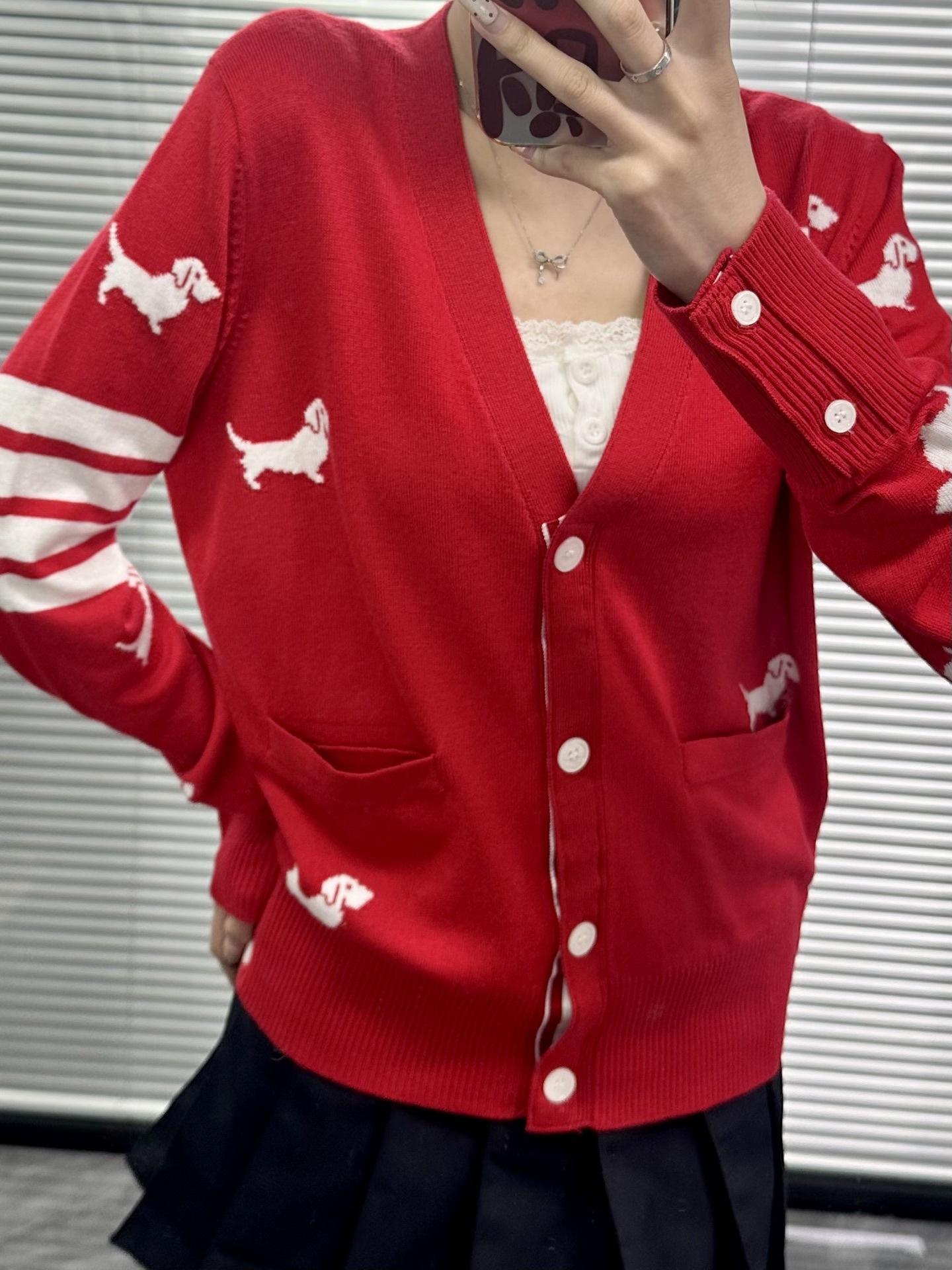 Ventas Directas de Fábrica Versión Alta 25Stb Nuevo Primavera y Otoño Cuatro Barras Manga Larga Cuello en V Tejido Suéter de Mujer de Cuerpo Entero con Cachorrito