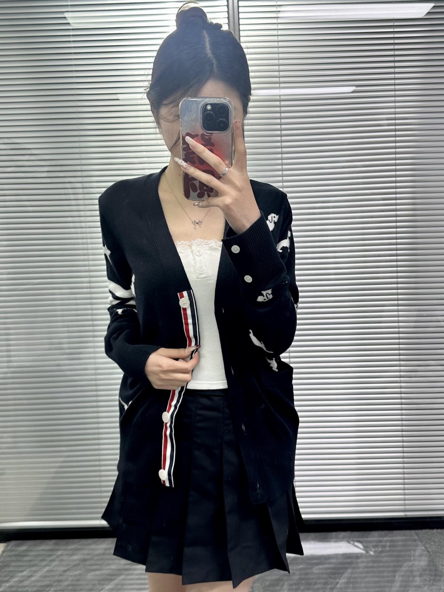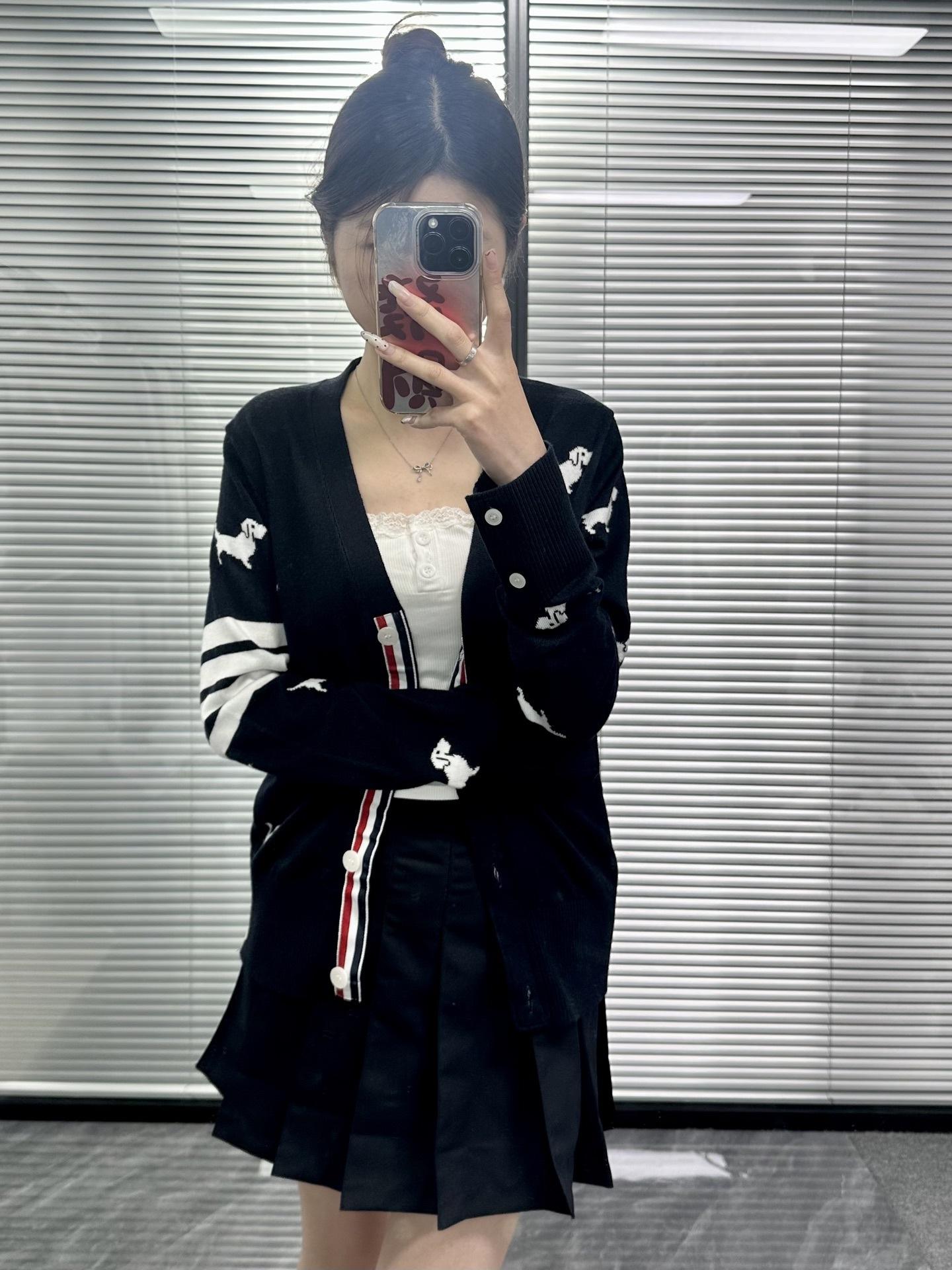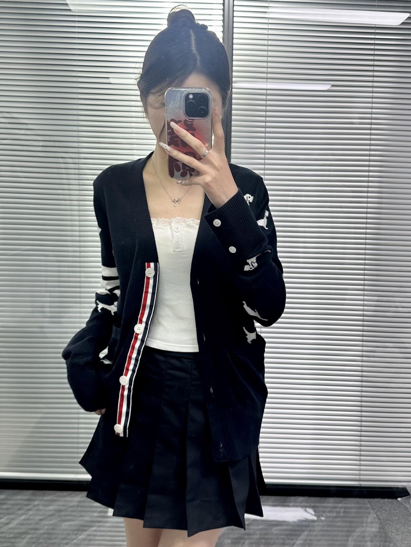 Ventas Directas de Fábrica Versión Alta 25Stb Nuevo Primavera y Otoño Cuatro Barras Manga Larga Cuello en V Tejido Suéter de Mujer de Cuerpo Entero con Cachorrito
