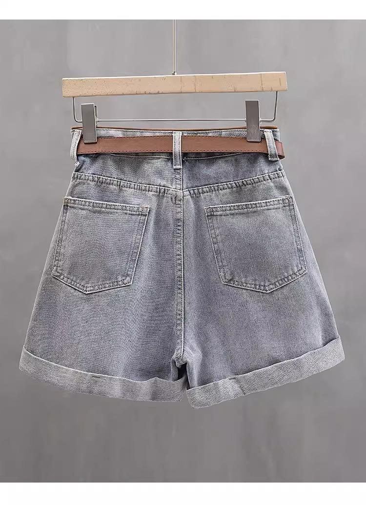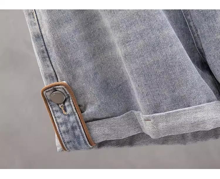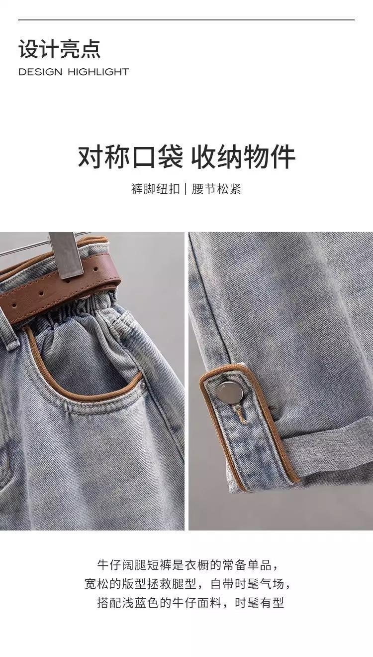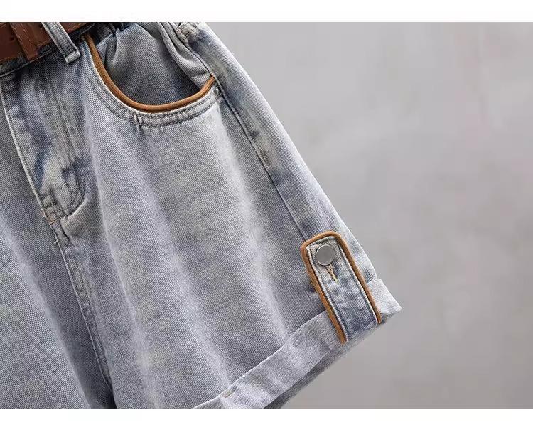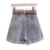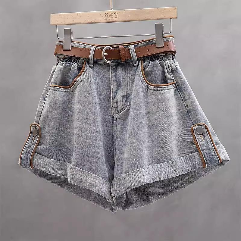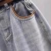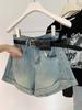 Shorts de mezclilla de talle alto con dobladillo rizado y cintura elástica de talla grande para mujer 2025 verano talle alto corte holgado adelgazante línea A pierna ancha pantalones cortos