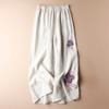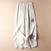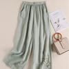 Pantalones anchos de algodón y lino con bordado artístico para mujer, primavera y verano, holgados, adelgazantes, de cintura alta, rectos e informales.