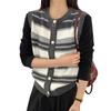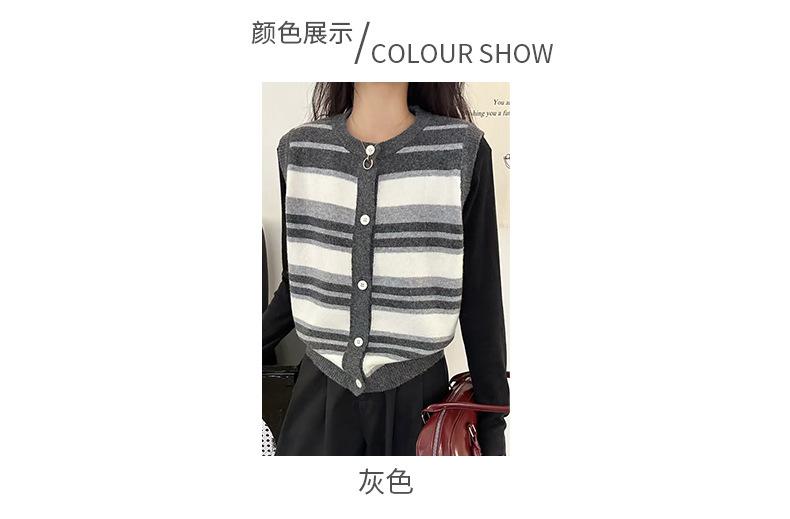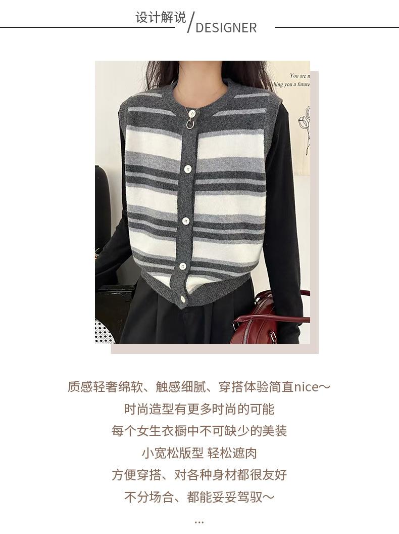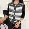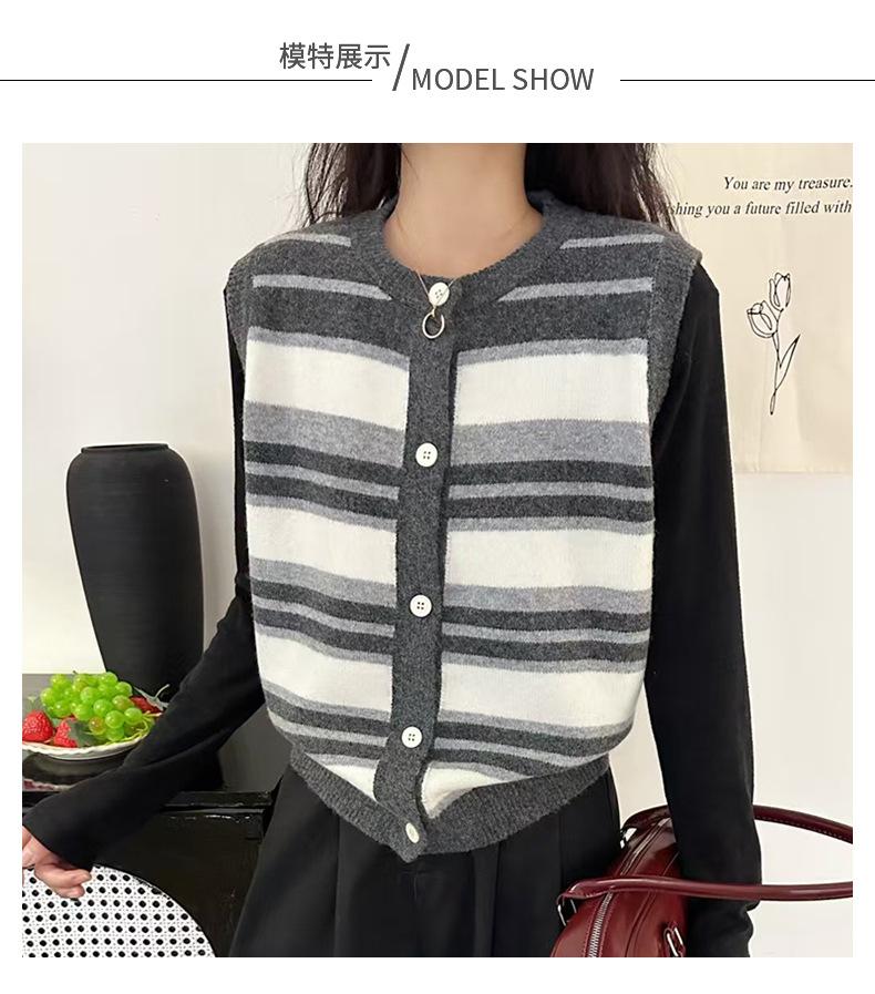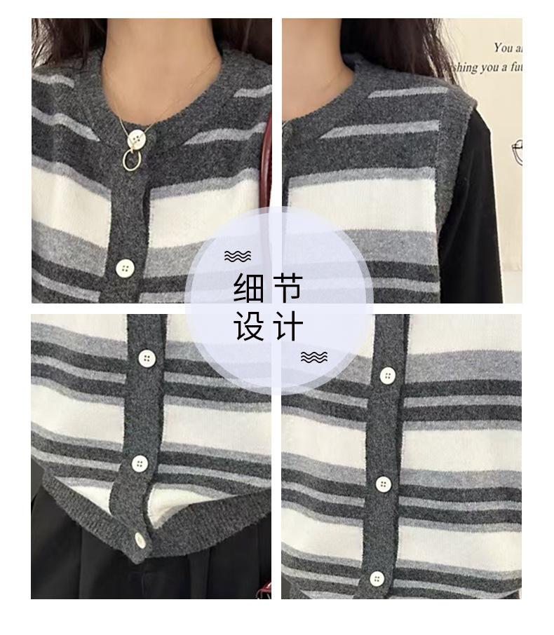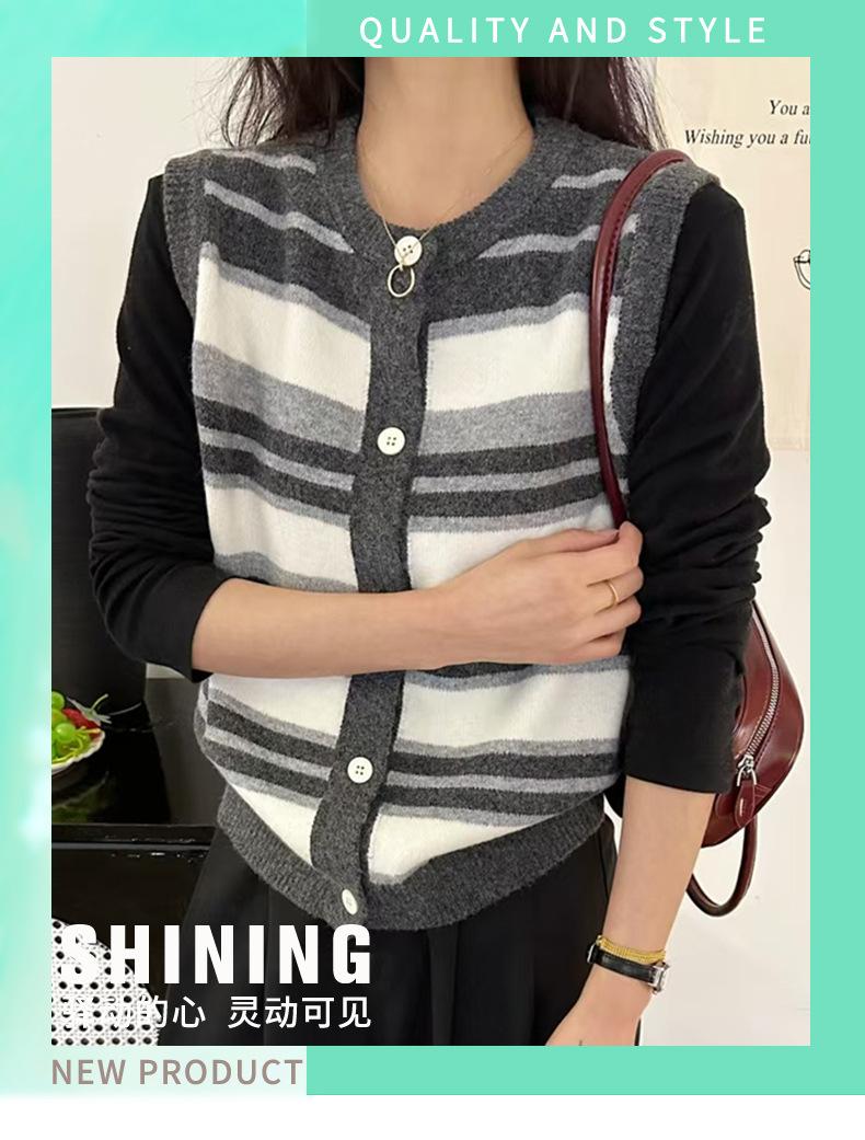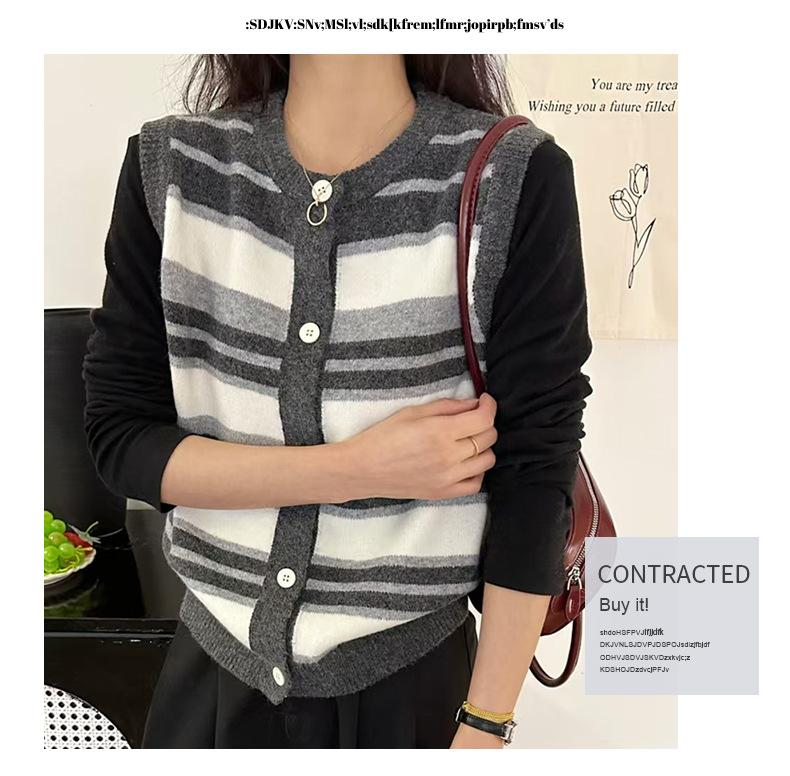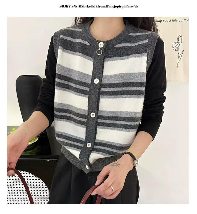 Chaleco de punto de cuello redondo a rayas con combinación de colores Cárdigan para mujer 2025 Primavera y Otoño Nuevo estilo coreano Estilo extranjero Top Chaleco