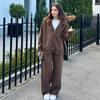 2024 Amazon Europa y Estados Unidos otoño e invierno moda casual para mujer traje de pantalón de manga larga con cordón y color sólido para mujer