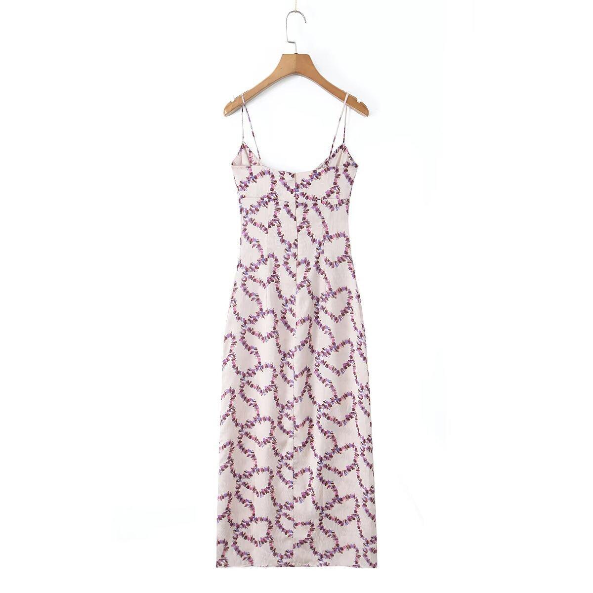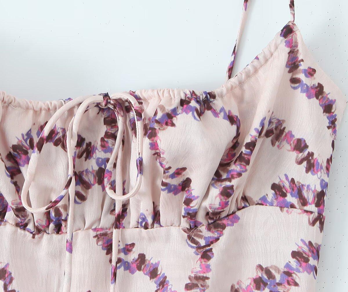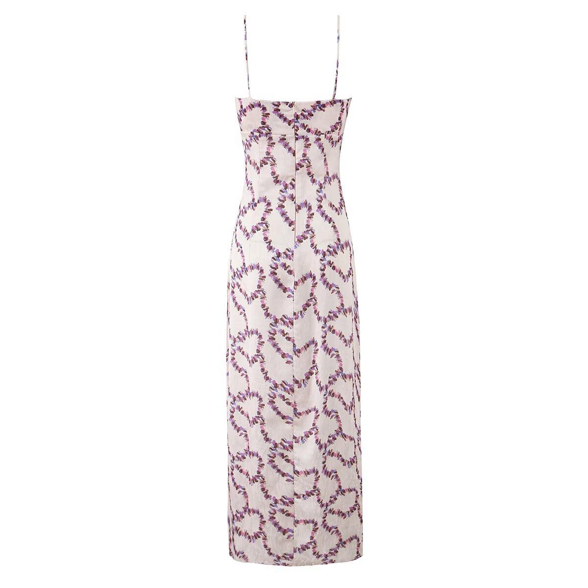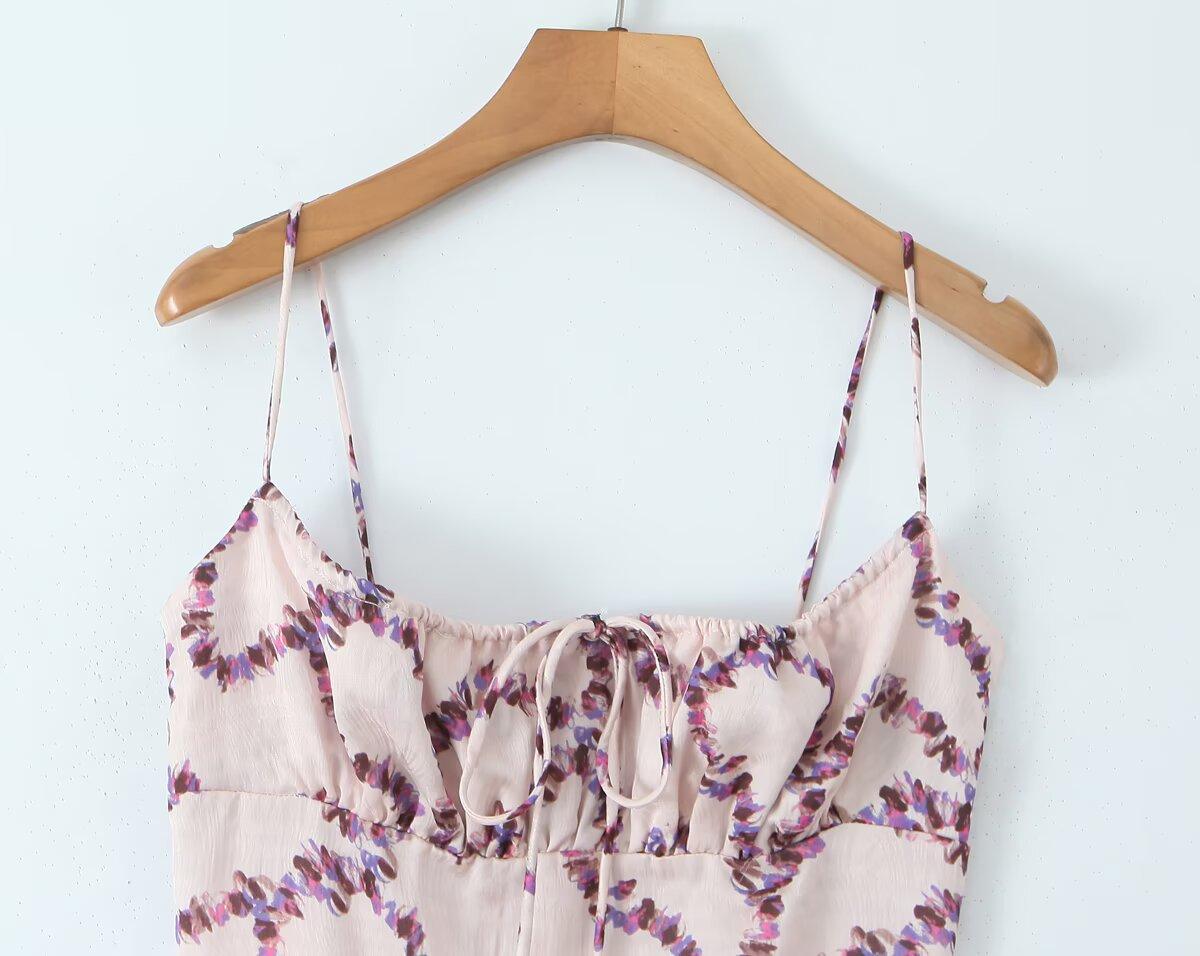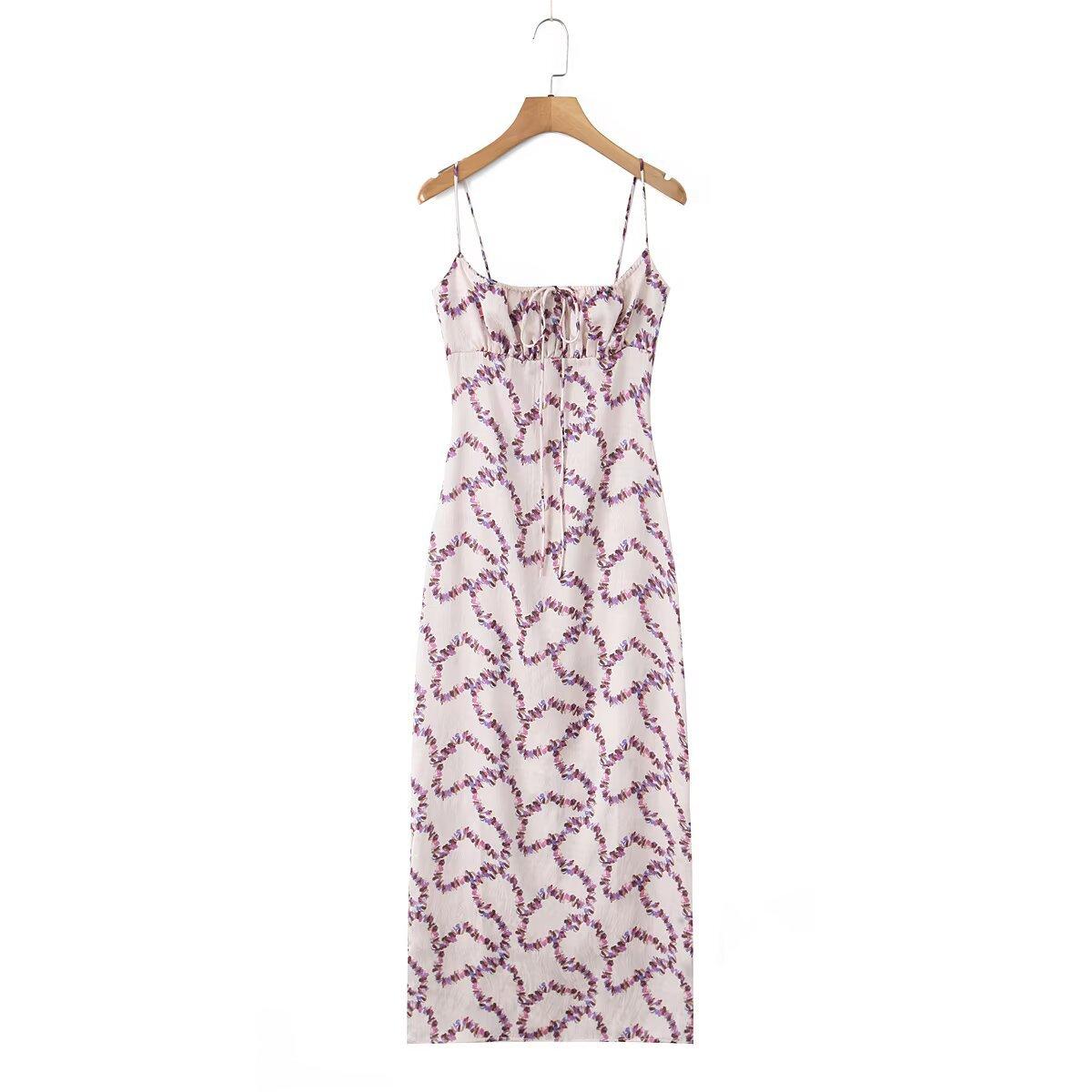 Venta al por mayor de comercio exterior transfronterizo Verano Nuevo Moda europea y americana Elegante floral Tirantes espagueti Estilo deseo puro Vestido ajustado ceñido a la cintura
