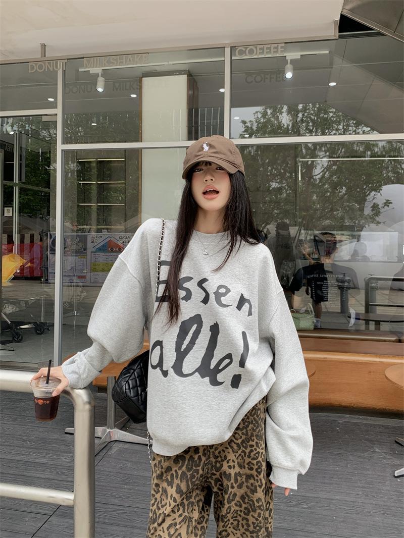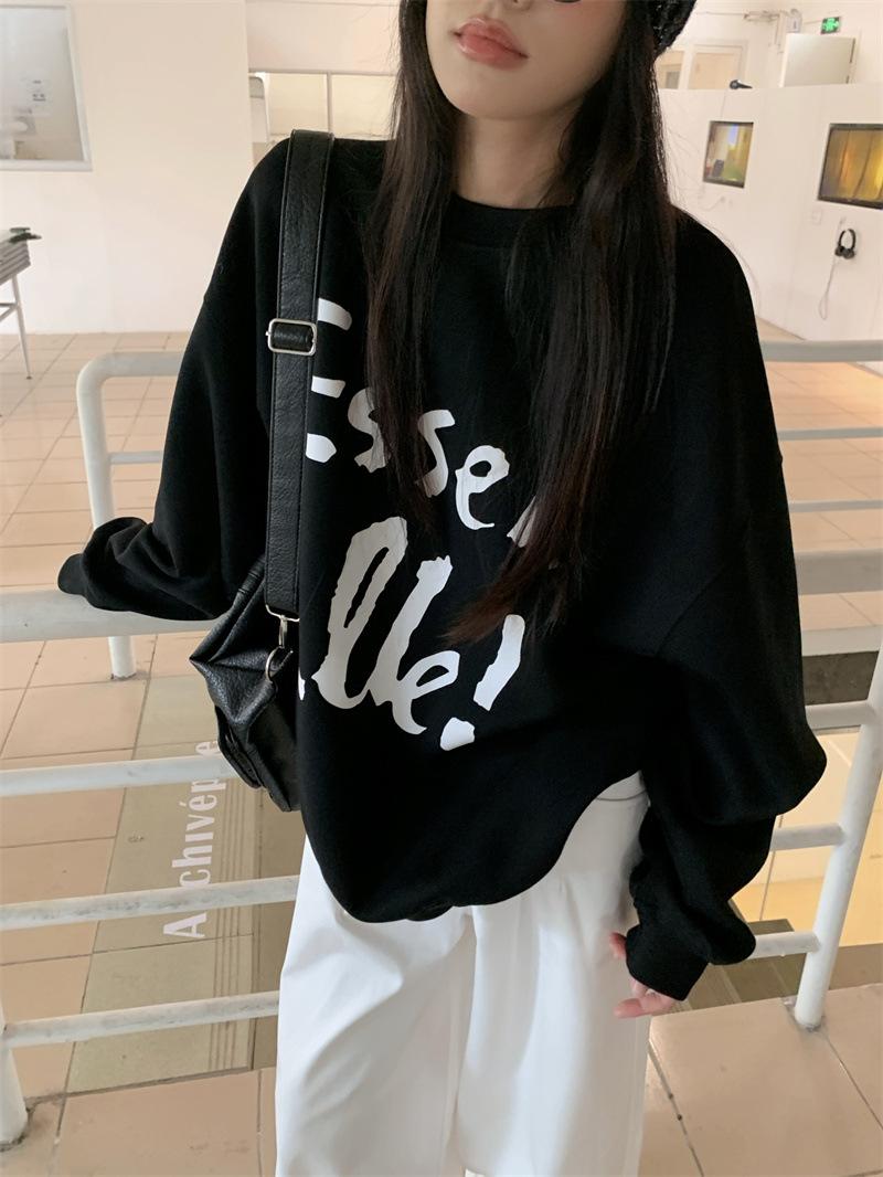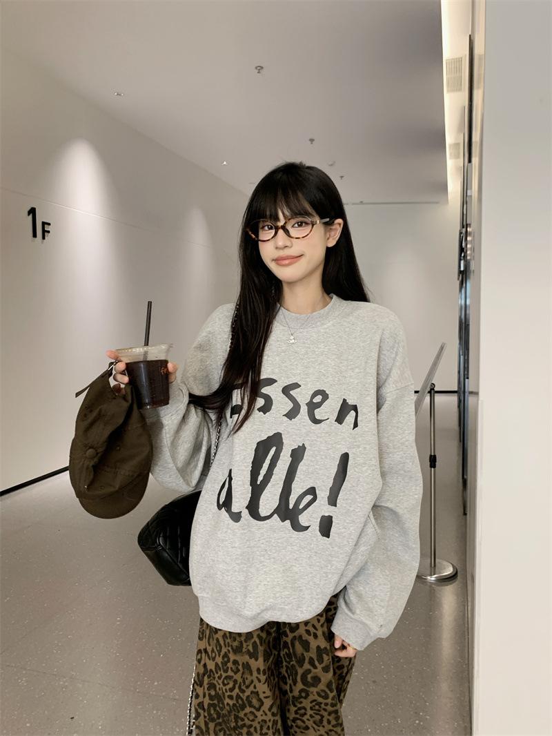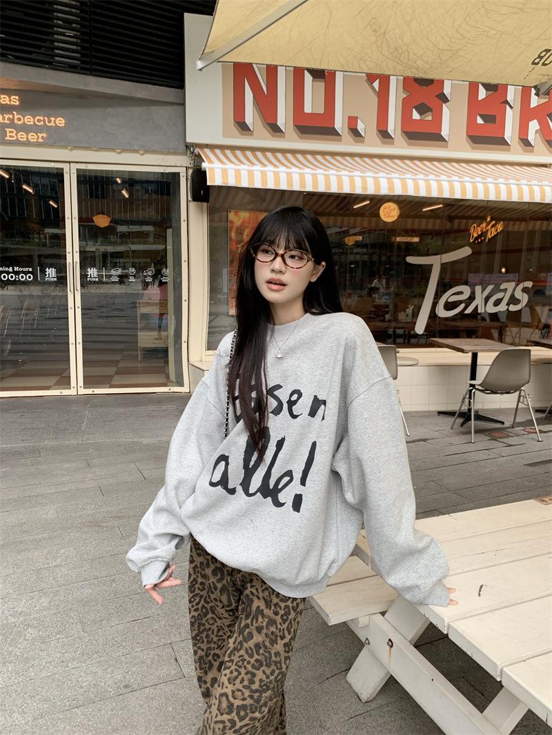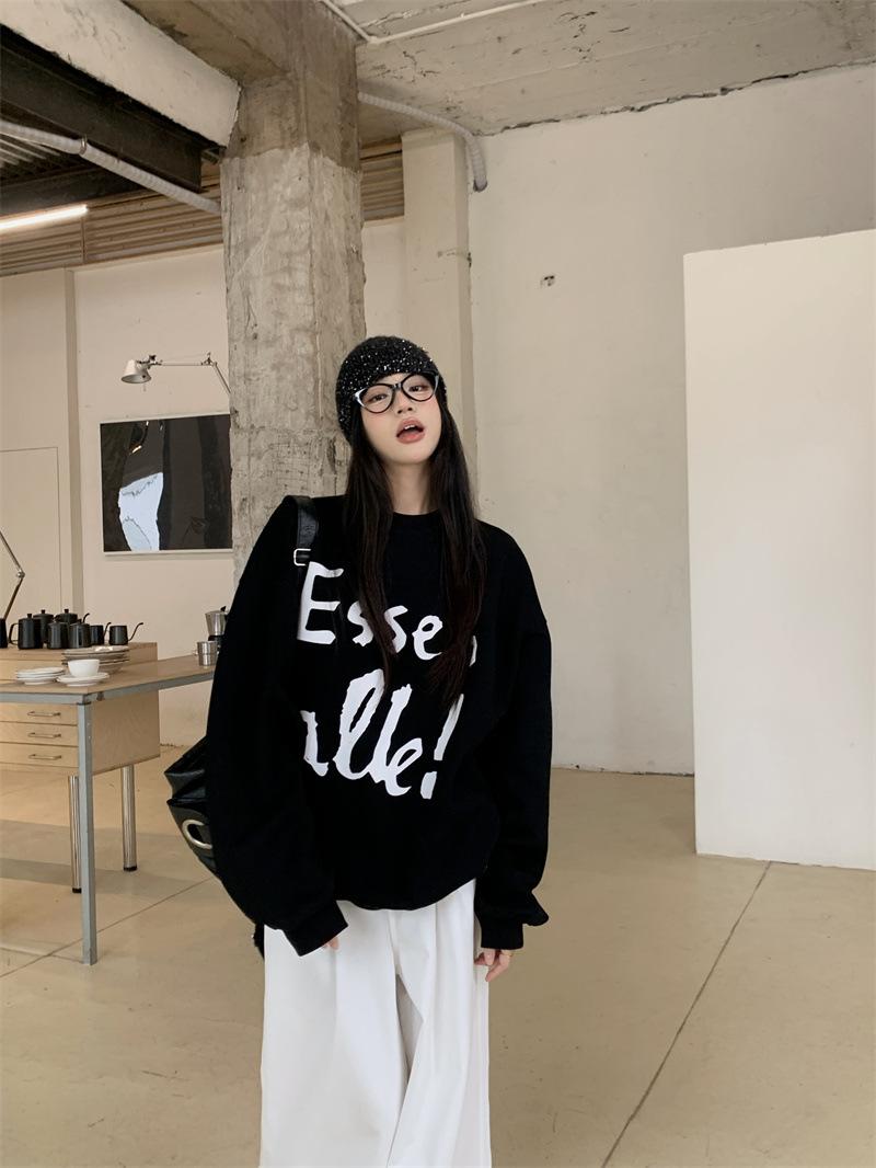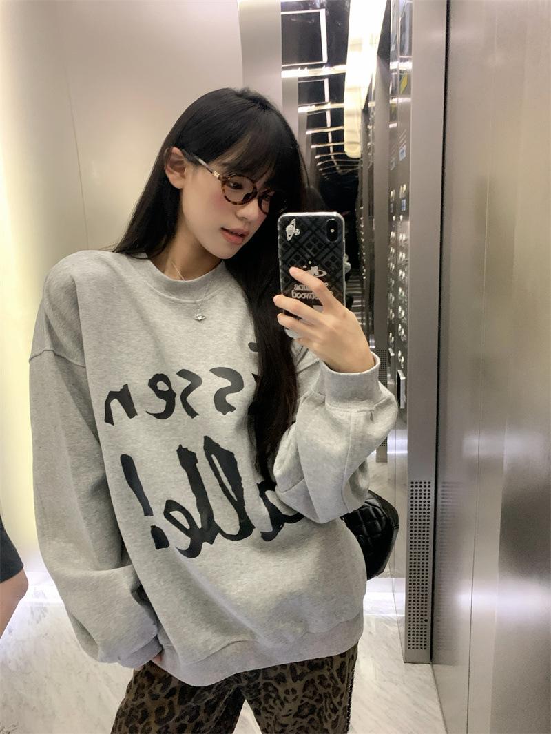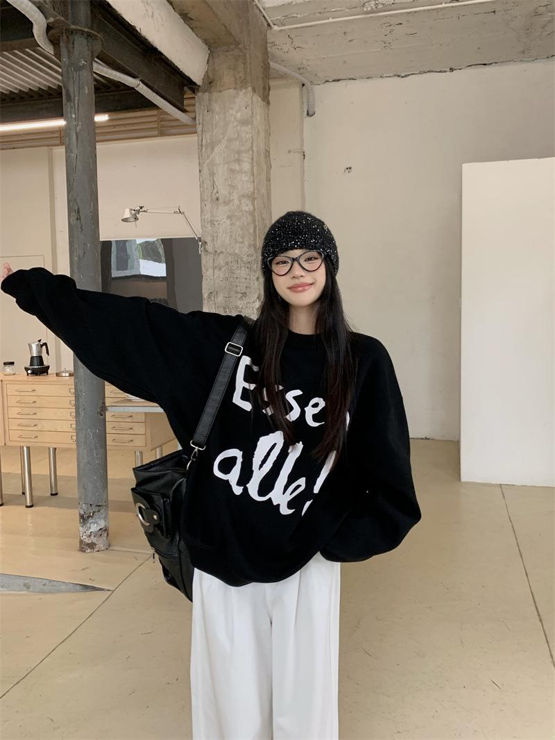 Suéter de Cuello Redondo con Letras Moderno Estilo Americano High Street para Mujer Primavera 2025 Nuevo Casual Holgado Adelgazante Largo Medio