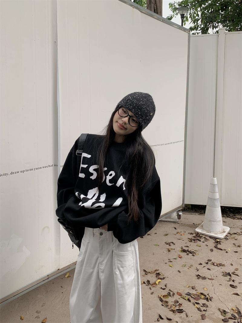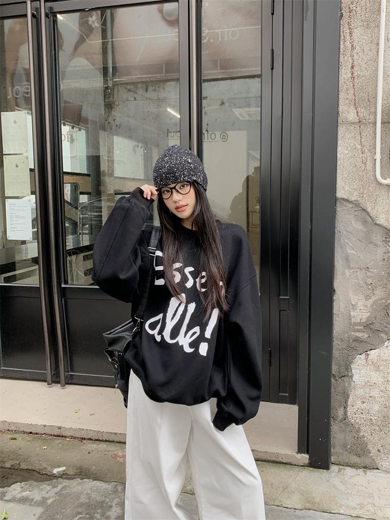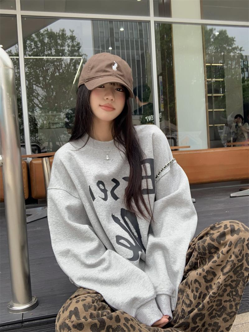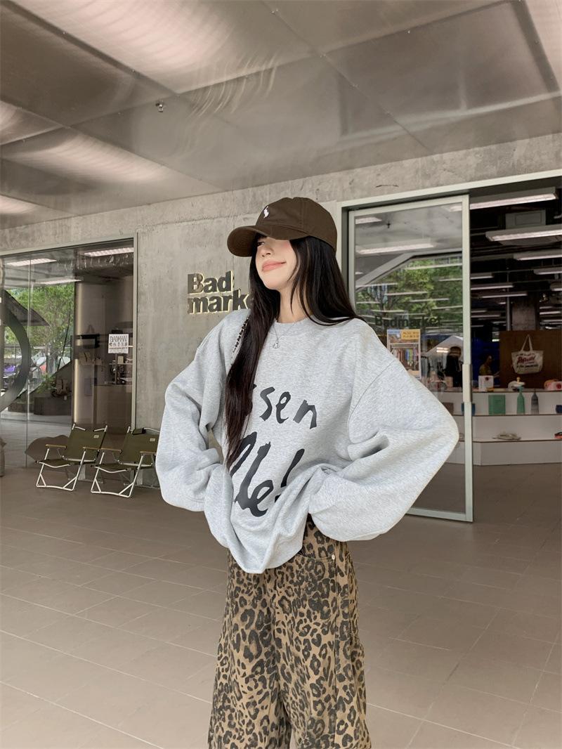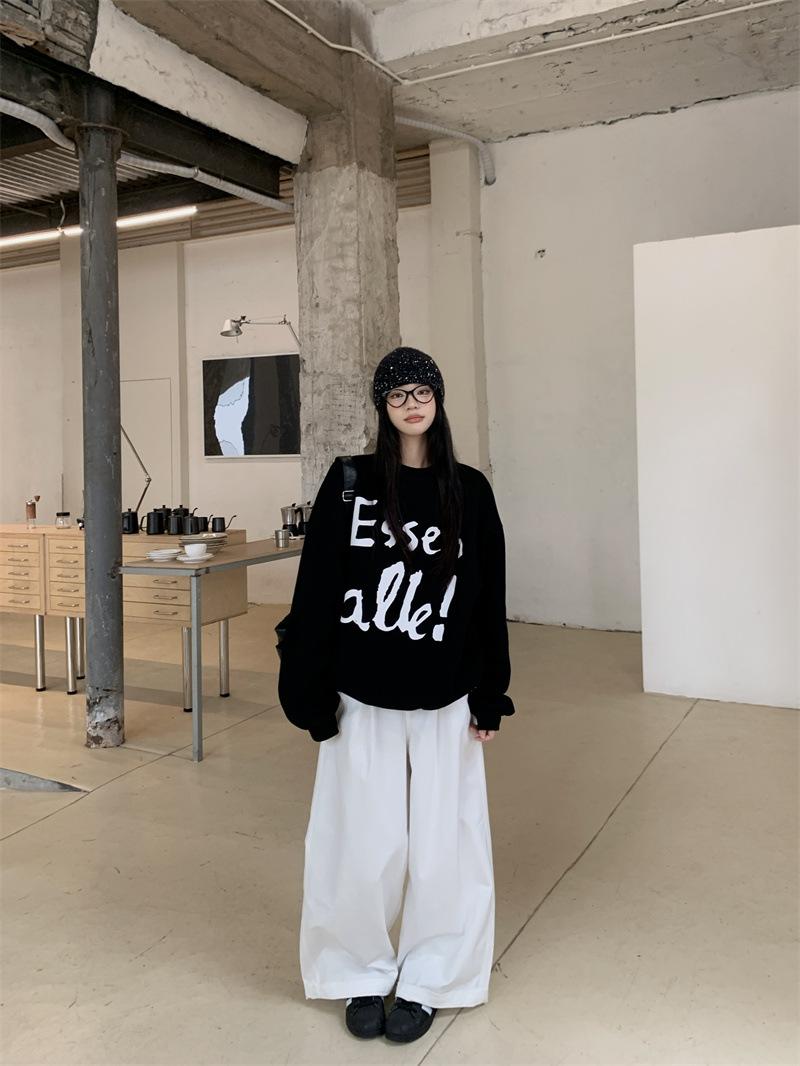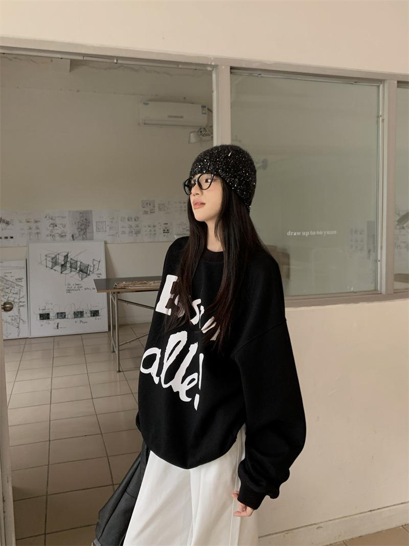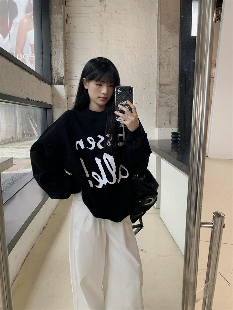 Suéter de Cuello Redondo con Letras Moderno Estilo Americano High Street para Mujer Primavera 2025 Nuevo Casual Holgado Adelgazante Largo Medio