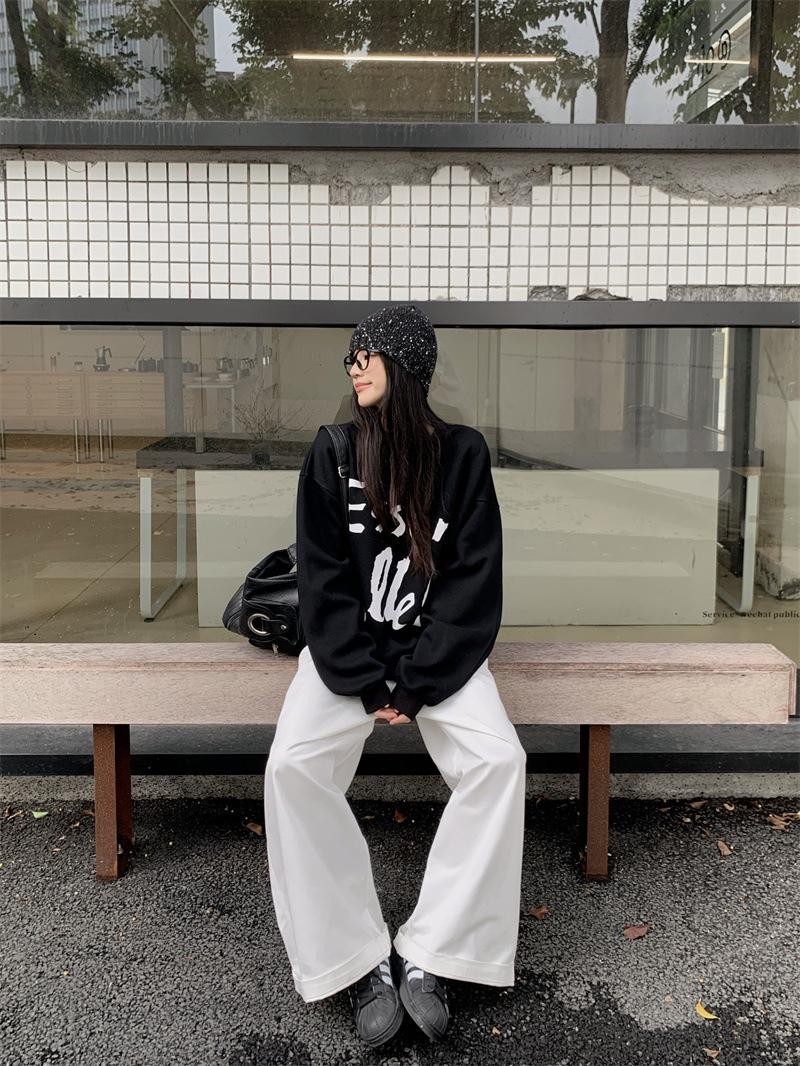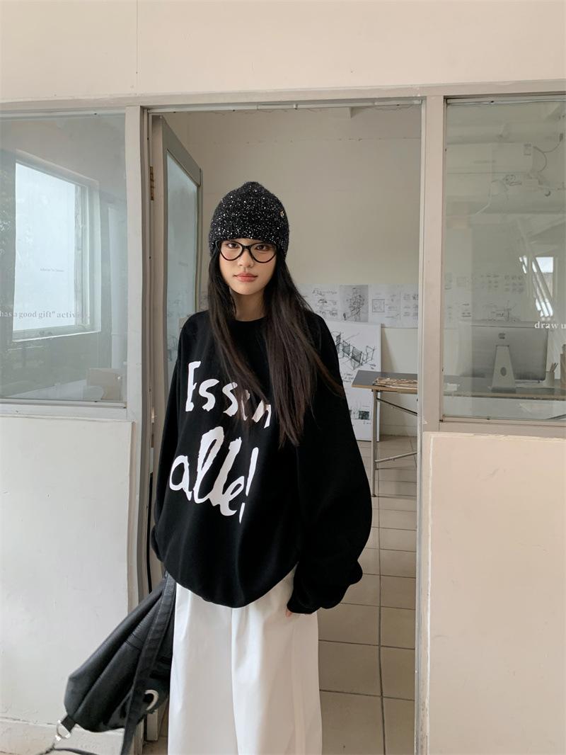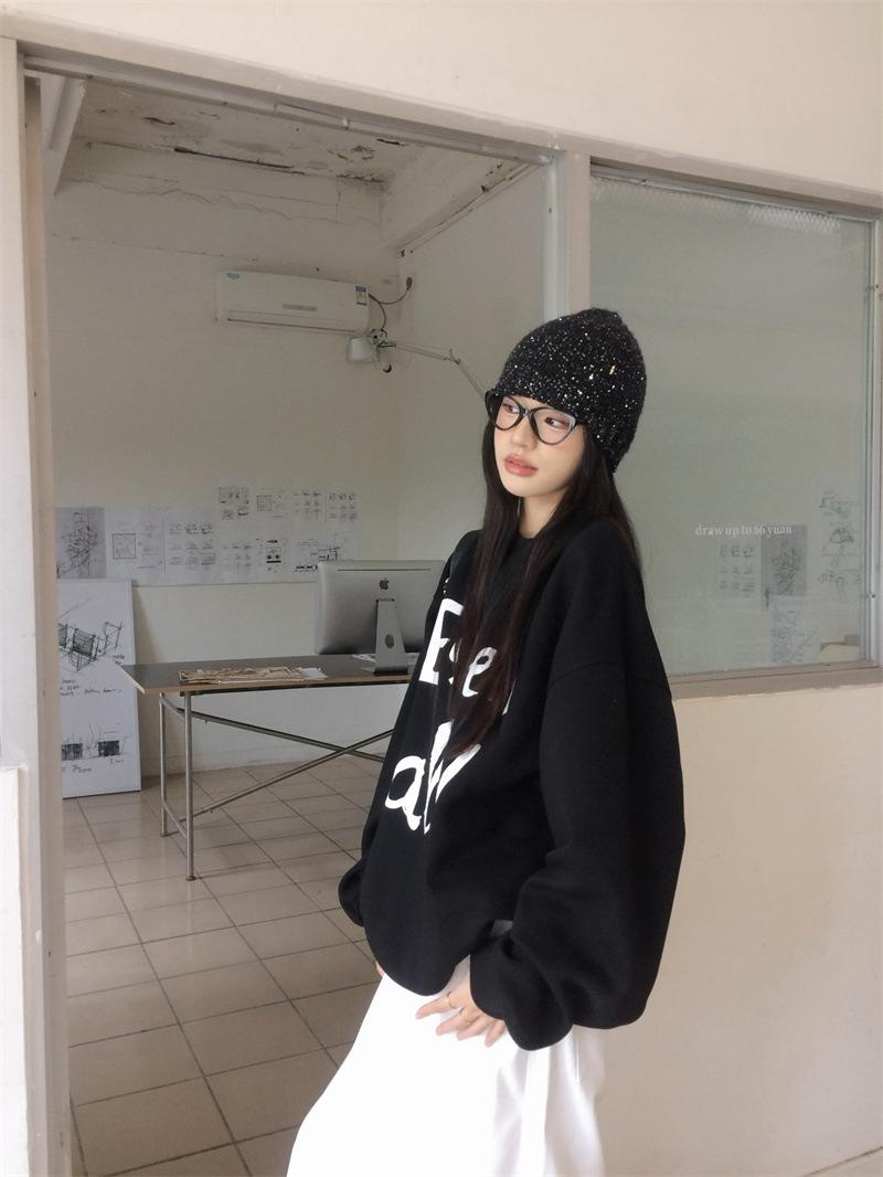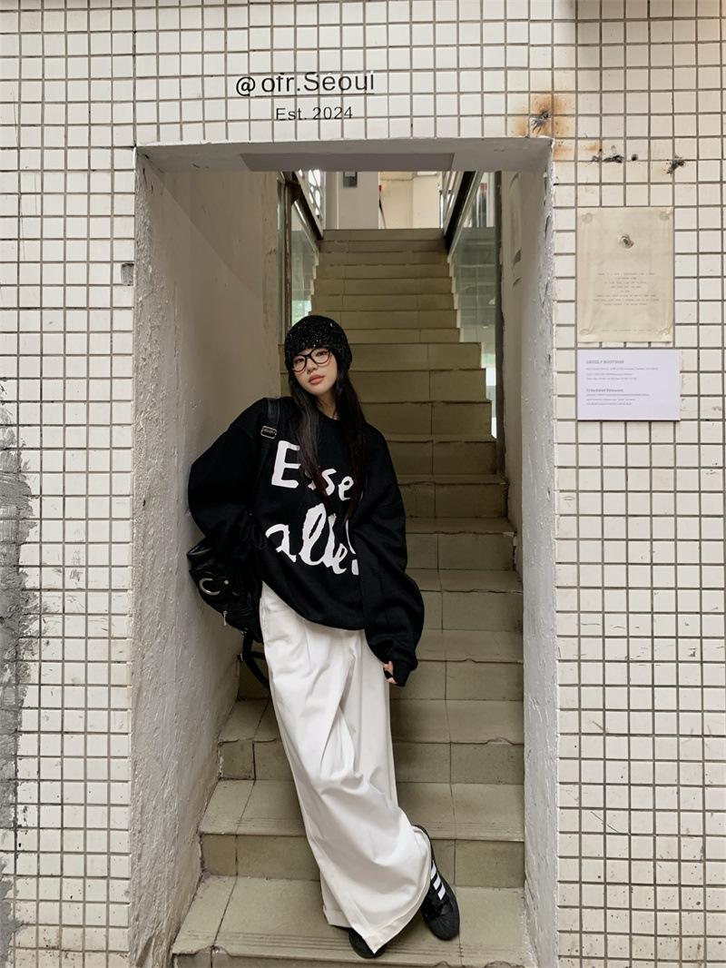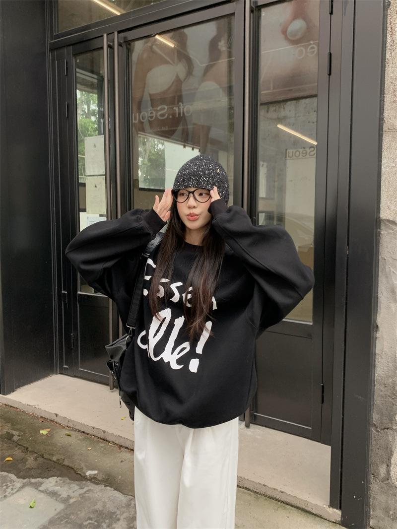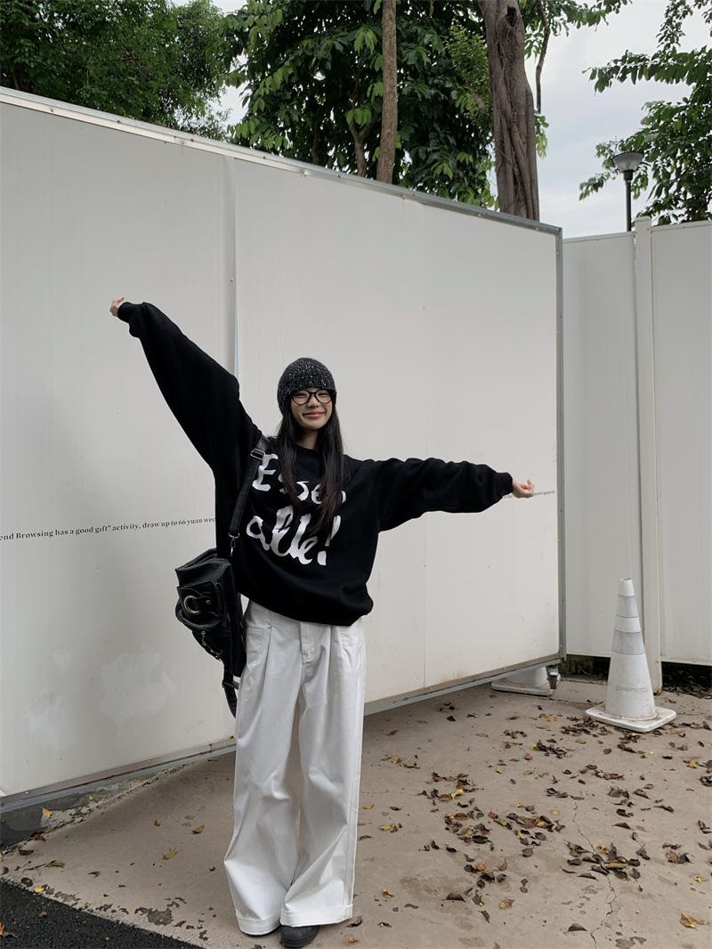 Suéter de Cuello Redondo con Letras Moderno Estilo Americano High Street para Mujer Primavera 2025 Nuevo Casual Holgado Adelgazante Largo Medio