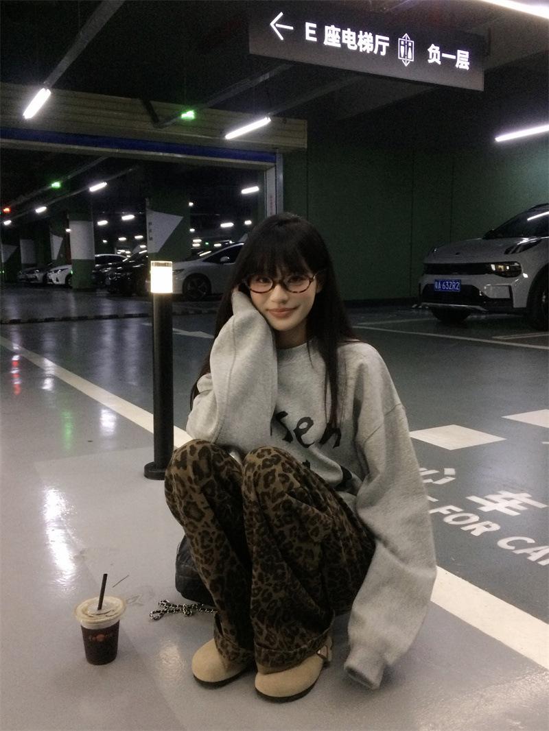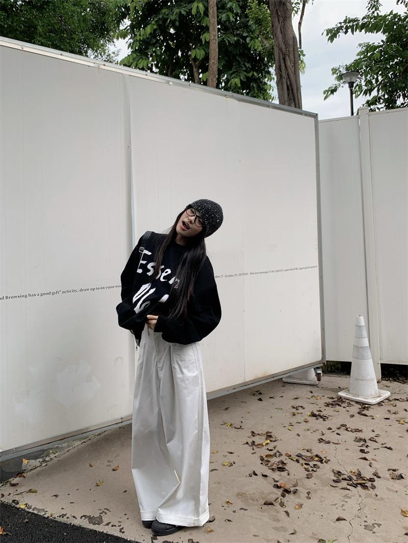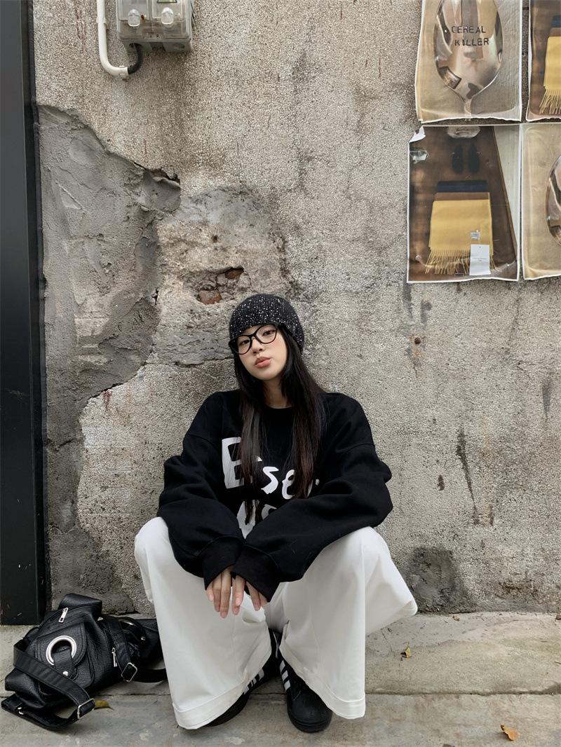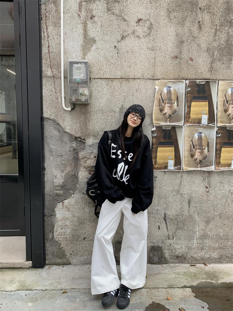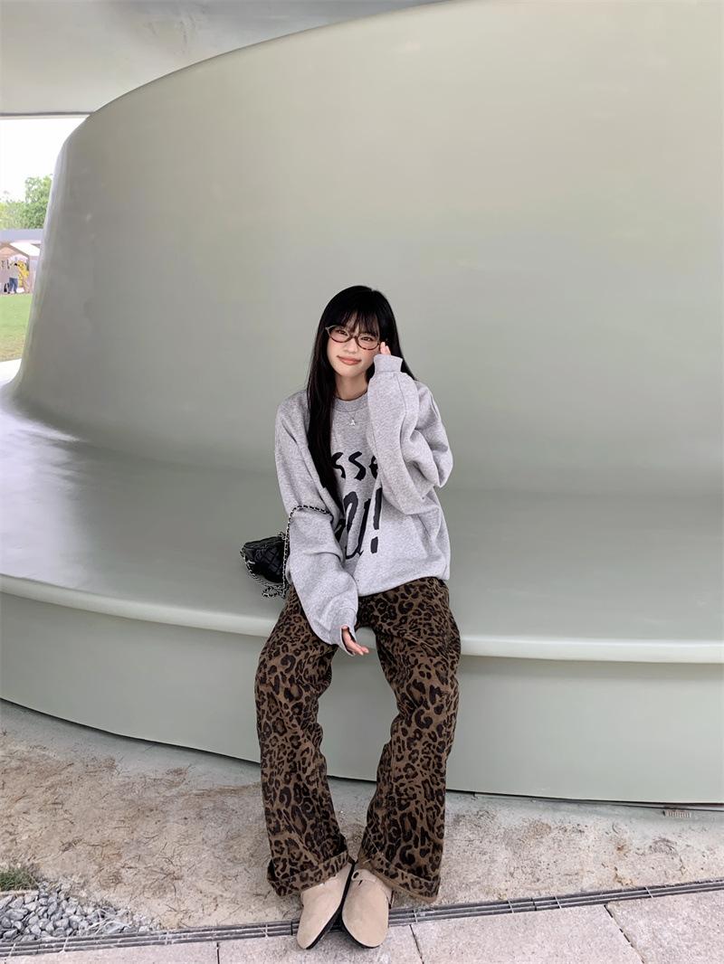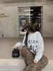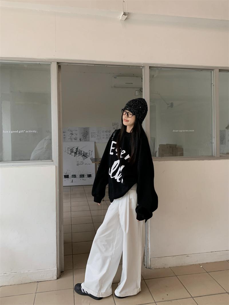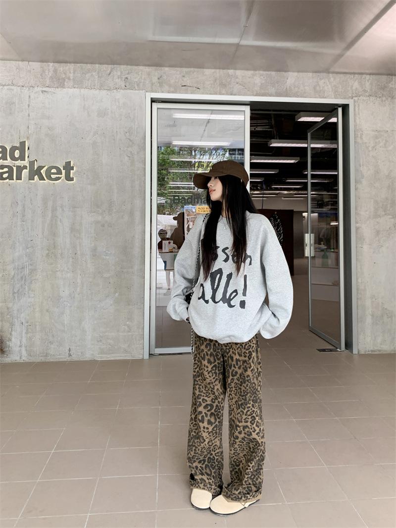 Suéter de Cuello Redondo con Letras Moderno Estilo Americano High Street para Mujer Primavera 2025 Nuevo Casual Holgado Adelgazante Largo Medio