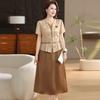 Nuevo Estilo Chino Vestido de Verano para Mamá 2025 Nueva Moda para Mujeres de Mediana Edad y Mayores Falda de Cintura de Manga Corta de Dos Piezas Falsas
