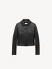 2025 Nuevo Otoño Negro Cuero Genuino Chaqueta de Cuero Pequeña para Mujer Corte Ajustado Corto Piel de Cabra Cuero Único Cuello Mao Chaqueta de Motocicleta