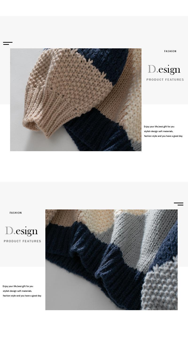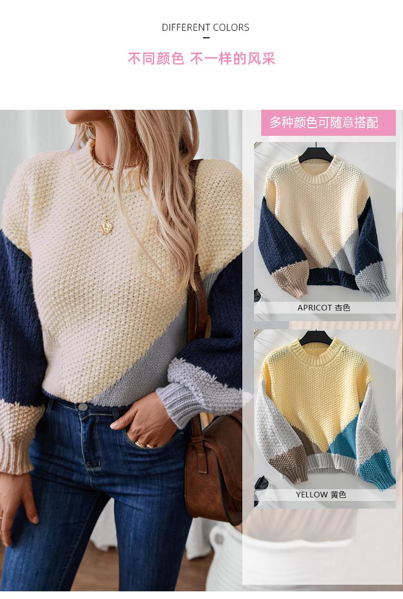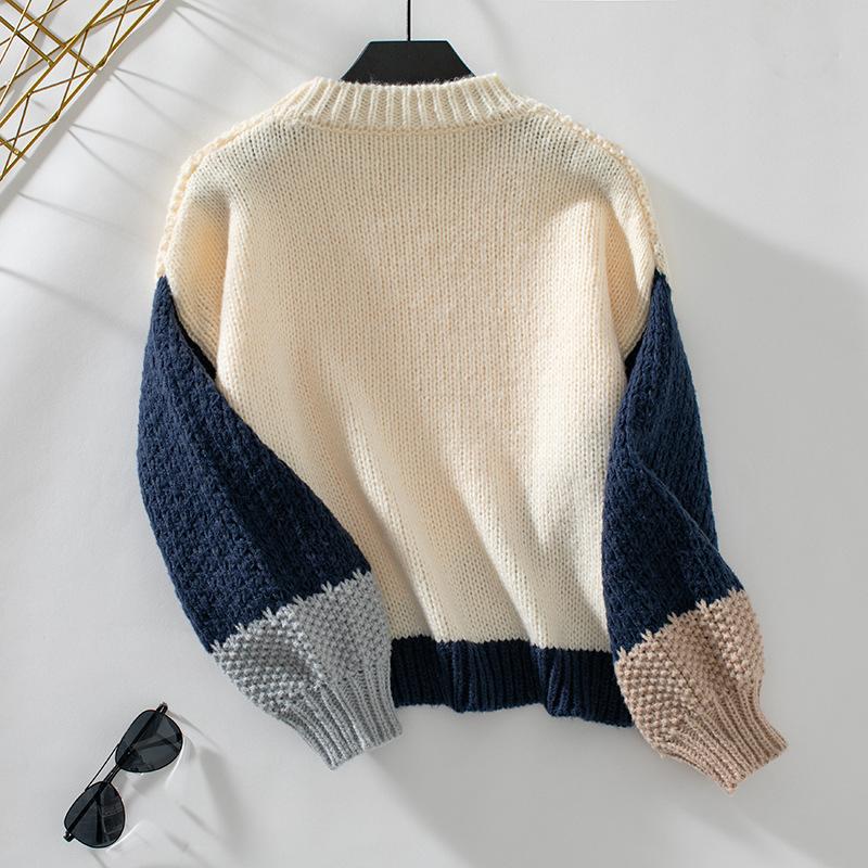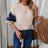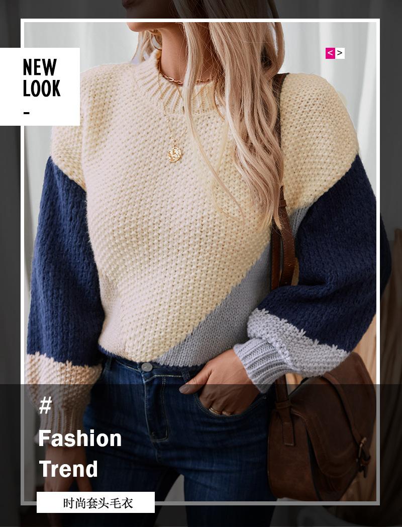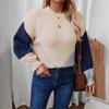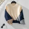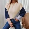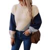 Tejido de Punto para Mujer Transfronterizo 2025 Otoño e Invierno Nuevo Jersey Cuello Redondo Tejido de Punto Europeo y Americano Manga Larga Color en Contraste Tejido de Punto de Aguja Gruesa para Mujer