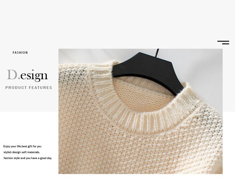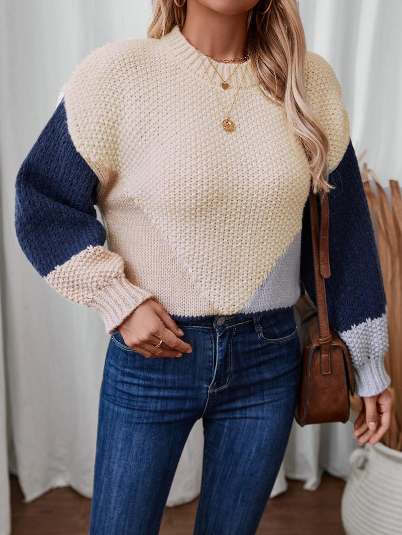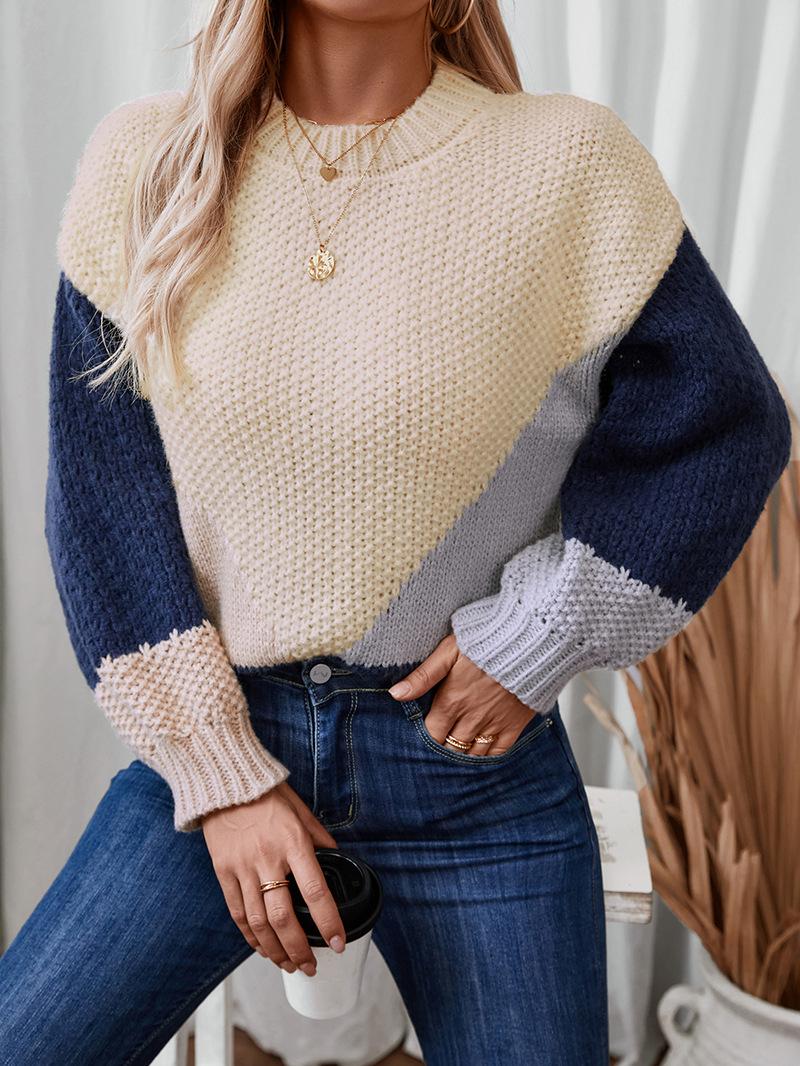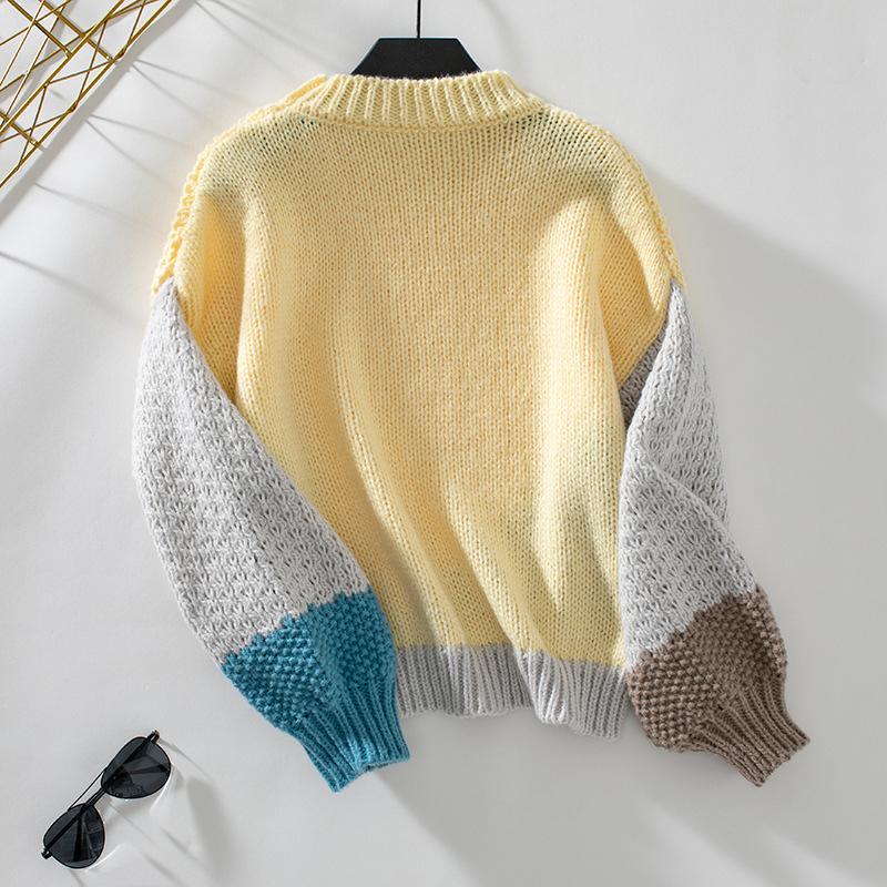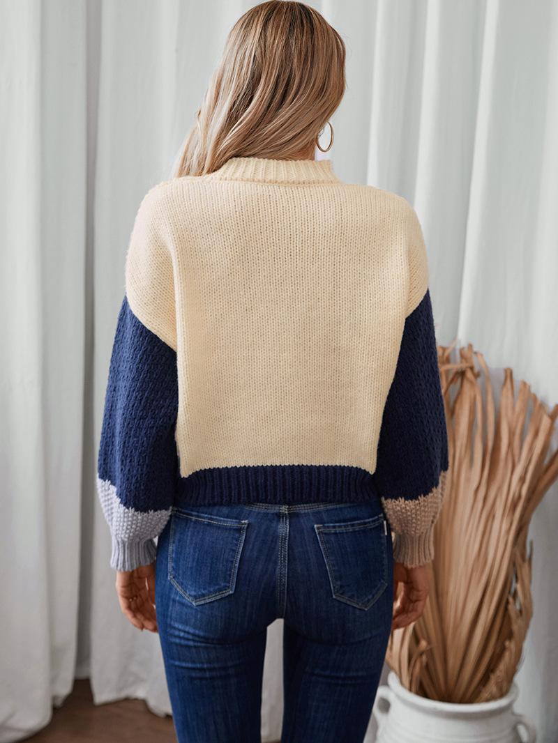 Tejido de Punto para Mujer Transfronterizo 2025 Otoño e Invierno Nuevo Jersey Cuello Redondo Tejido de Punto Europeo y Americano Manga Larga Color en Contraste Tejido de Punto de Aguja Gruesa para Mujer