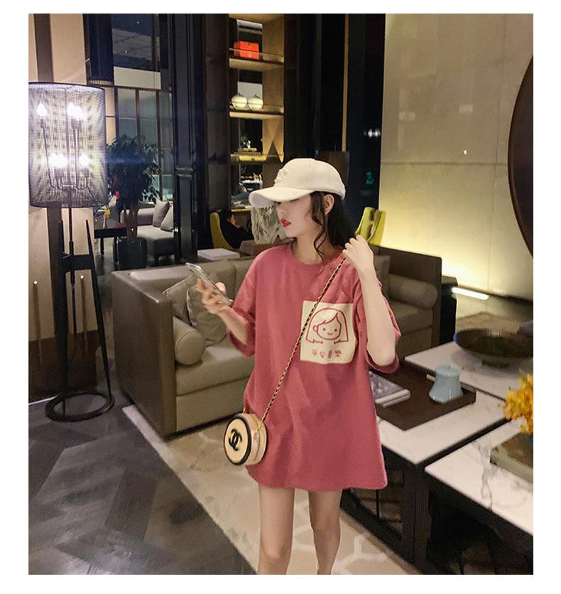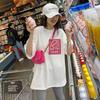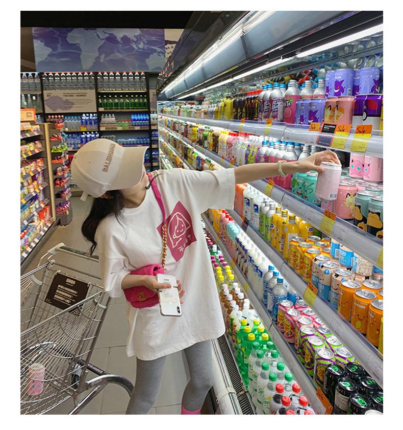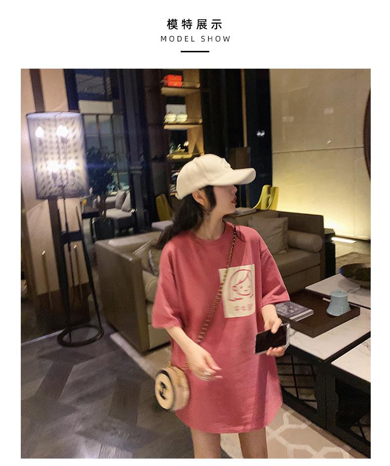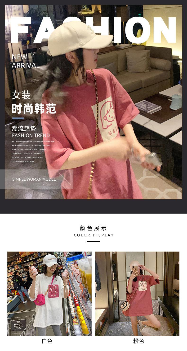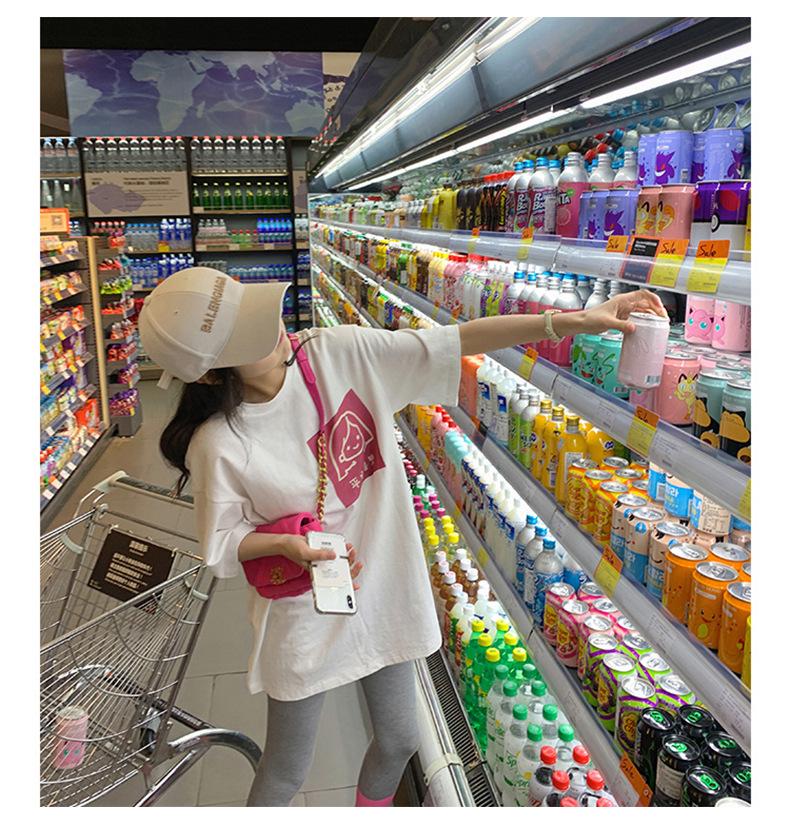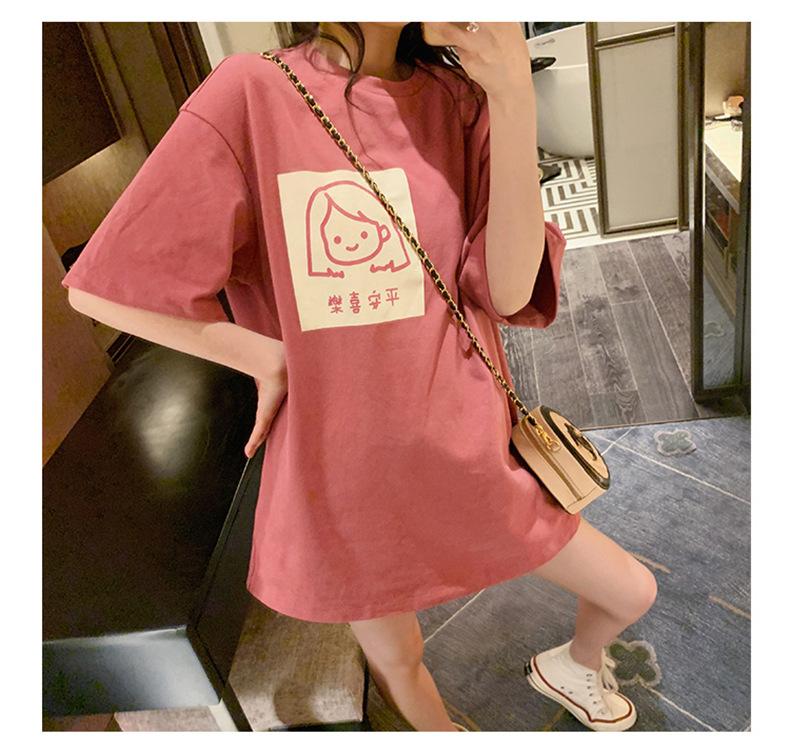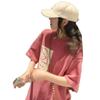 Playera Rosa Estampada de Cuello Redondo y Manga Corta para Mujer Ropa de Verano 2025 Nuevo Estilo Coreano Simple Holgada Versátil Top para Estudiante