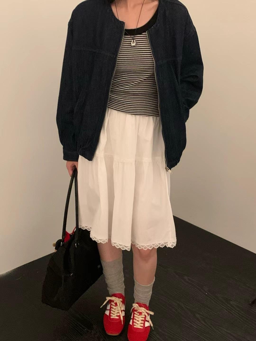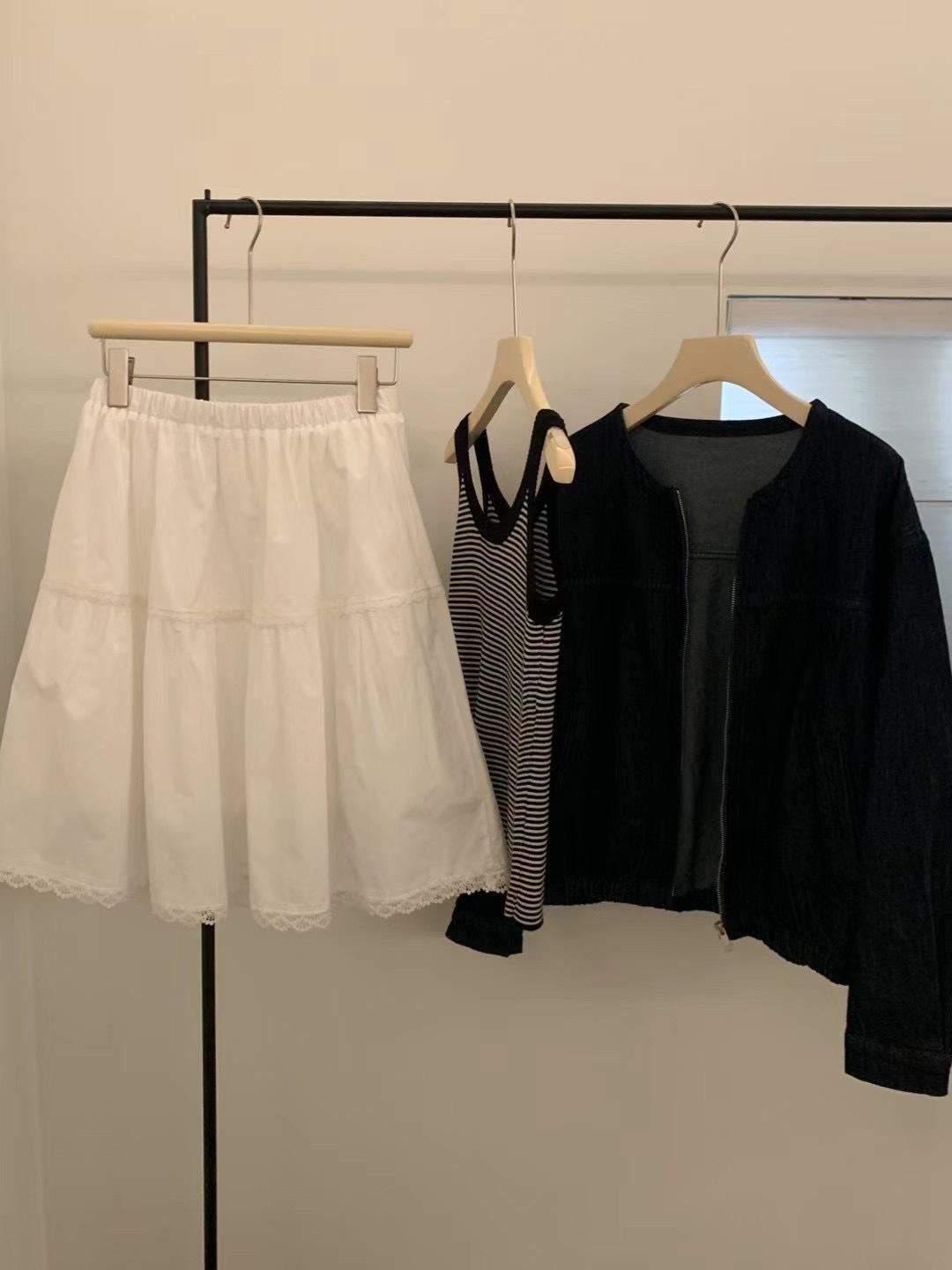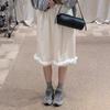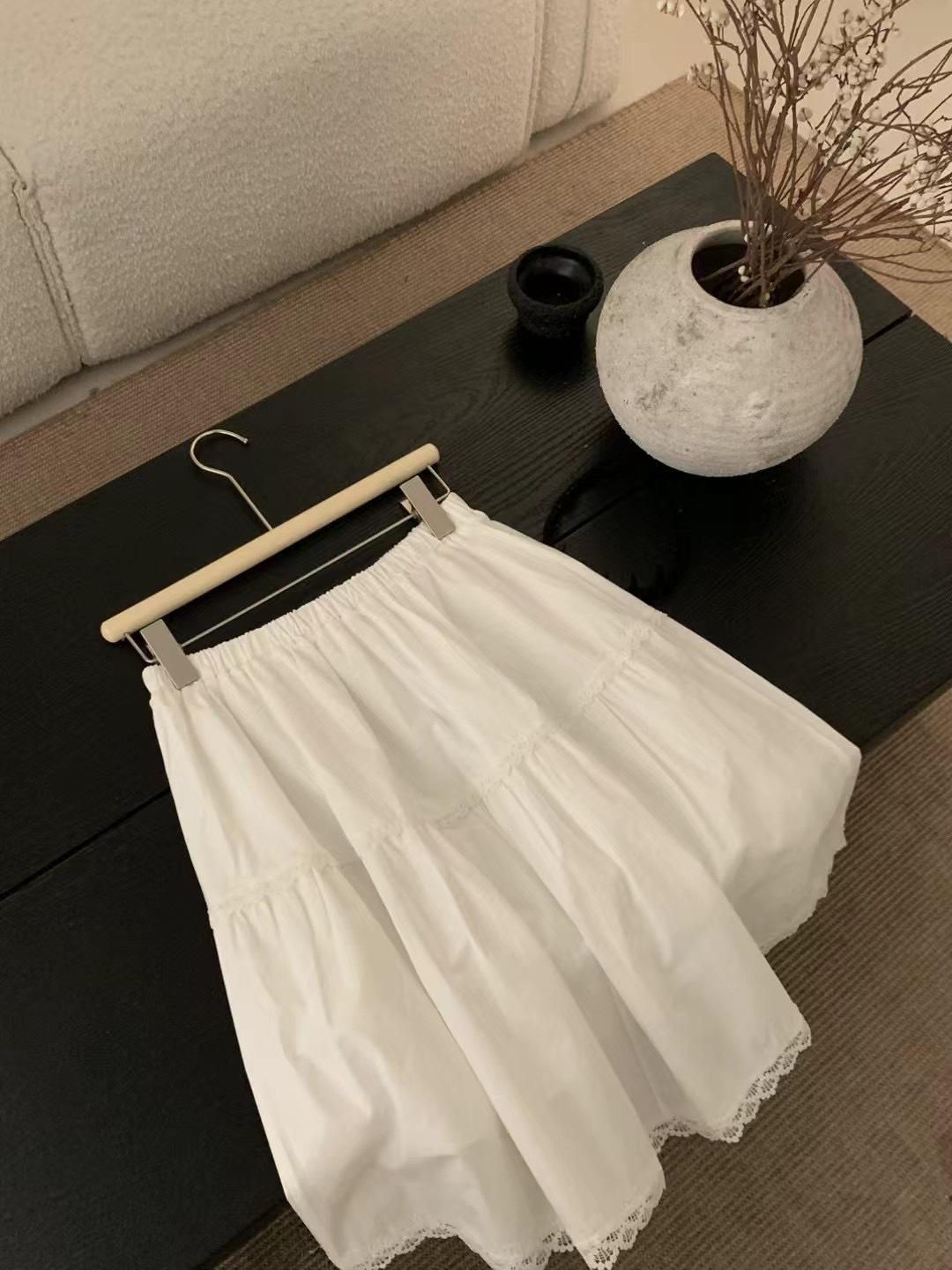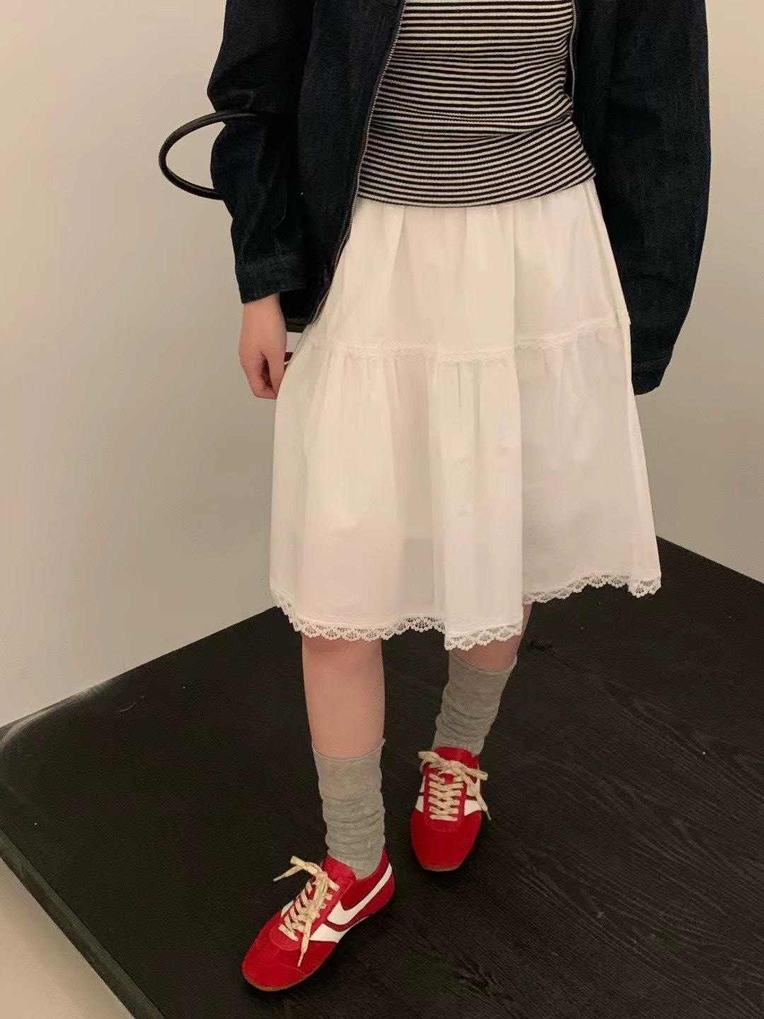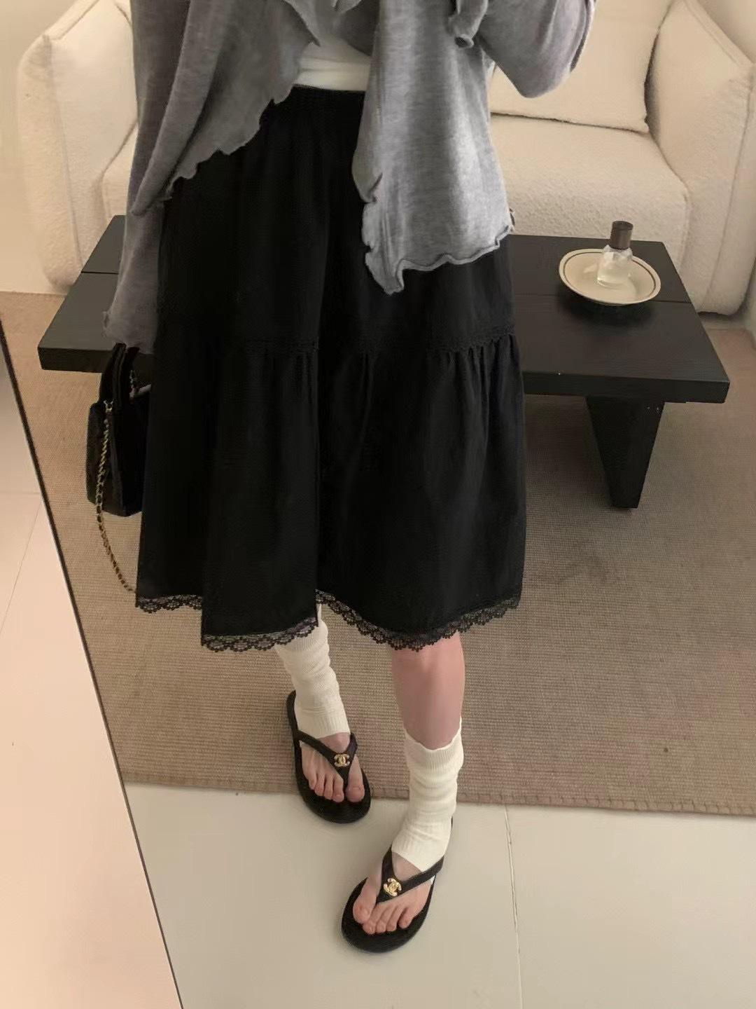 Falda delgada estilo coreano simple con encaje para mujer 2025 verano nuevo cintura alta look adelgazante falda línea A de largo medio