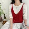 2025 Nuevo Chaleco de Color en Contraste Chaleco de Suéter Tejido Top Cuello en V Apilado Tejido Pequeño Fragancia