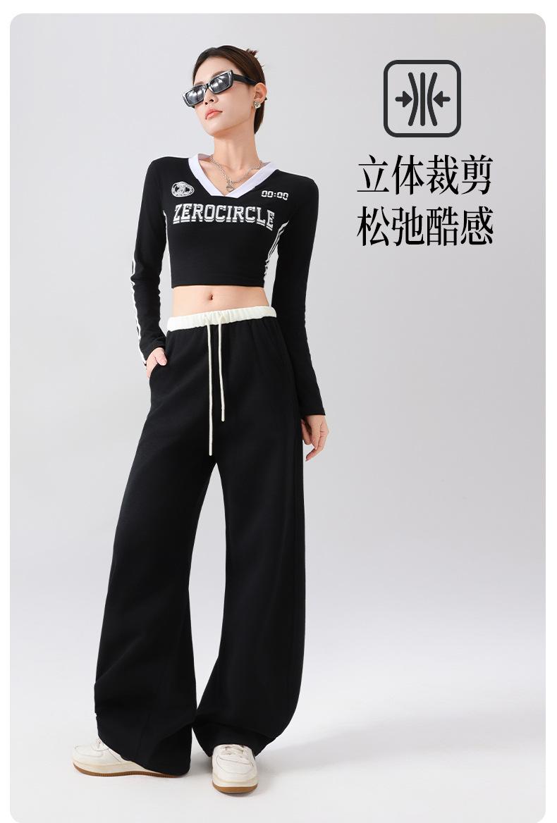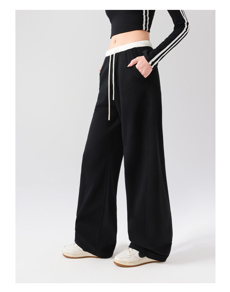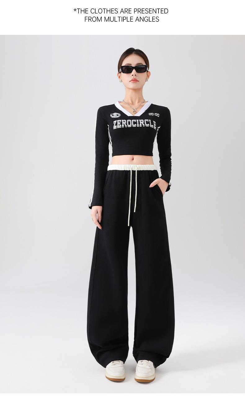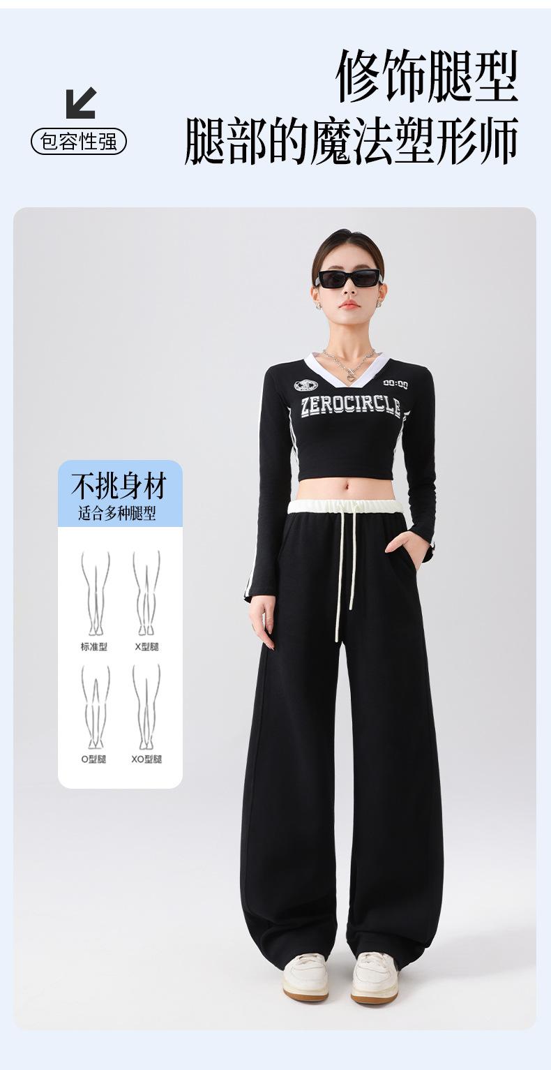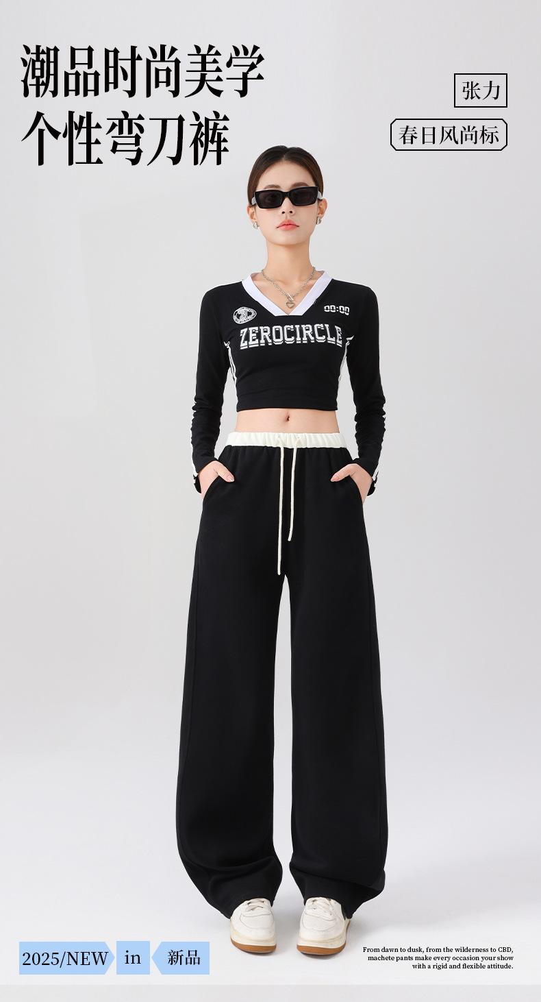 Pantalones Deportivos Americanos para Mujer Primavera y Verano 2025 Nuevo Negro Recto Holgado Casual Pantalones de Chándal Cintura Alta Dosis Pantalones de Pierna Ancha