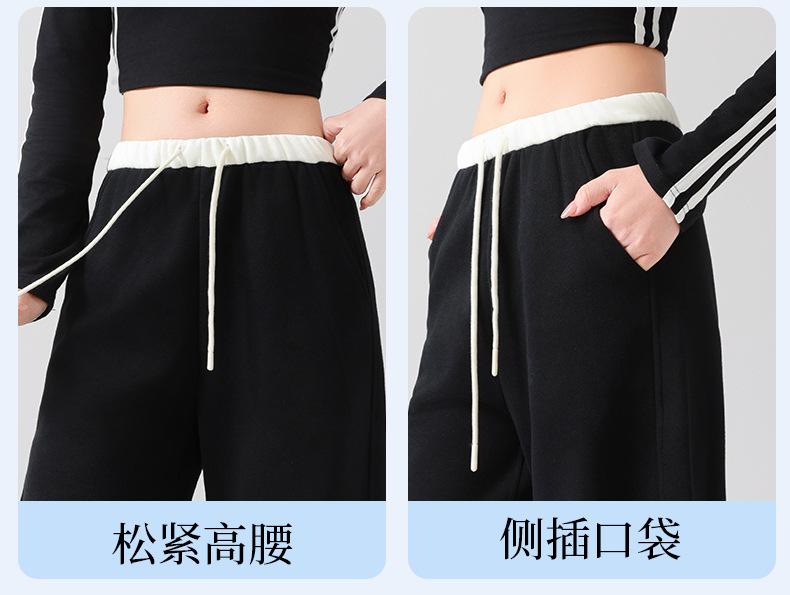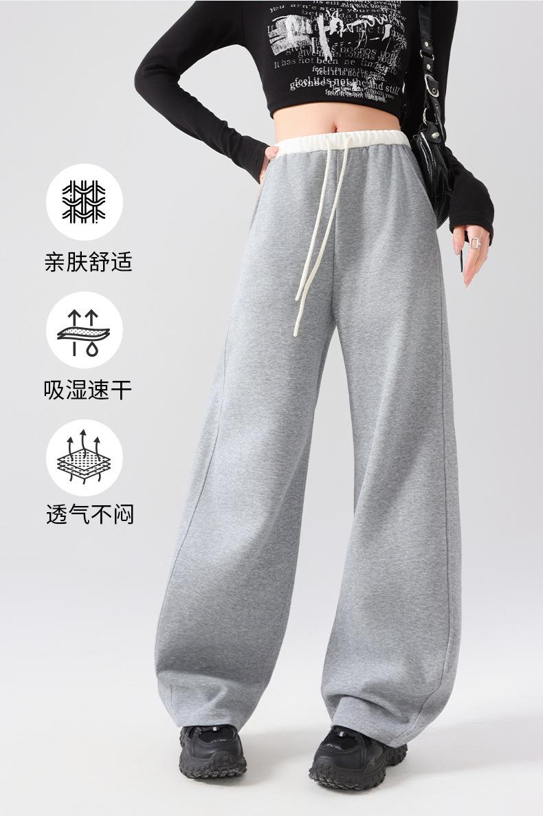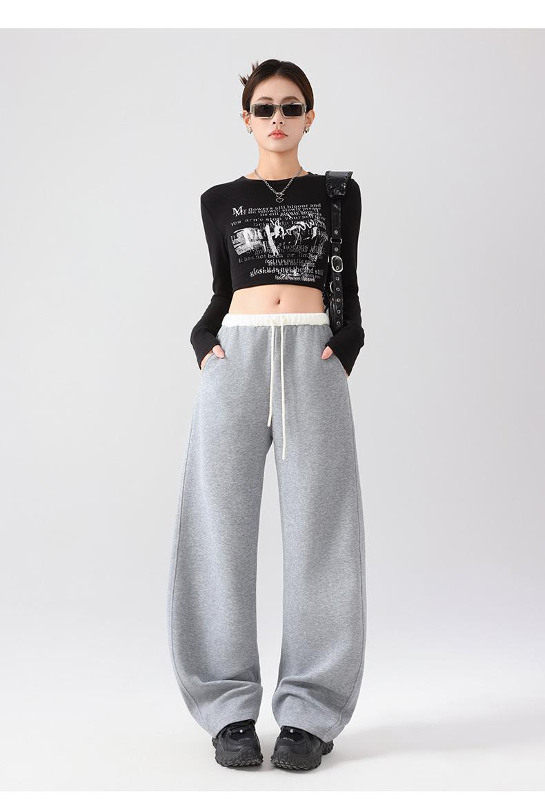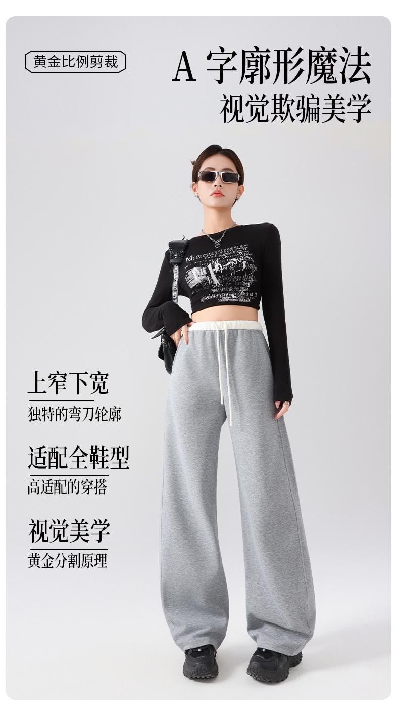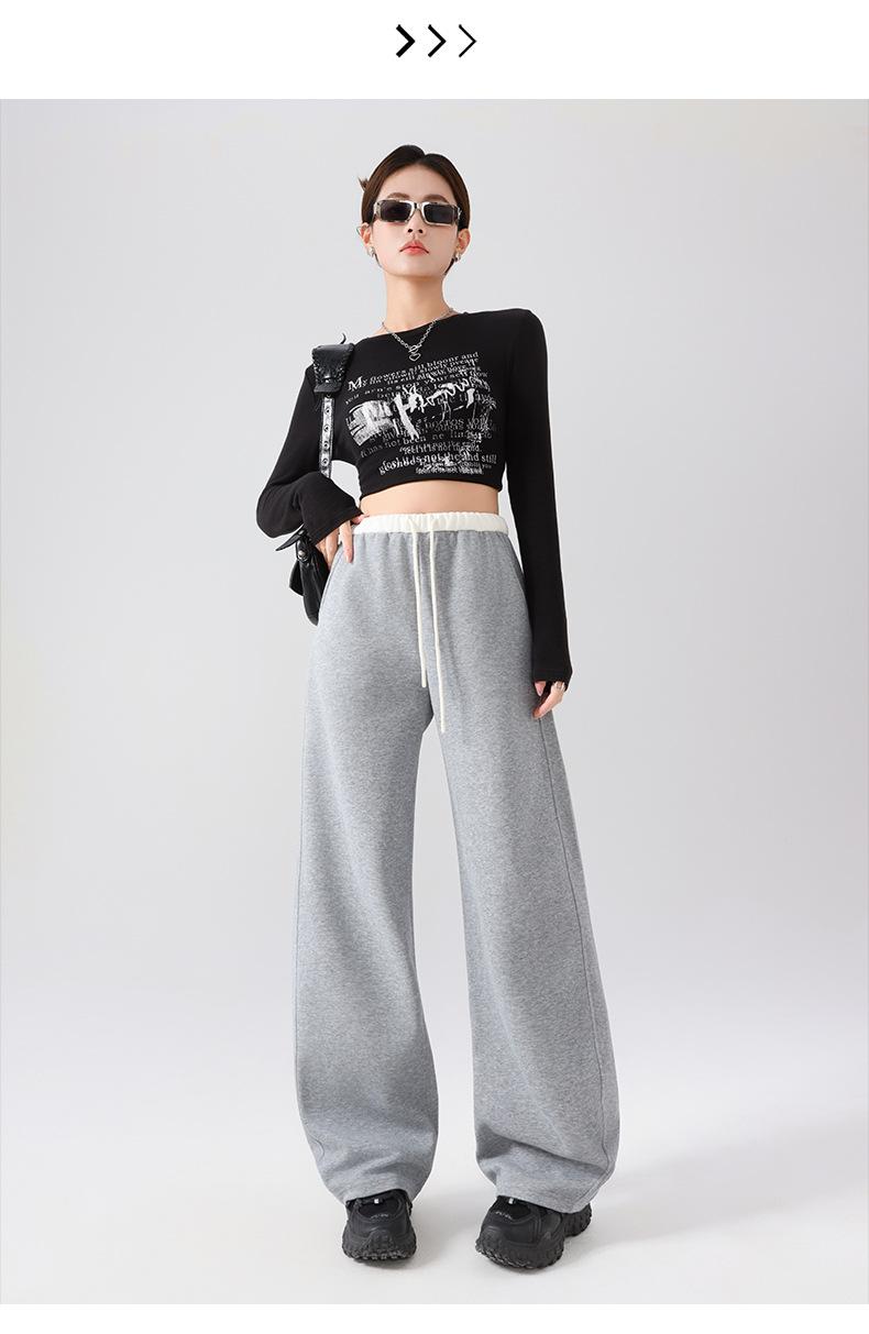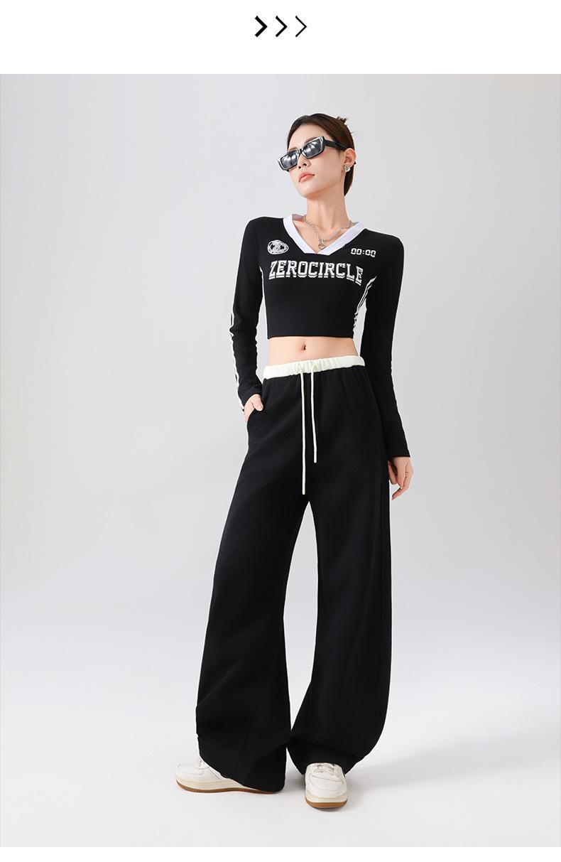 Pantalones Deportivos Americanos para Mujer Primavera y Verano 2025 Nuevo Negro Recto Holgado Casual Pantalones de Chándal Cintura Alta Dosis Pantalones de Pierna Ancha