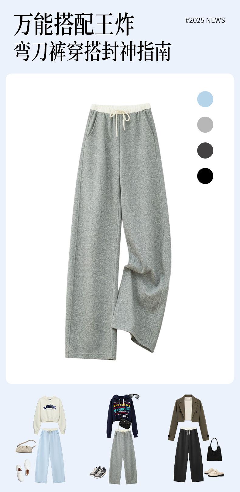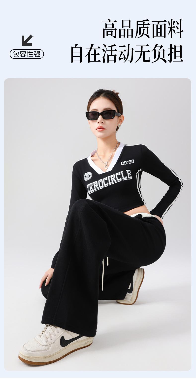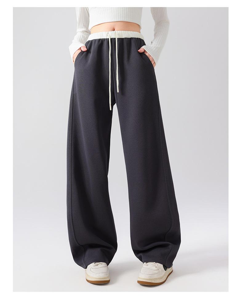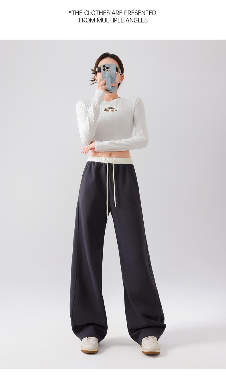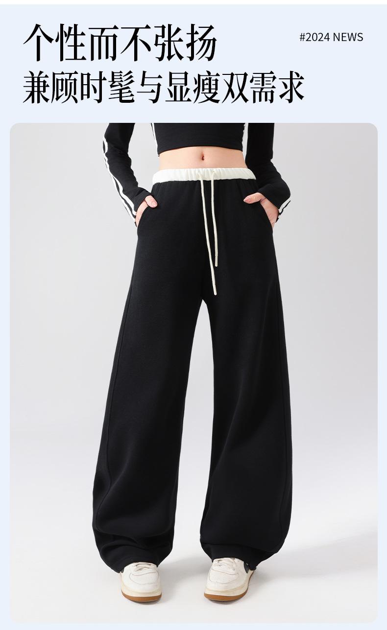 Pantalones Deportivos Americanos para Mujer Primavera y Verano 2025 Nuevo Negro Recto Holgado Casual Pantalones de Chándal Cintura Alta Dosis Pantalones de Pierna Ancha