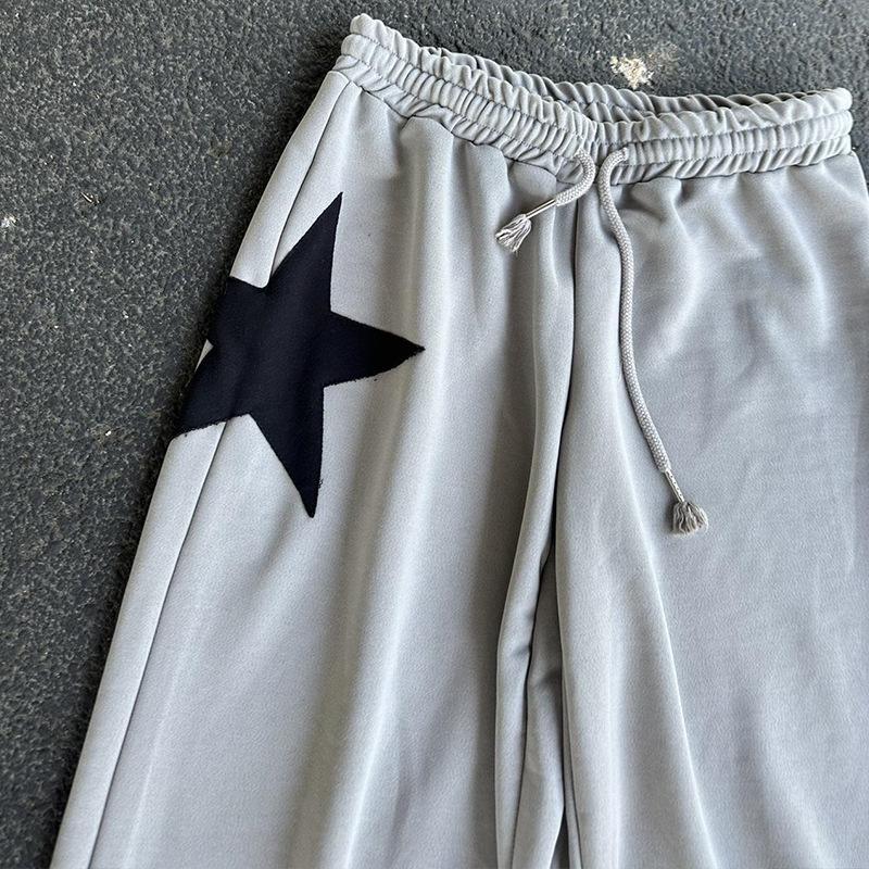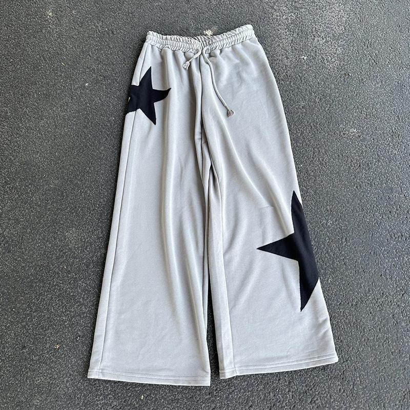 2025 Ropa Europea y Americana Transfronteriza Estilo High Street Pantalones Casuales Deportivos Americanos Parche Estrella de Cinco Puntas Pantalones Holgados