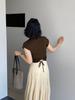 OEM Personalizado Cordón Cintura Ajustada Diseño de Punto Cuello Medio Alto Ajustado Manga de Hombro Delgado Top Verano 8879