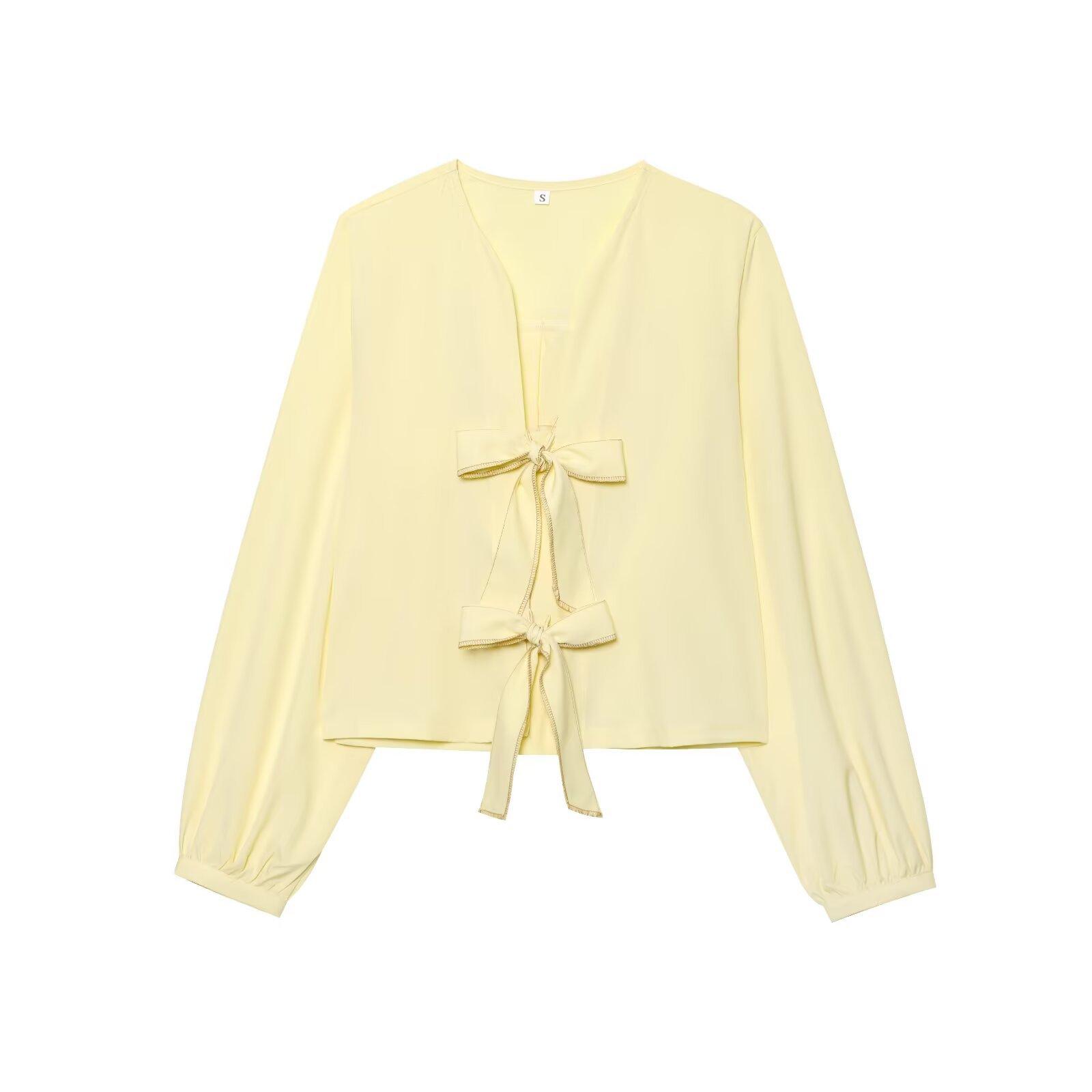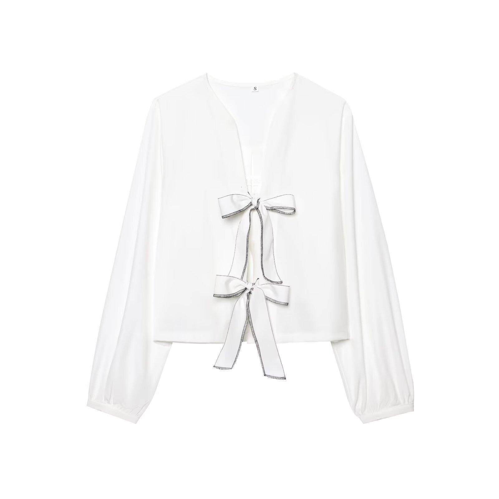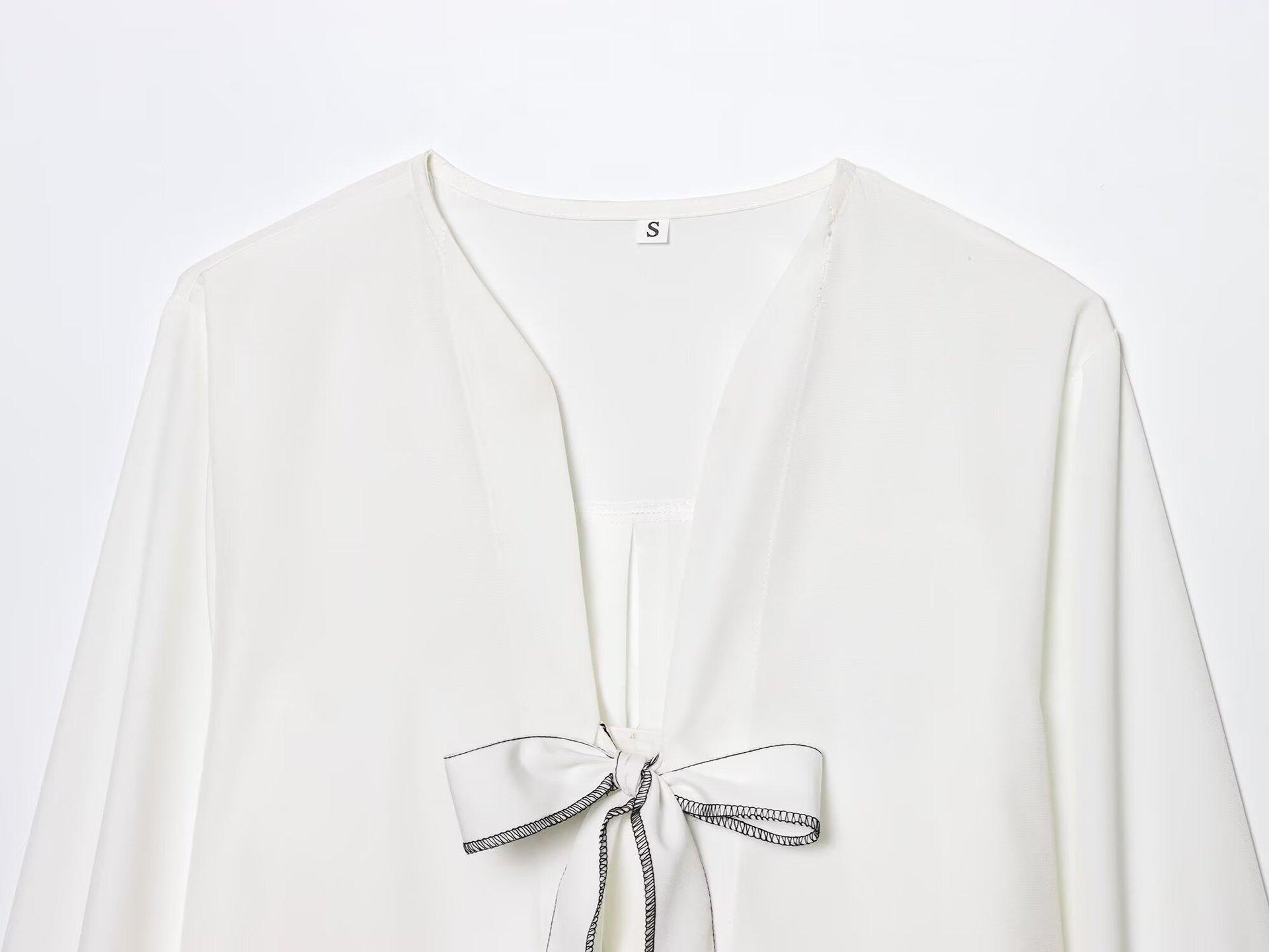 Exportación Transfronteriza Ropa de Mujer 2025 Verano Estilo Europeo y Americano Camisa de Manga Larga con Cuello en V a Rayas y Lazo para Mujer L52343
