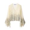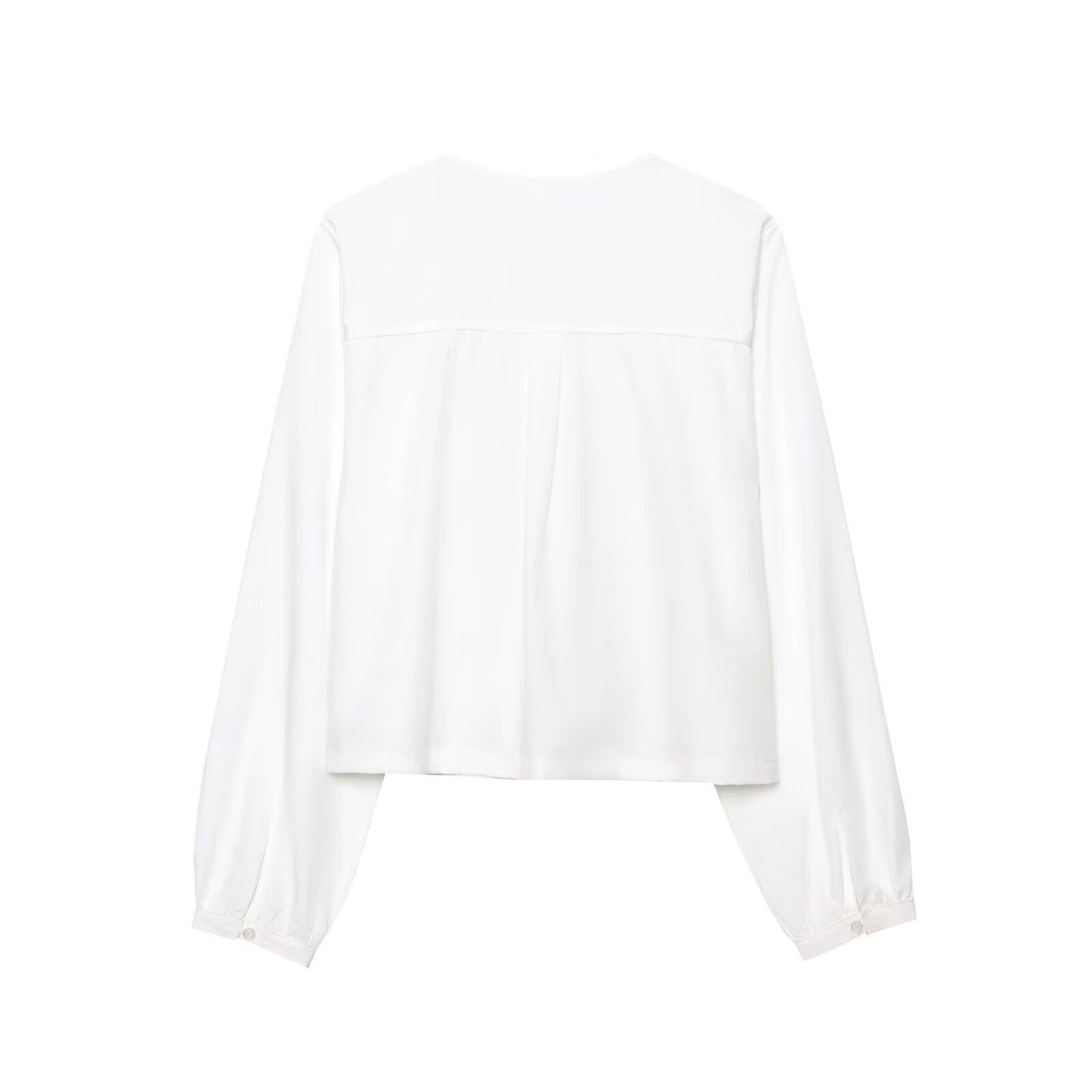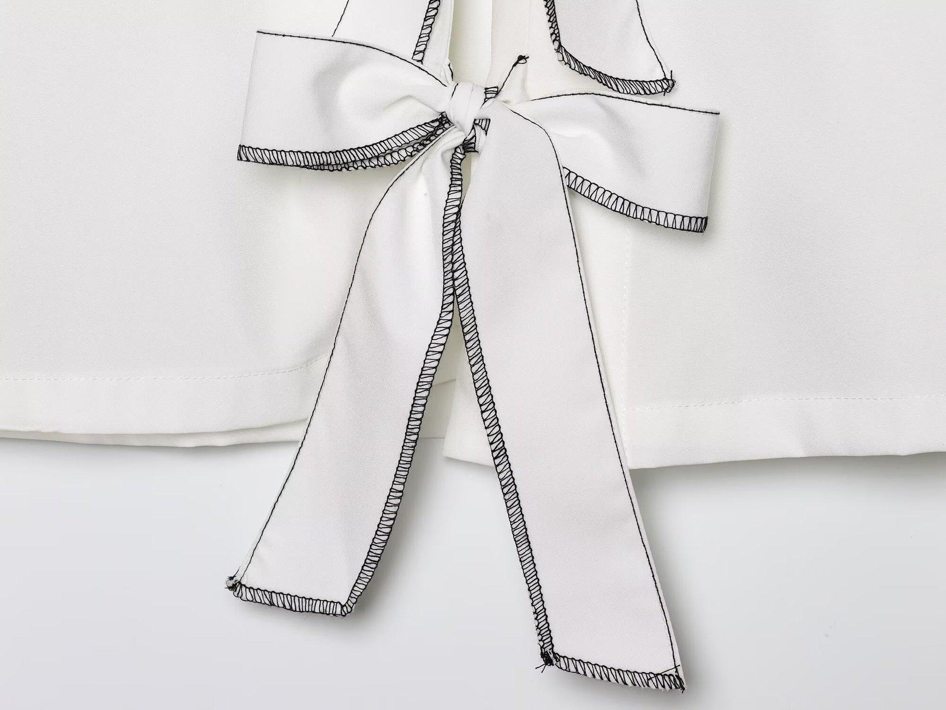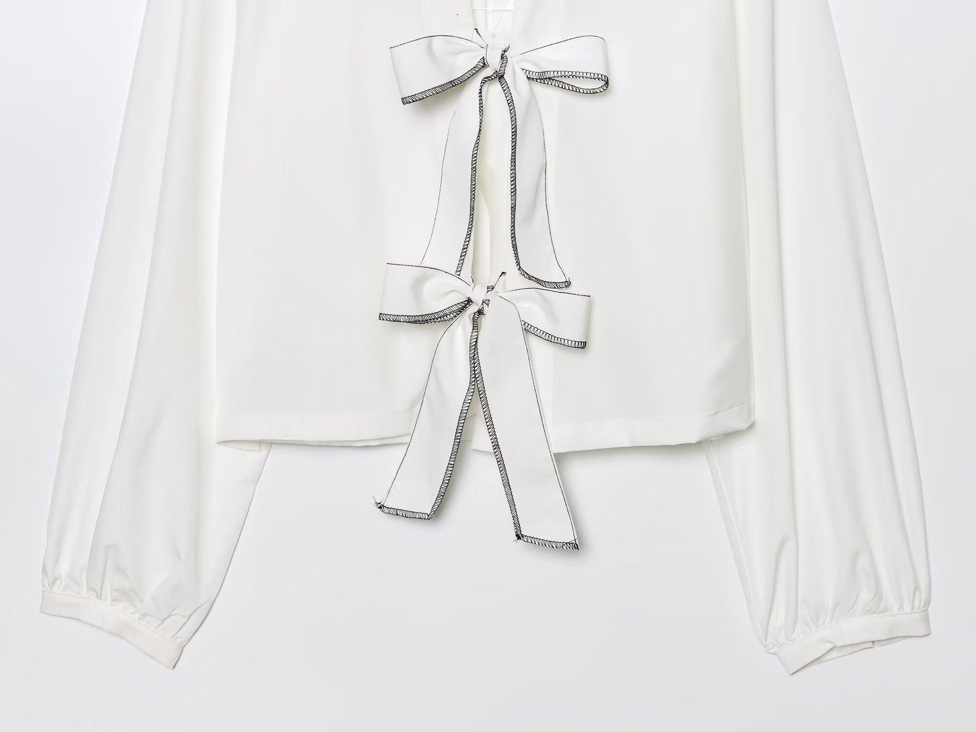 Exportación Transfronteriza Ropa de Mujer 2025 Verano Estilo Europeo y Americano Camisa de Manga Larga con Cuello en V a Rayas y Lazo para Mujer L52343
