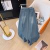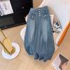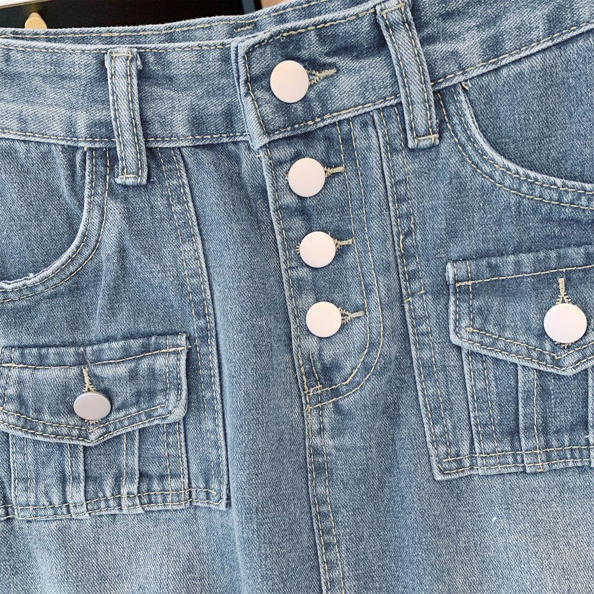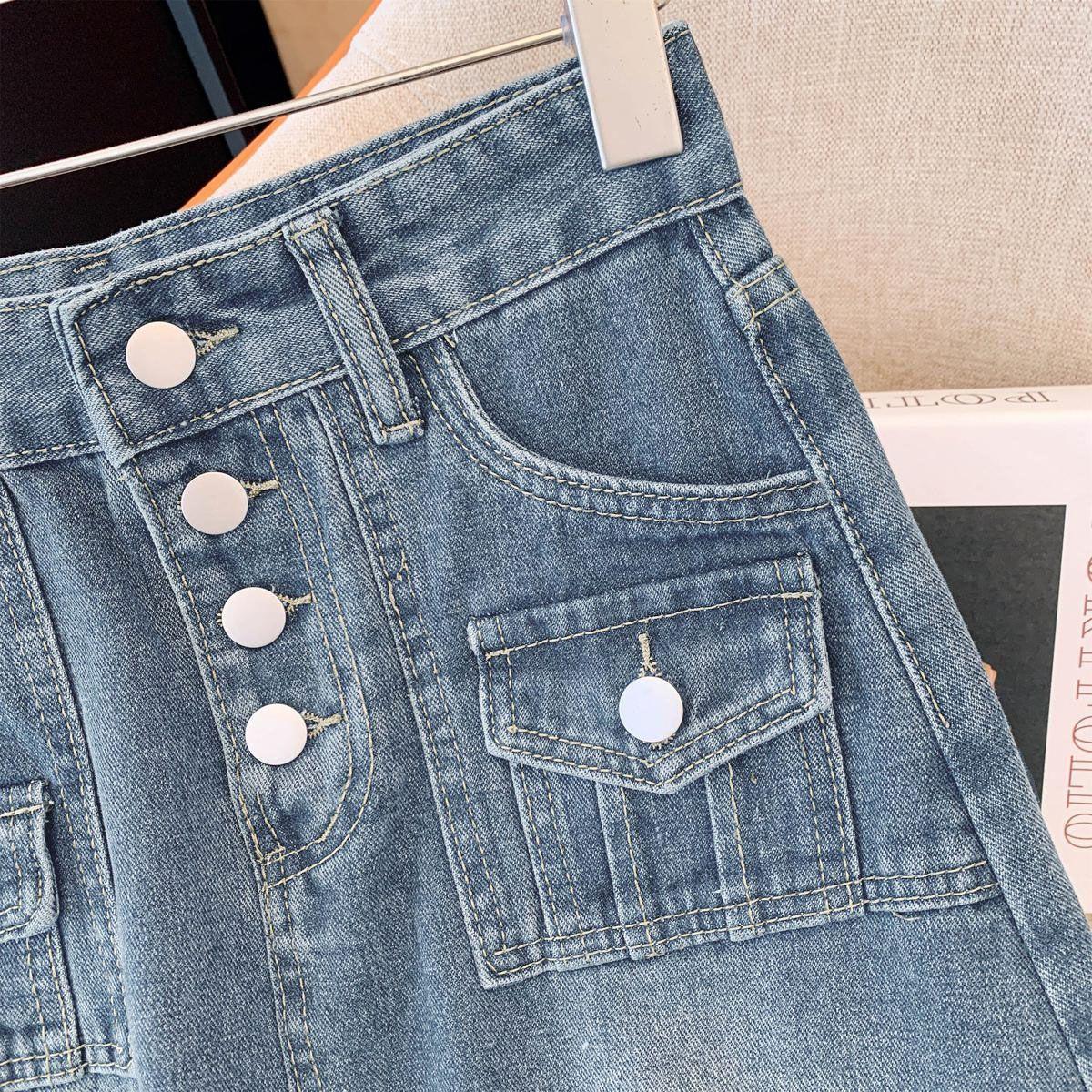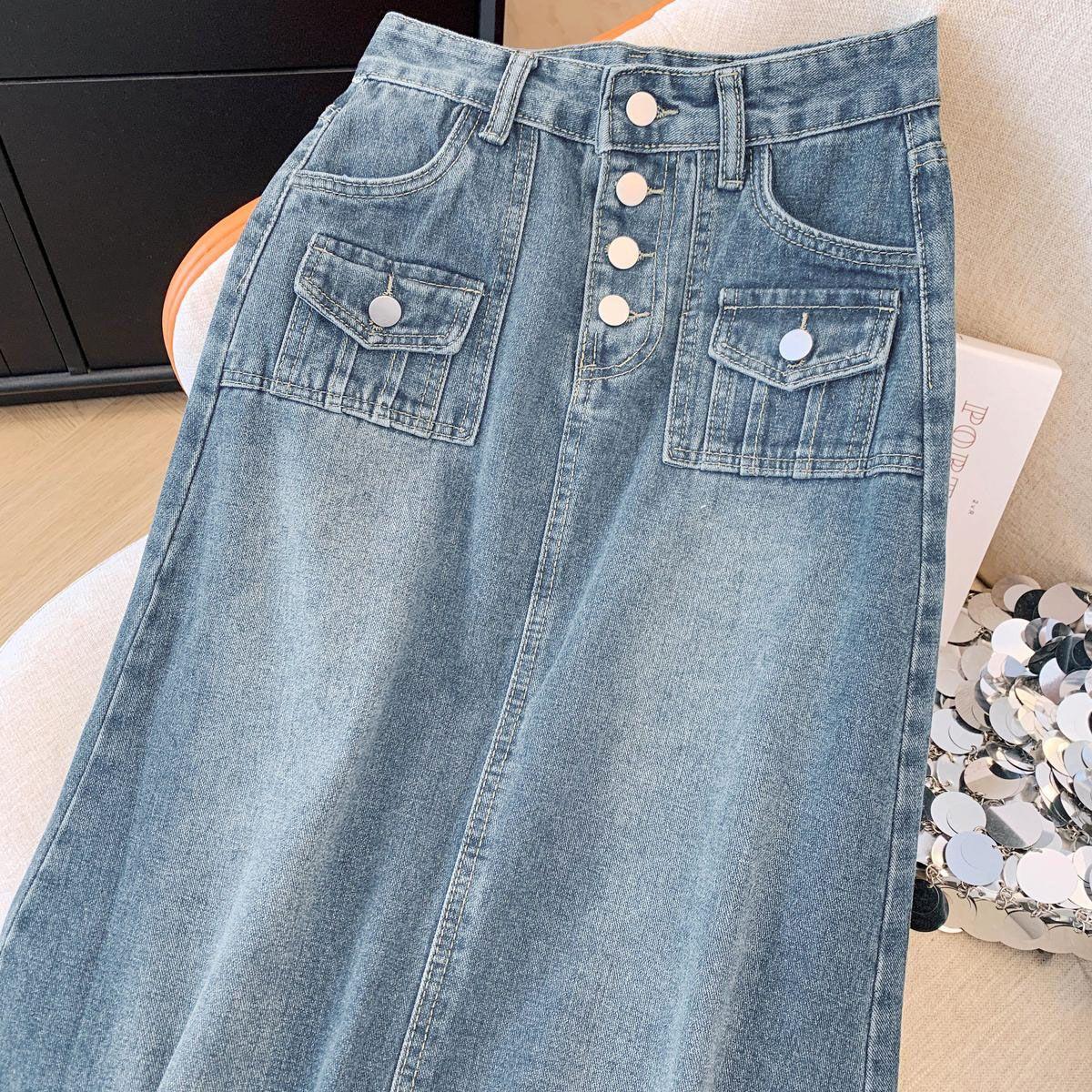 Falda de mezclilla de alta gama con flecos y borde crudo para mujer 2025 Estilo coreano Ropa exterior para mujer Look adelgazante Falda midi de talle alto