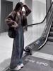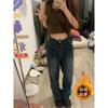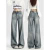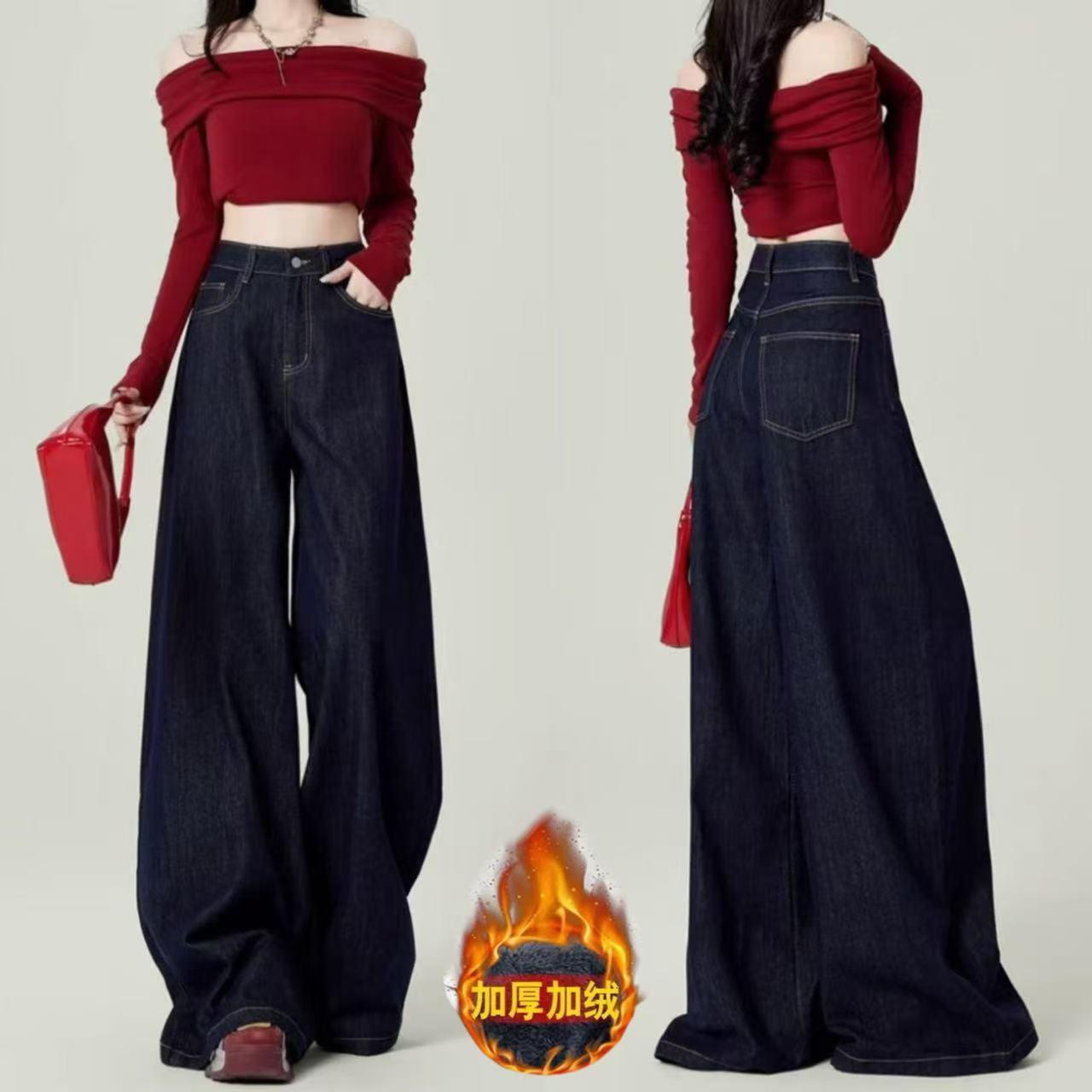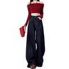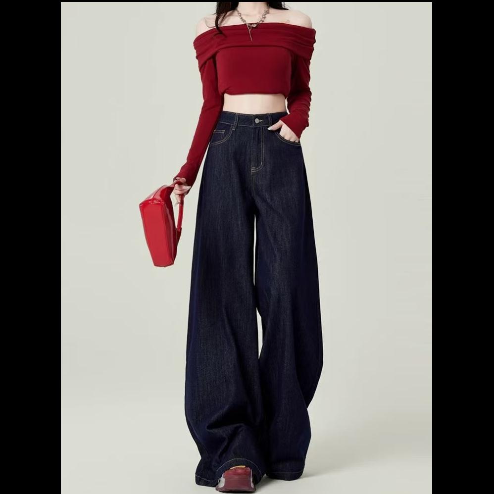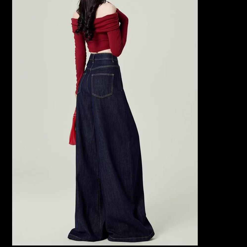 Jeans Americanos Retro Azul Oscuro Pierna Ancha Nuevo Primavera y Verano Cintura Alta Sueltos Adelgazantes Drapeados Pantalones Hot Girl Largo al Piso